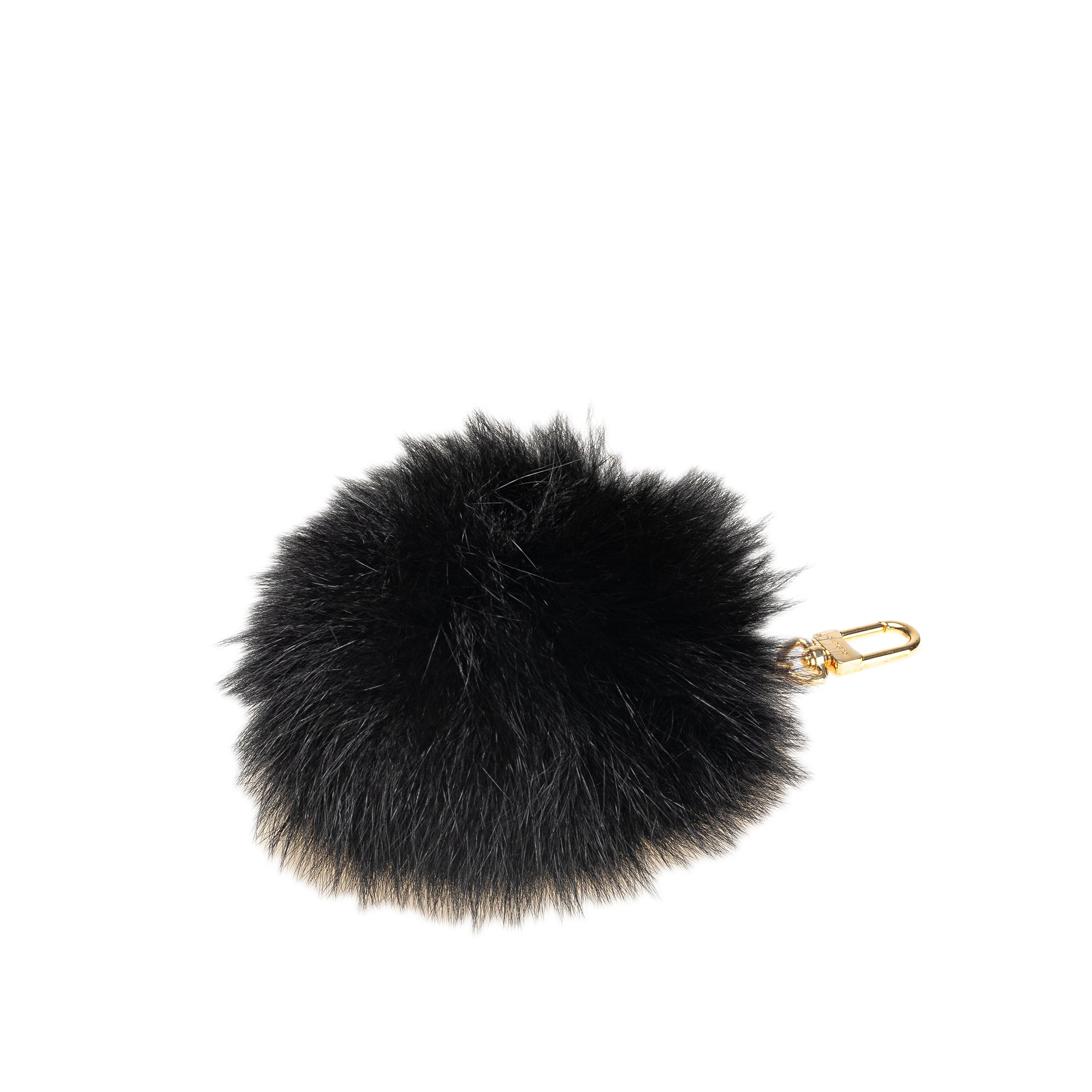 Black Louis Vuitton Fox Fur Fuzzy Bubble Bag Charm Key Chain