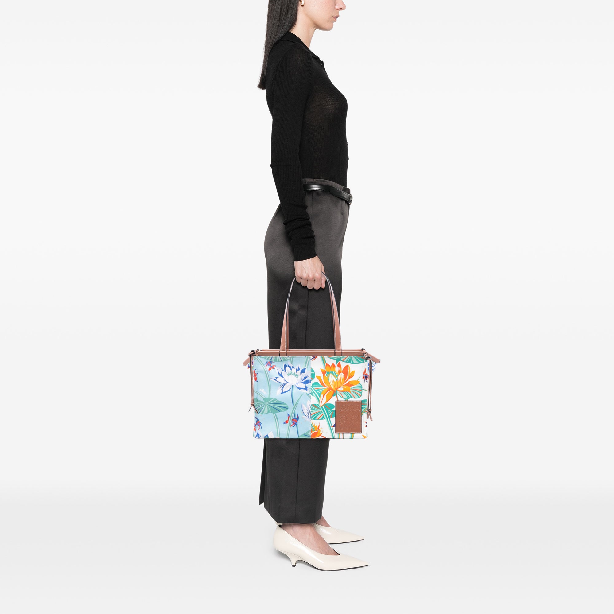 Green LOEWE Paulas Ibiza Small Canvas Waterlily Print Cushion Tote
