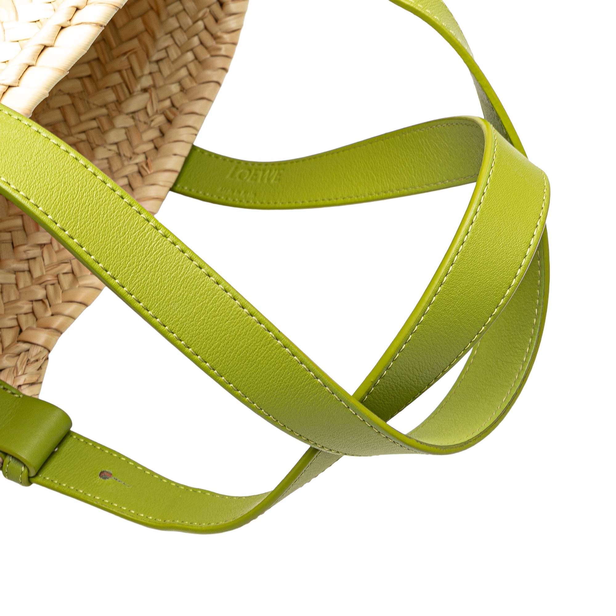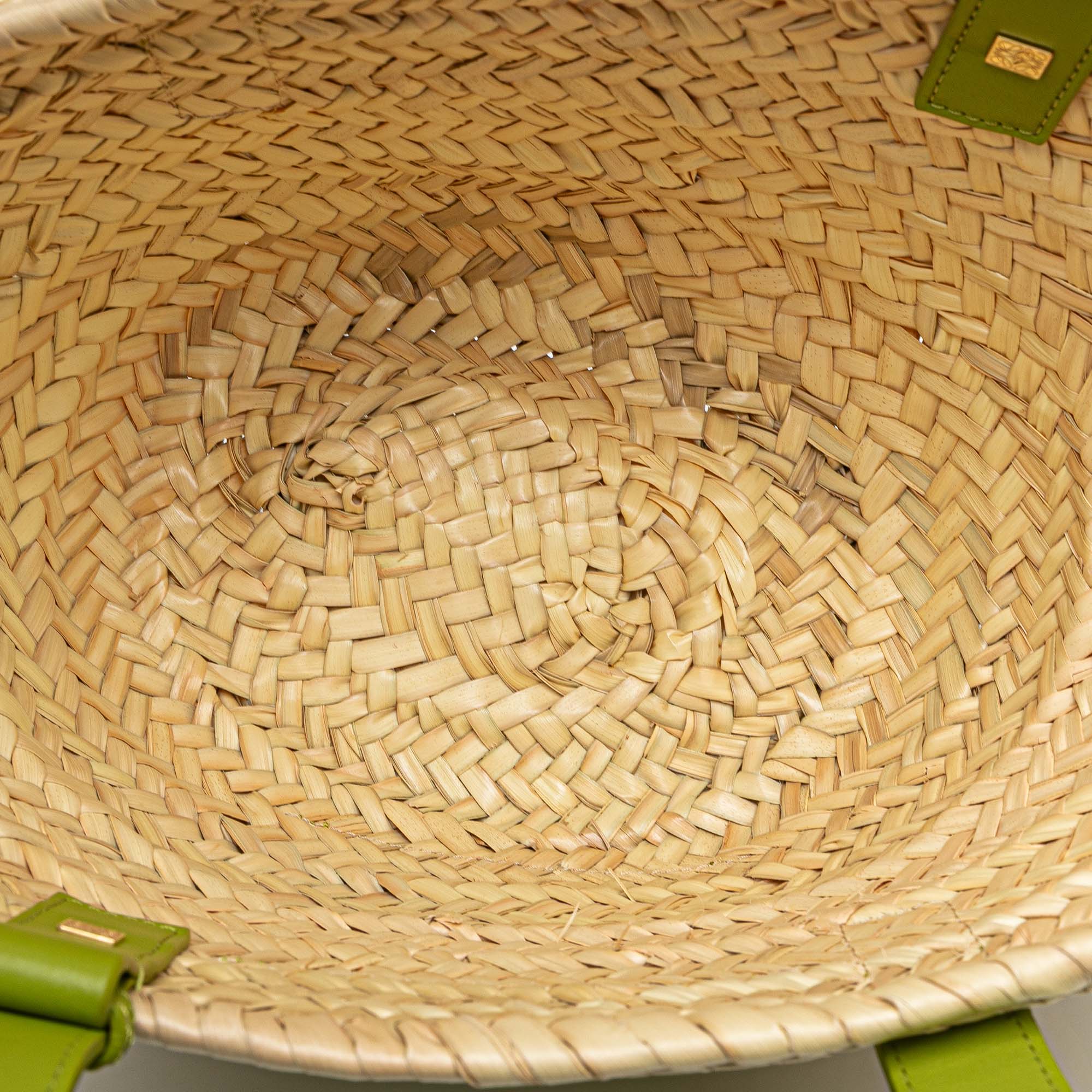 Green LOEWE Small Raffia Basket Tote - Designer Revival Green LOEWE Small Raffia Basket Tote - Designer Revival