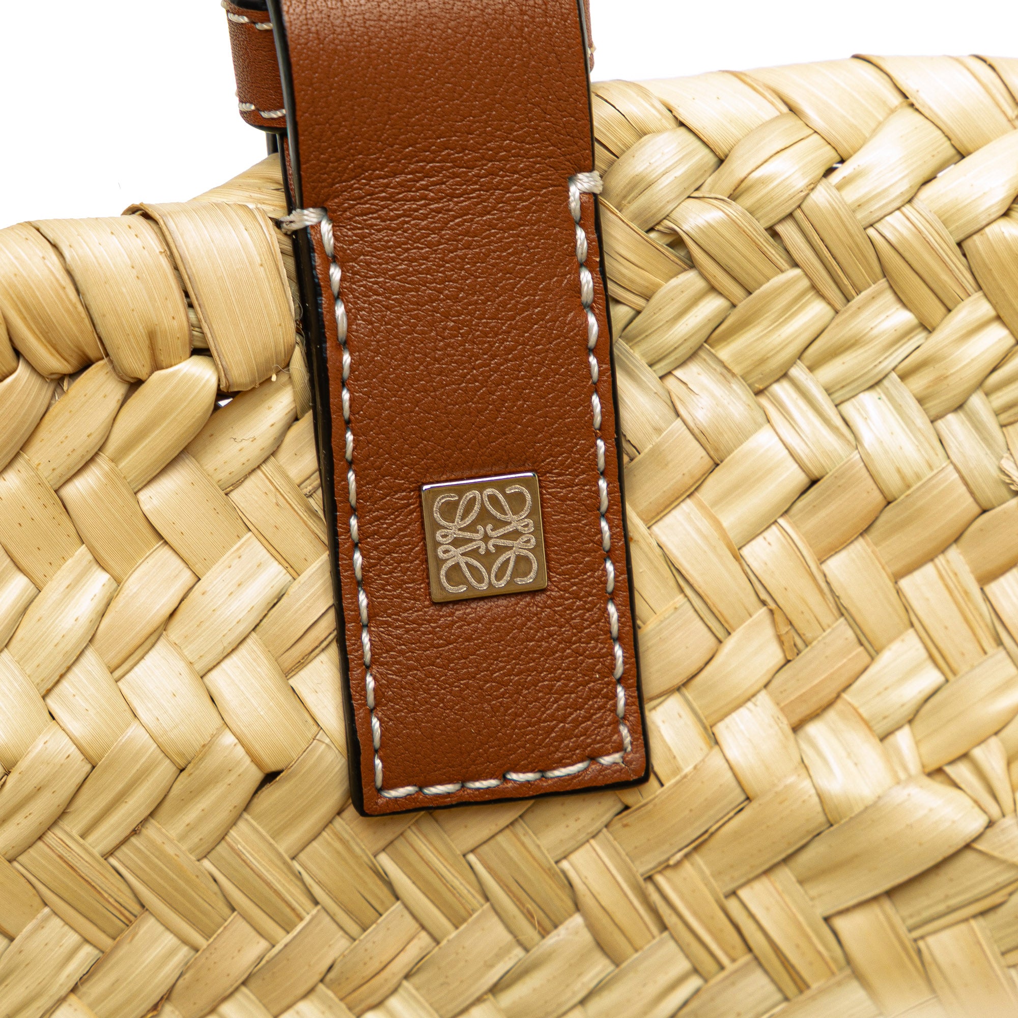 Tan LOEWE Small Raffia Basket Tote - Designer Revival Tan LOEWE Small Raffia Basket Tote - Designer Revival