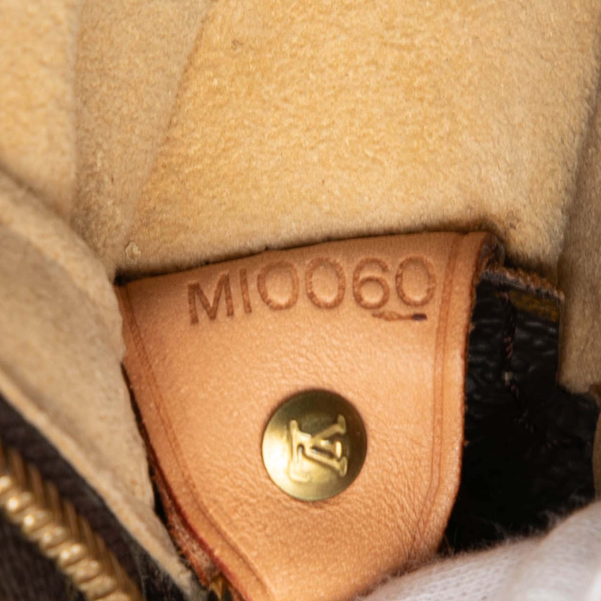 Product Details: Brown Louis Vuitton Monogram Looping GM Shoulder Bag. The Looping GM features a monogram canvas body, a rolled vachetta leather shoulder strap, a top zip closure, and interior zip and slip pockets. 12.2" L x 11" W x 3.9" D. Serial number MI0060.