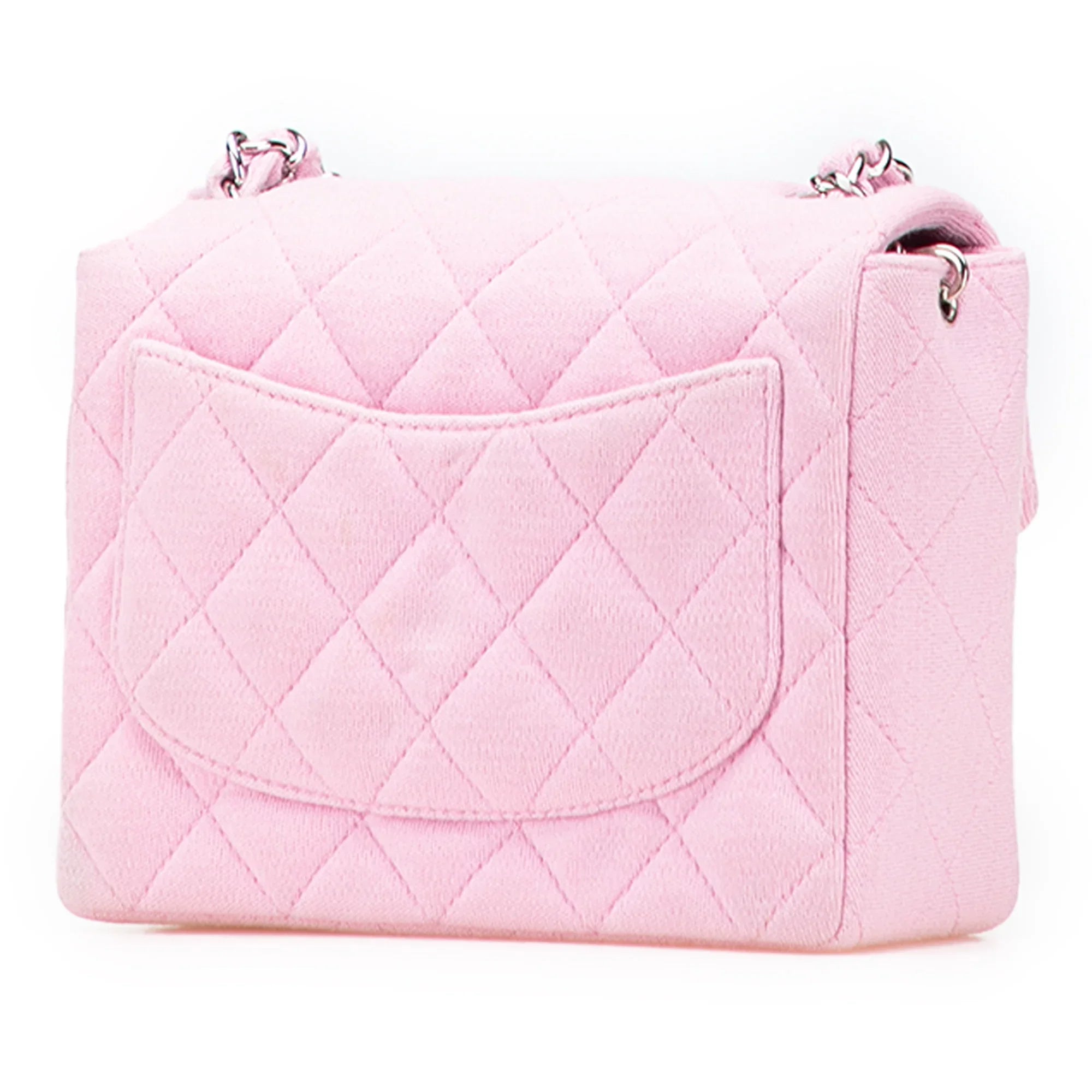 Pink Chanel Mini Square Classic Jersey Single Flap Crossbody Bag