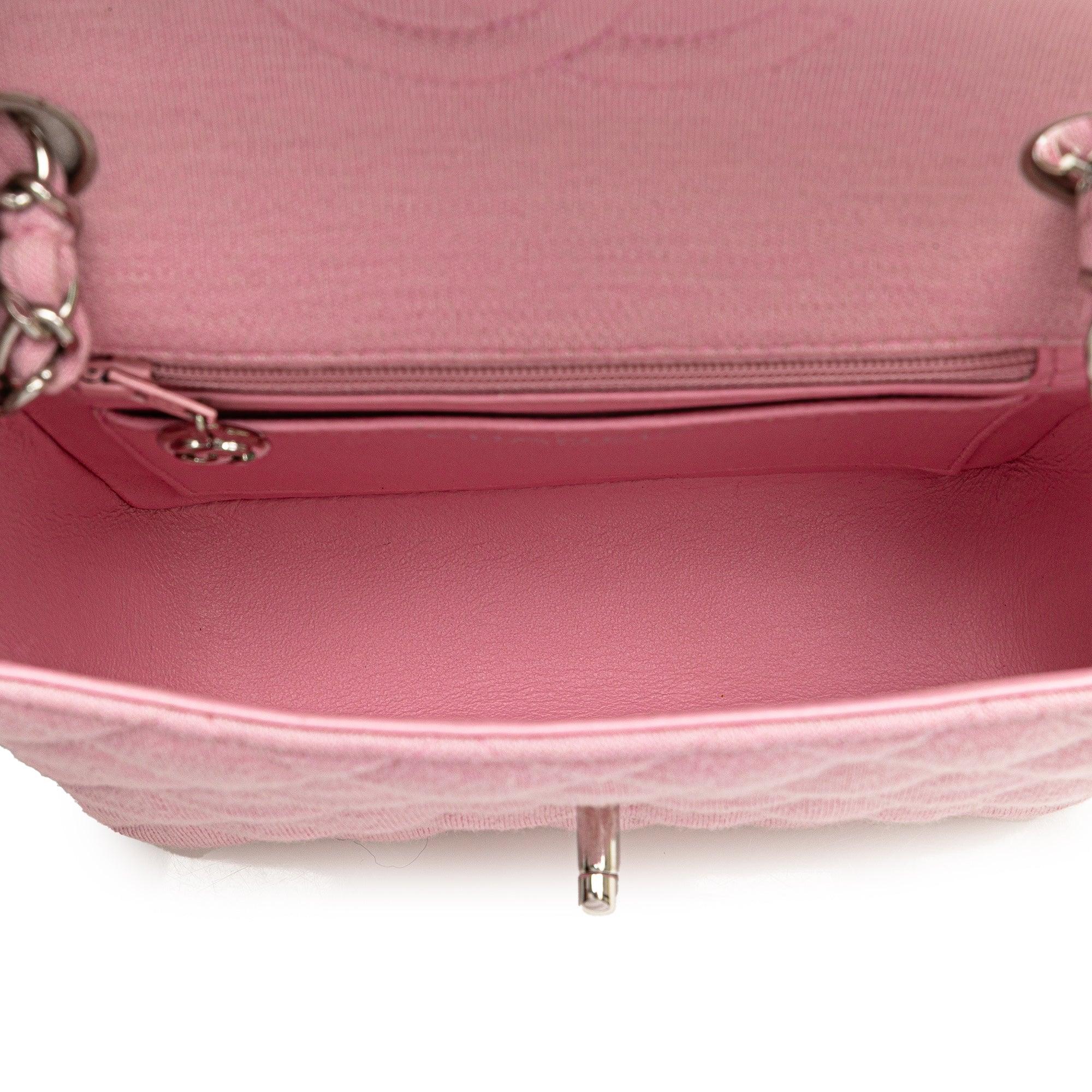 Pink Chanel Mini Square Classic Jersey Single Flap Crossbody Bag - Designer Revival Pink Chanel Mini Square Classic Jersey Single Flap Crossbody Bag - Designer Revival