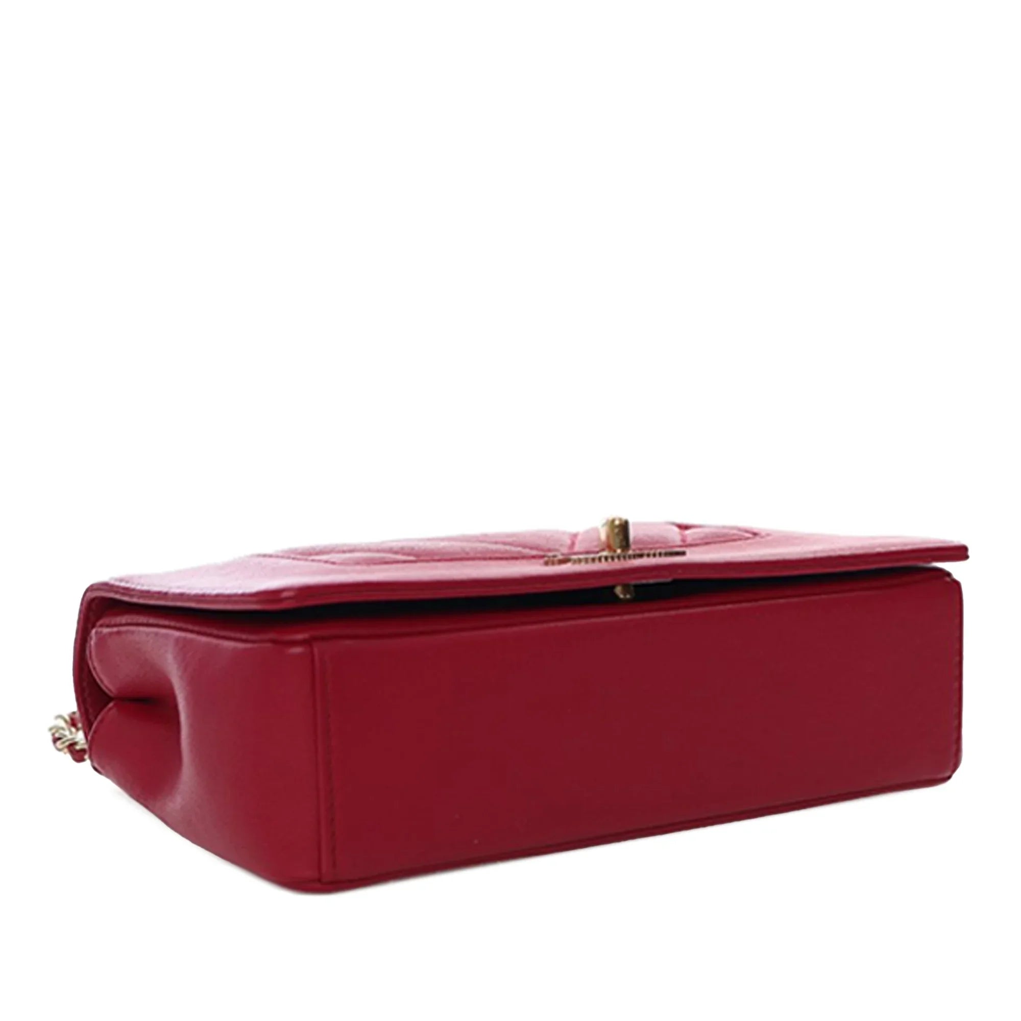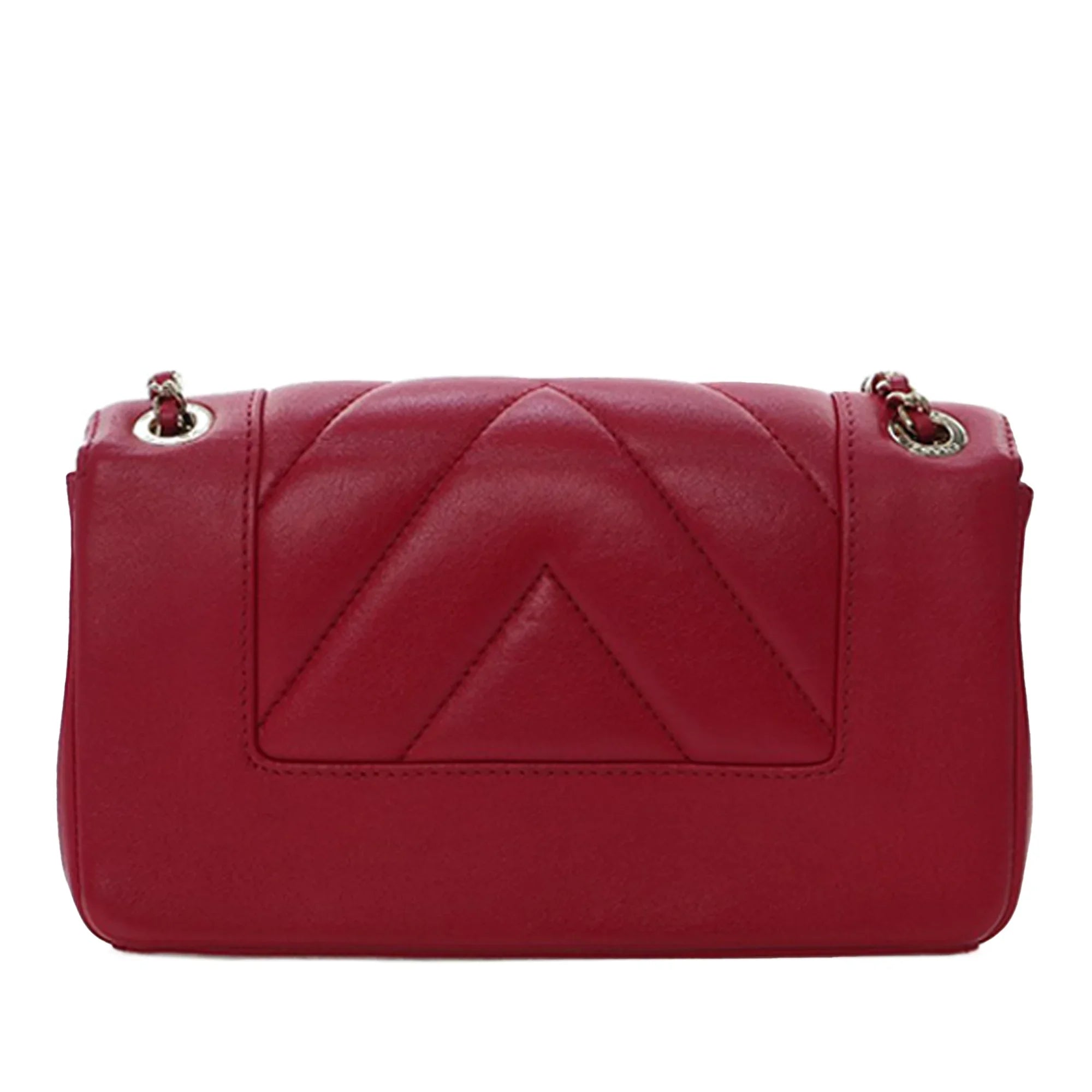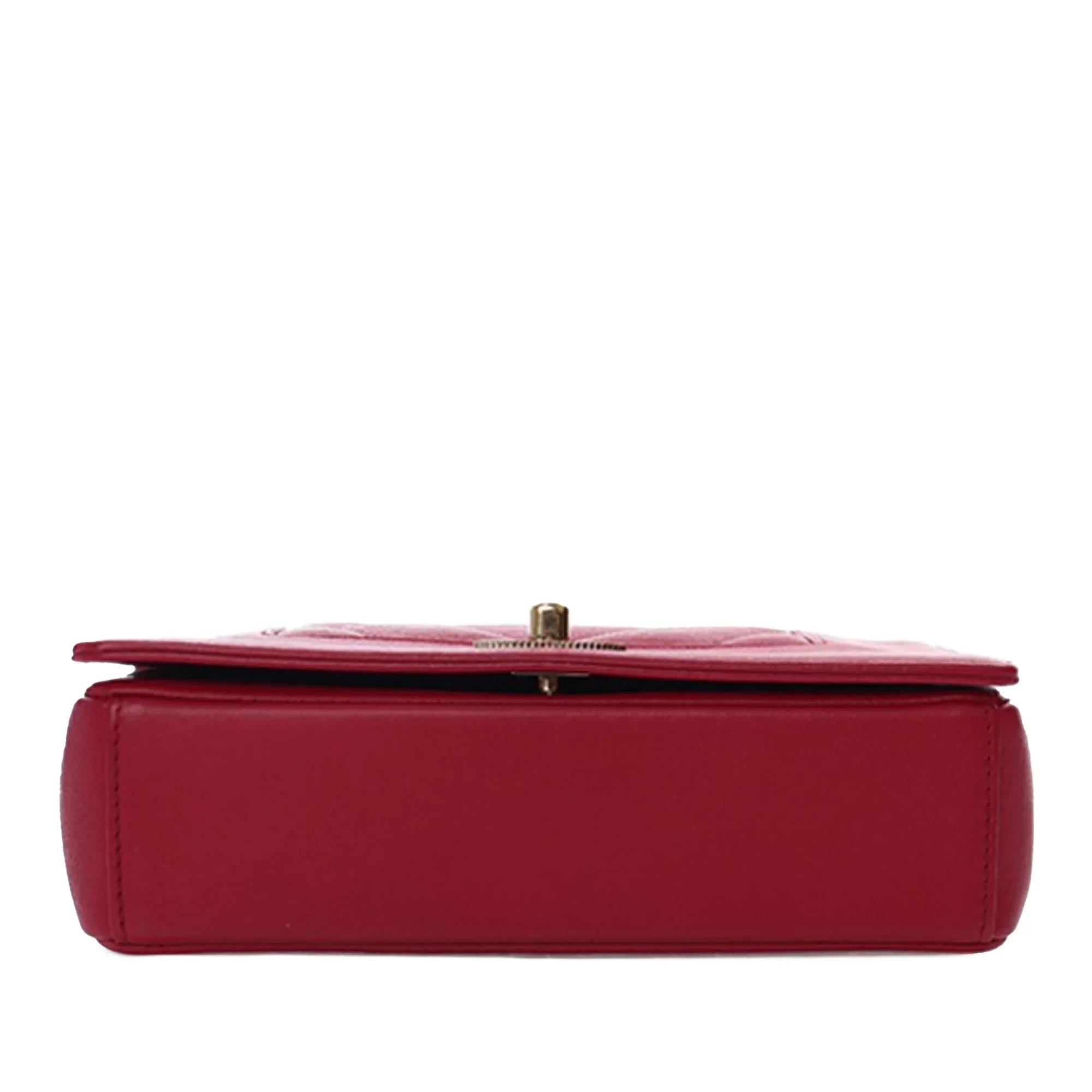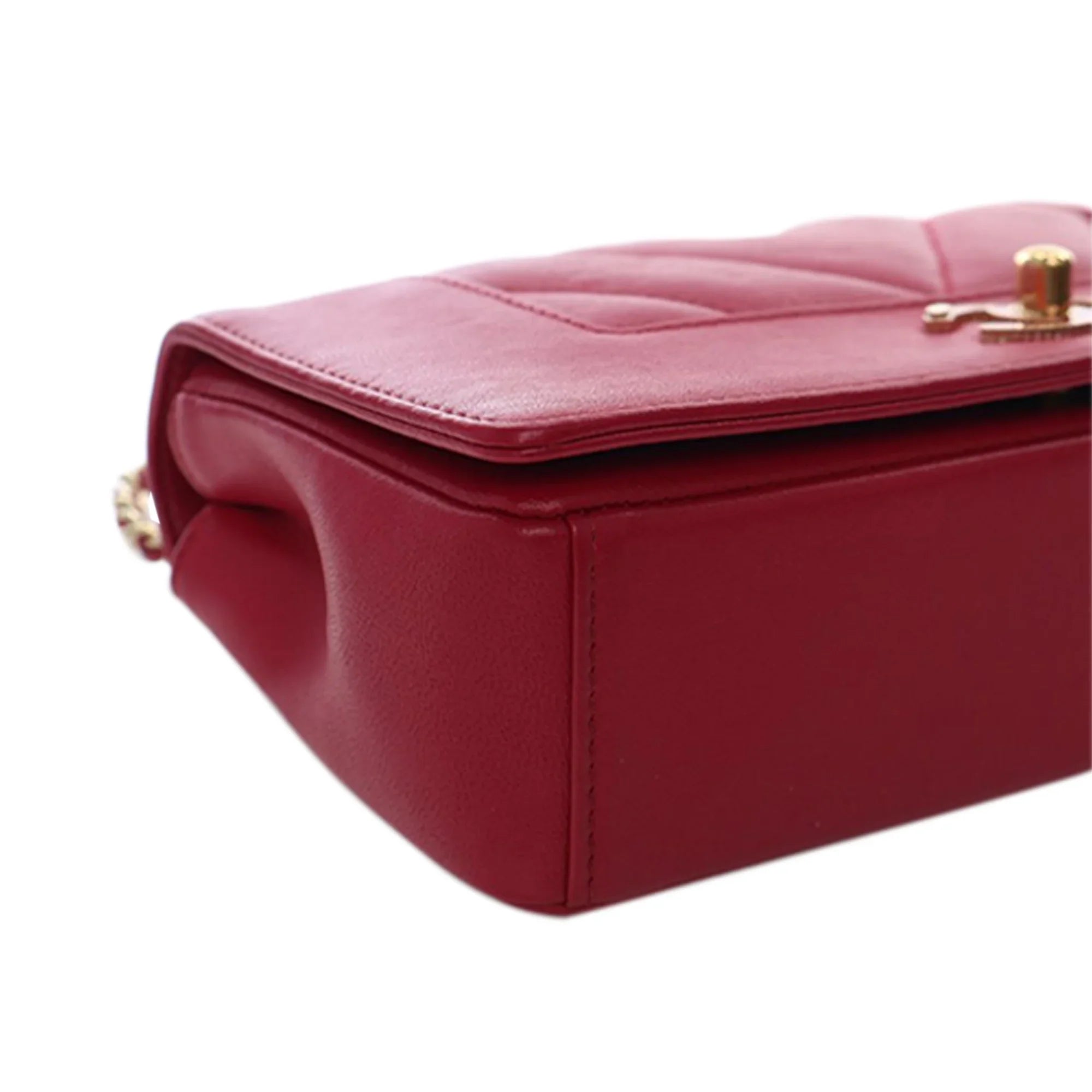 Red Chanel Mini Quilted Chevron Sheepskin Mademoiselle Vintage Flap Crossbody Bag