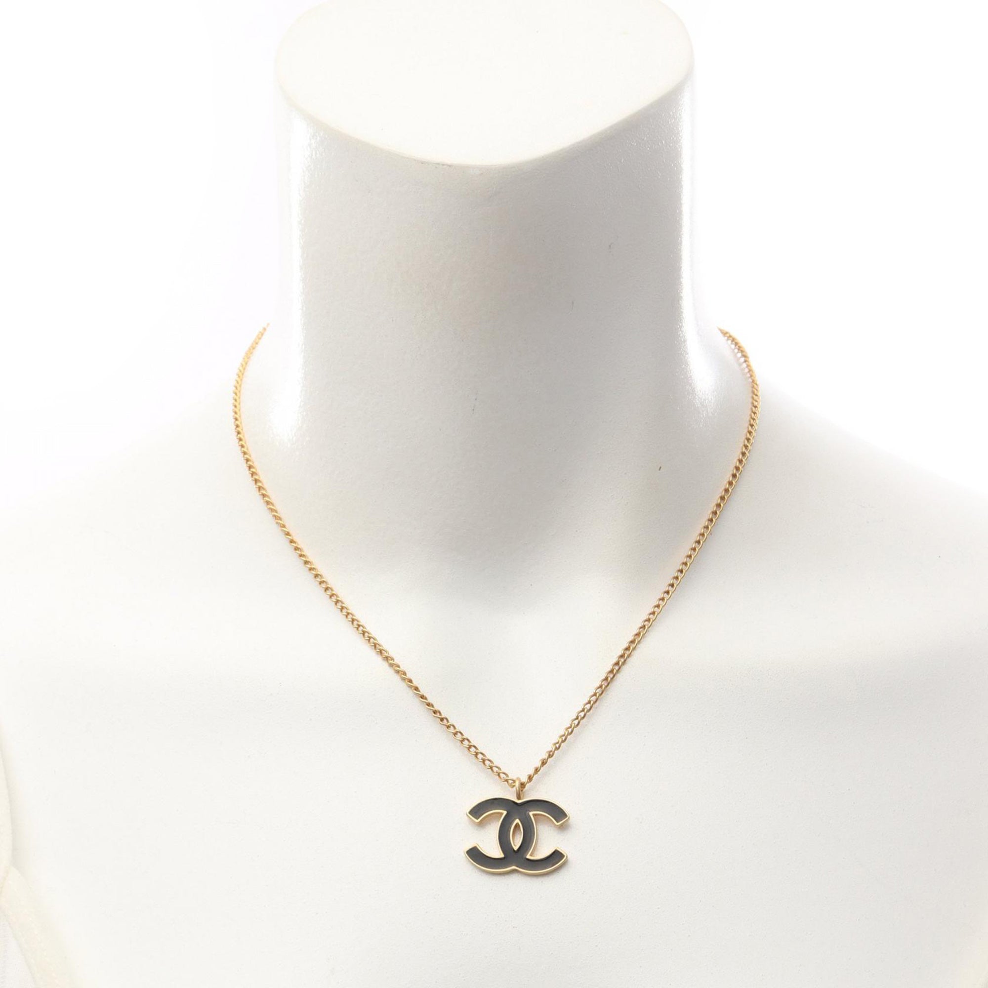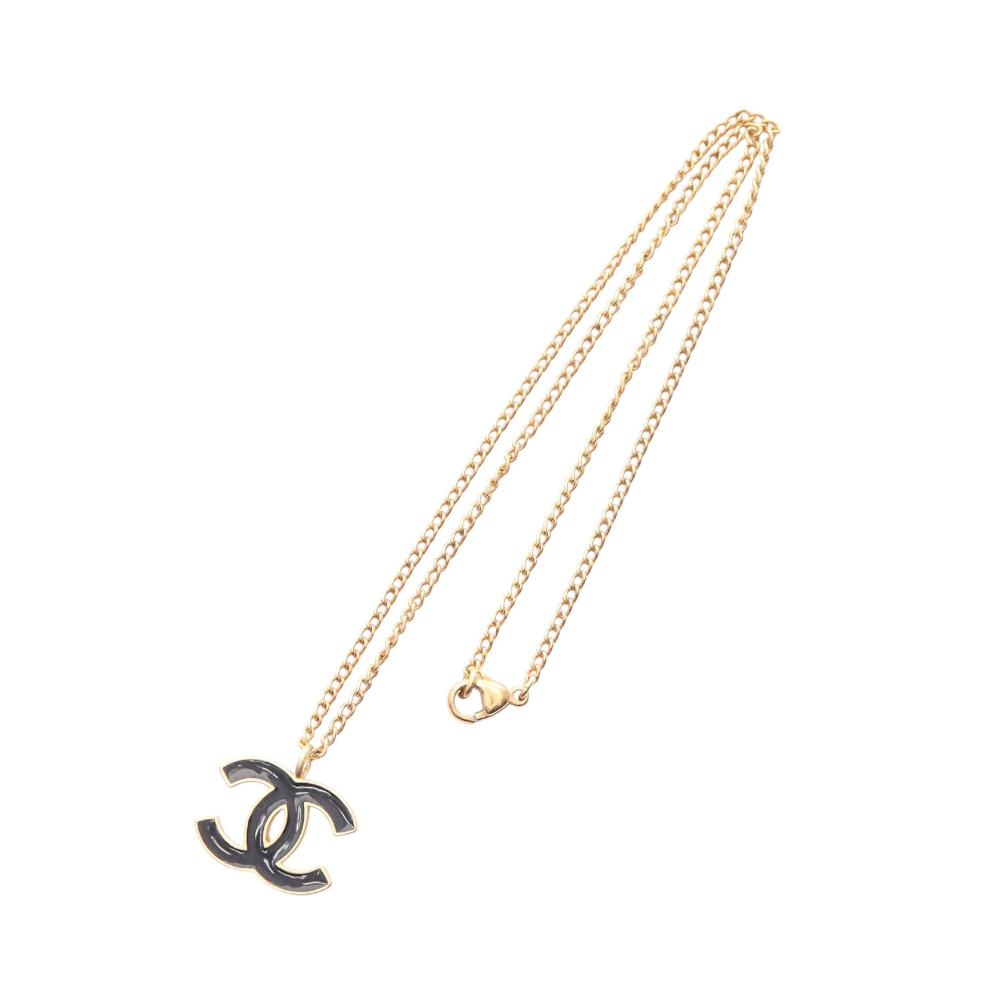 Black Chanel CC Enamel and Gold Plated Pendant Necklace