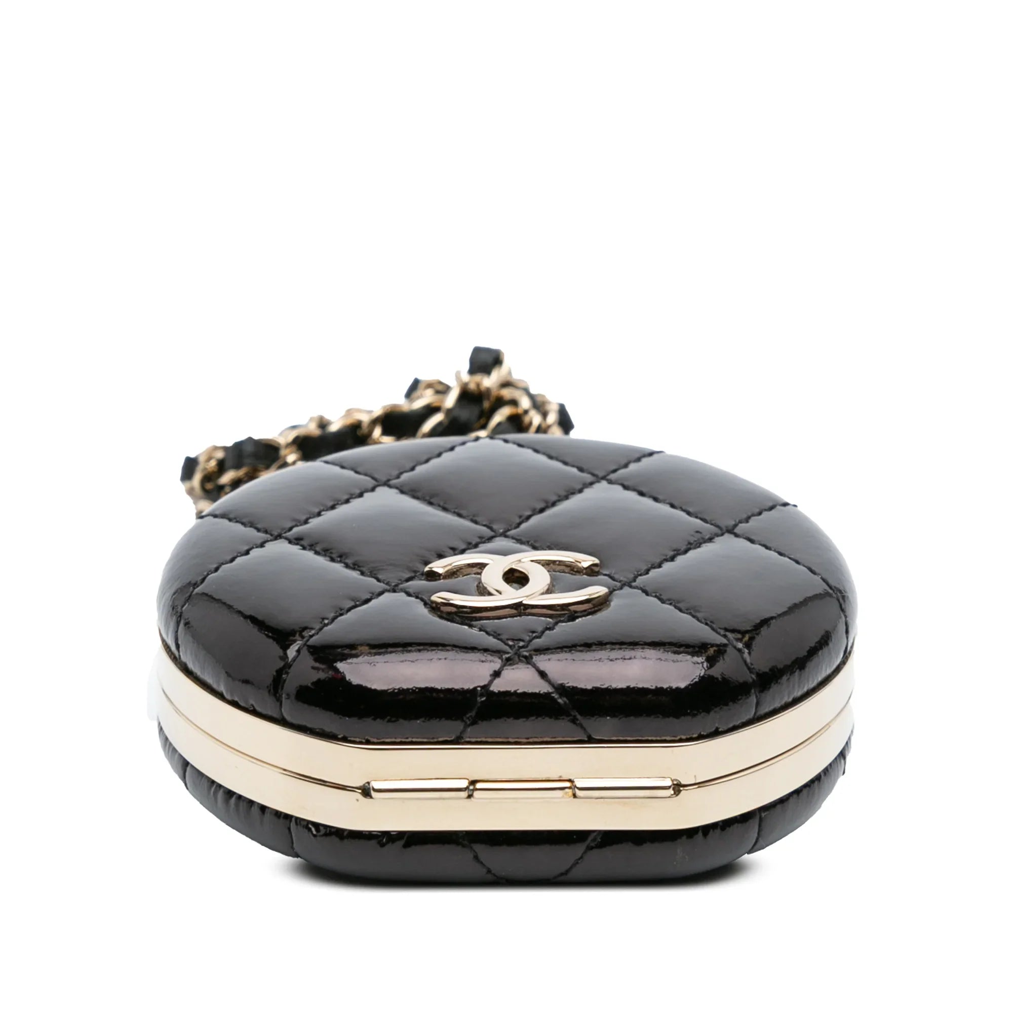 Black Chanel Quilted Patent Round Mirror Chain Necklace