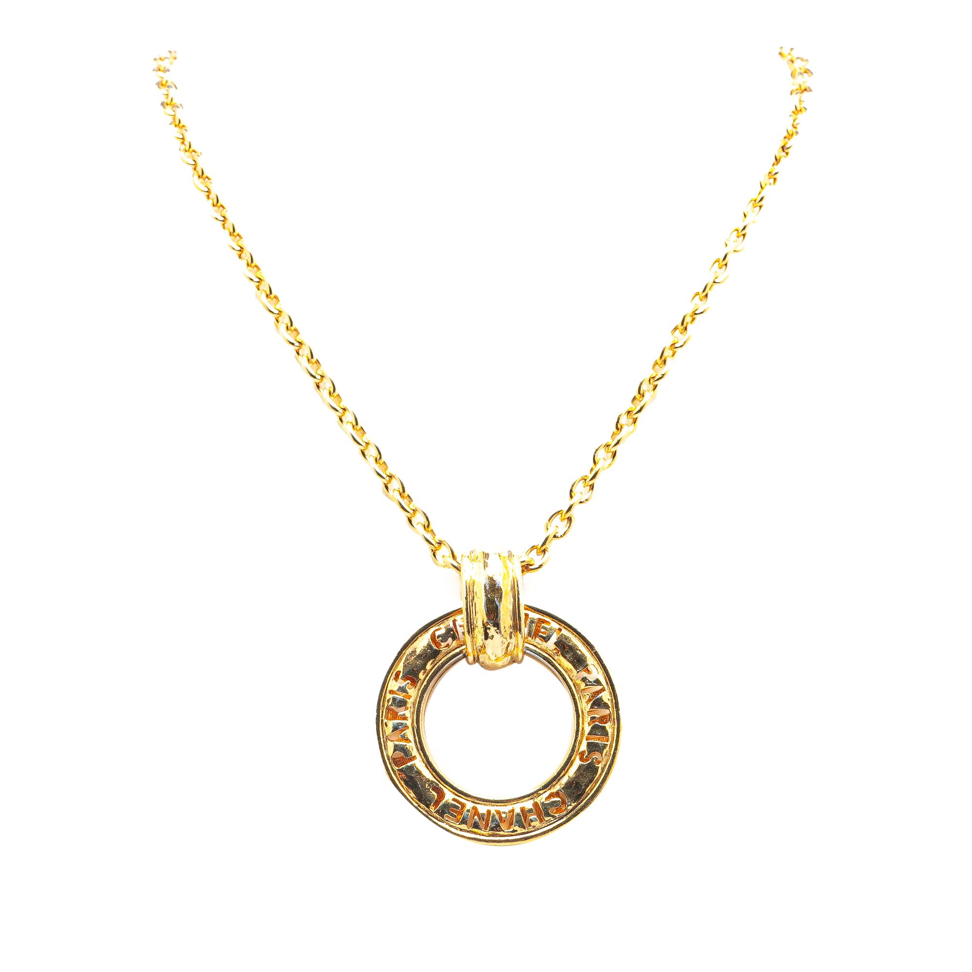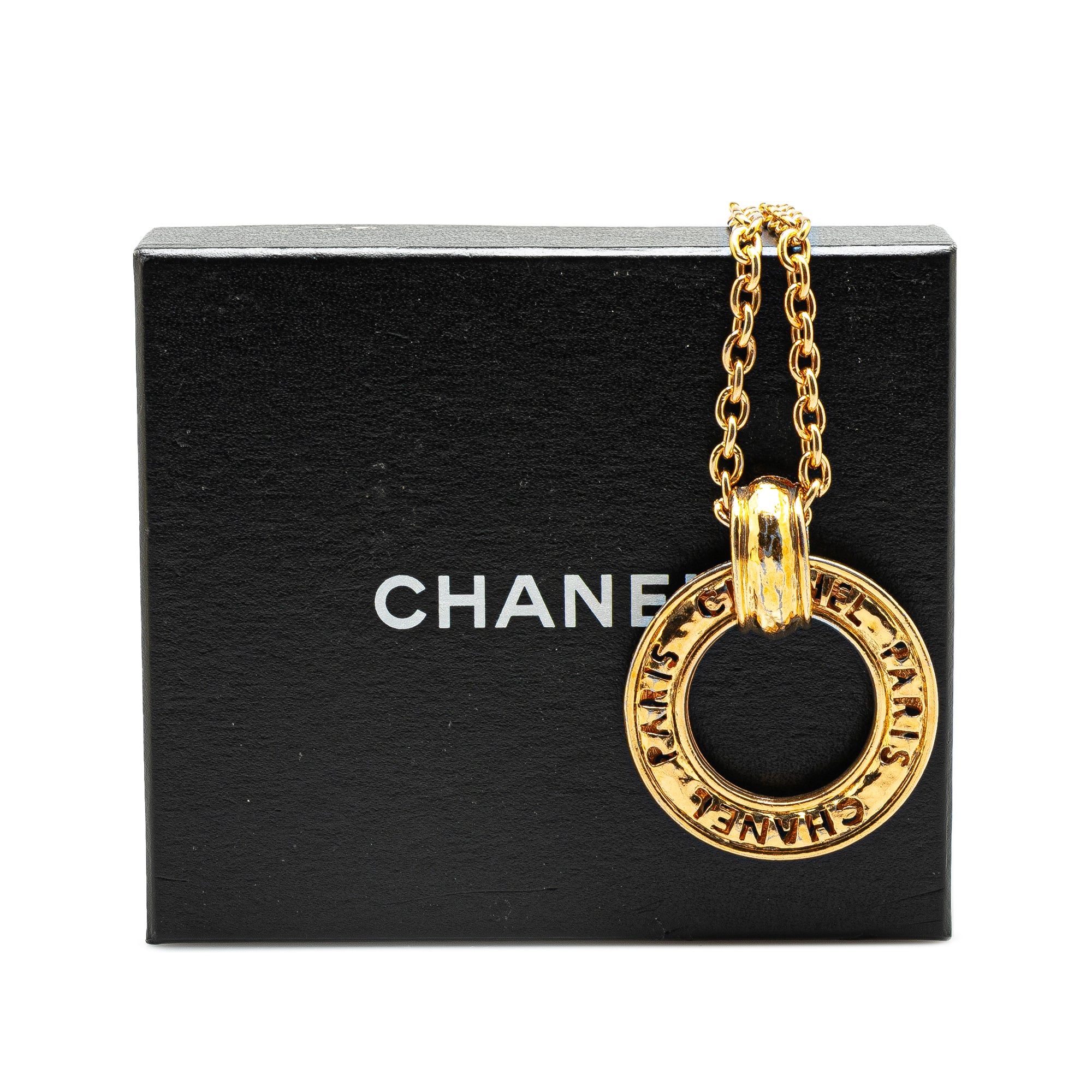 Gold Chanel Gold Plated Circle Logo Pendant Necklace