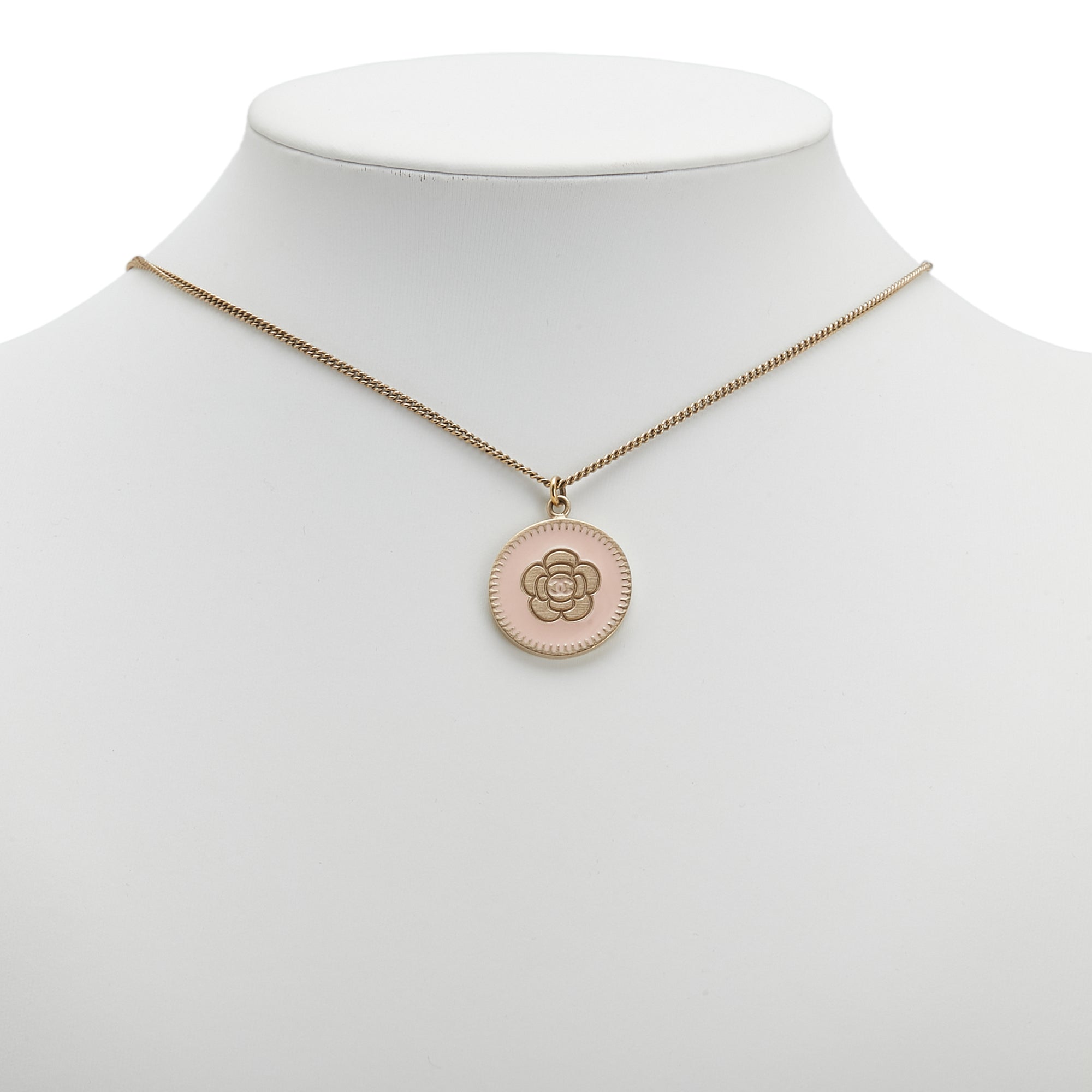 Gold Chanel Gold Plated Enamel Camelia Pendant Necklace