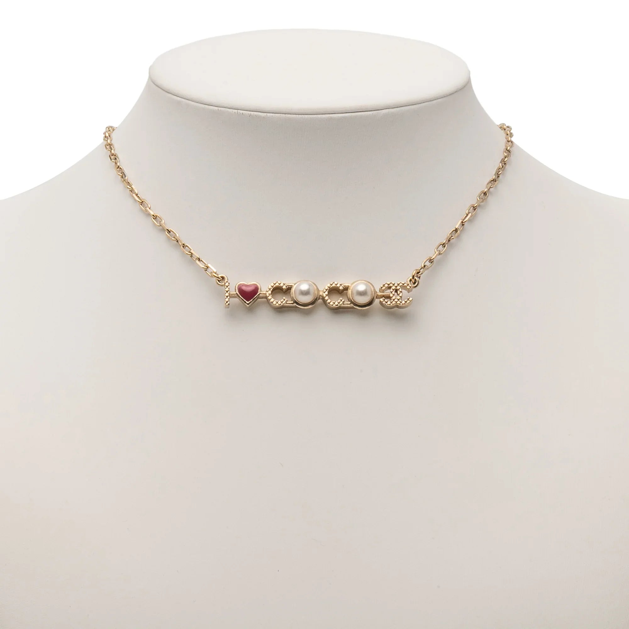 Gold Chanel Gold Plated I Love You Coco Faux Pearl Pendant Necklace