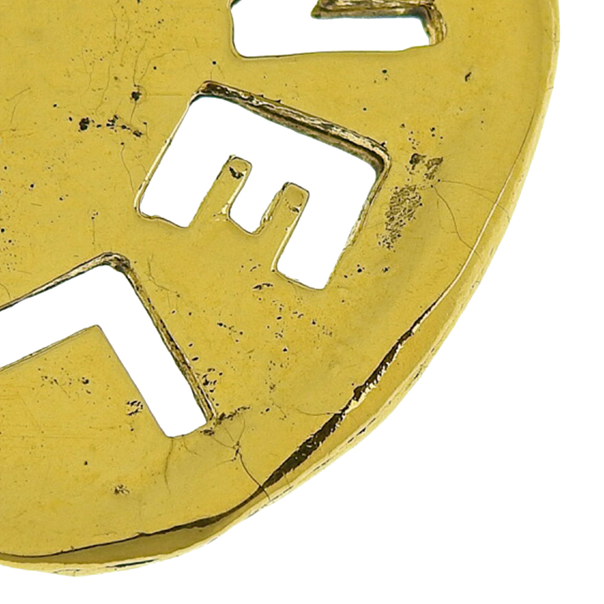 Gold Chanel Gold Plated Logo Round Pendant Necklace