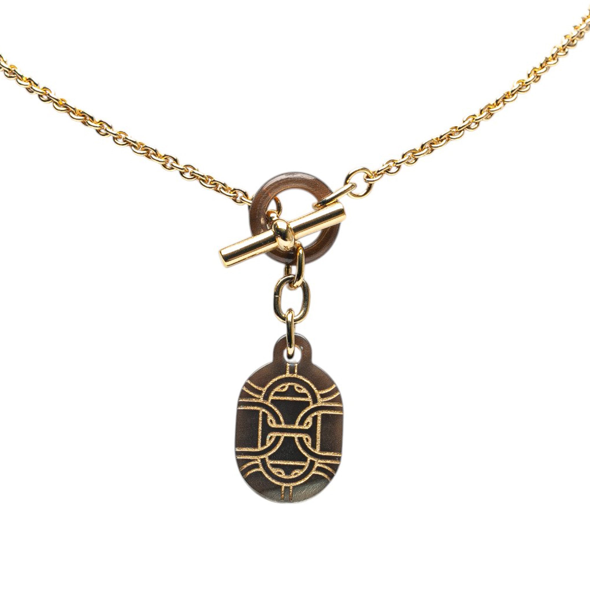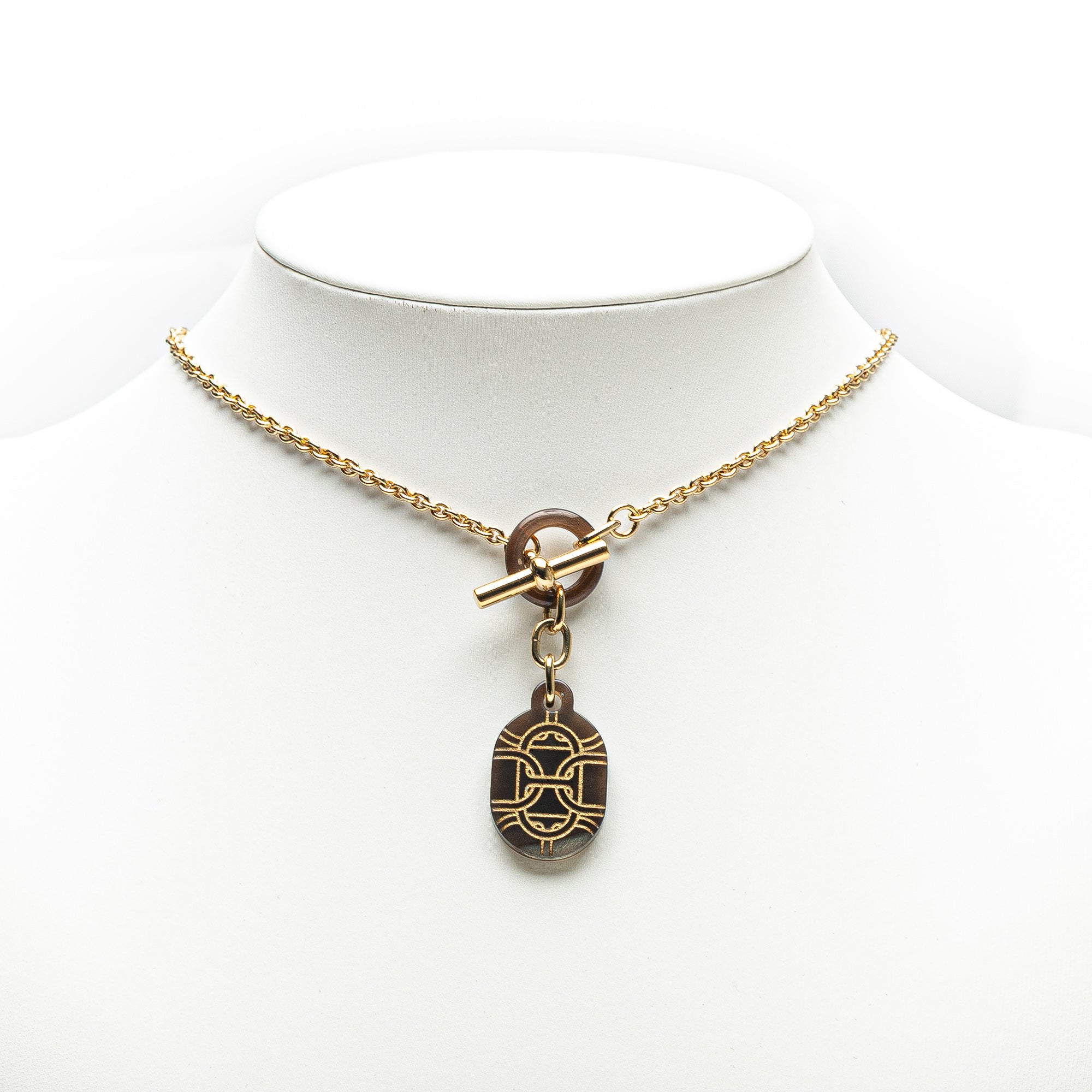 Gold Hermès Lacquered Horn Chaine d'Ancre Pendant Necklace