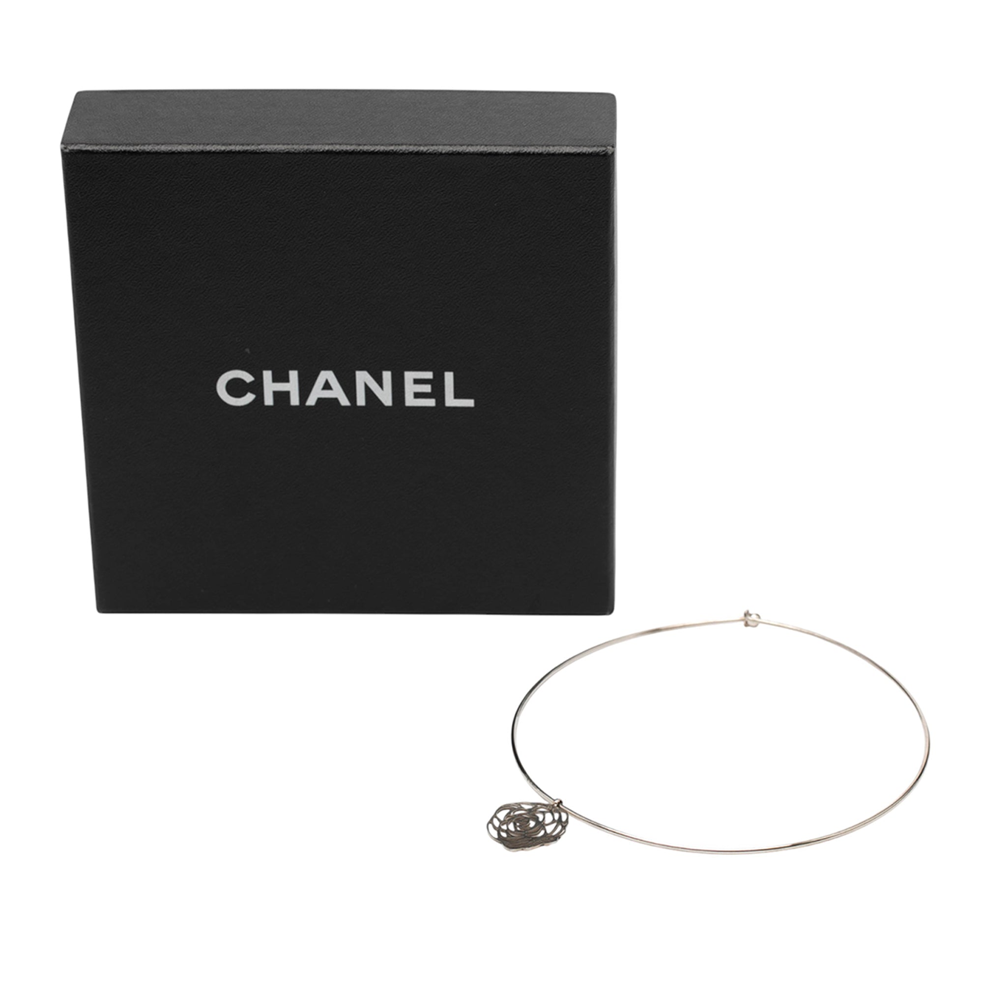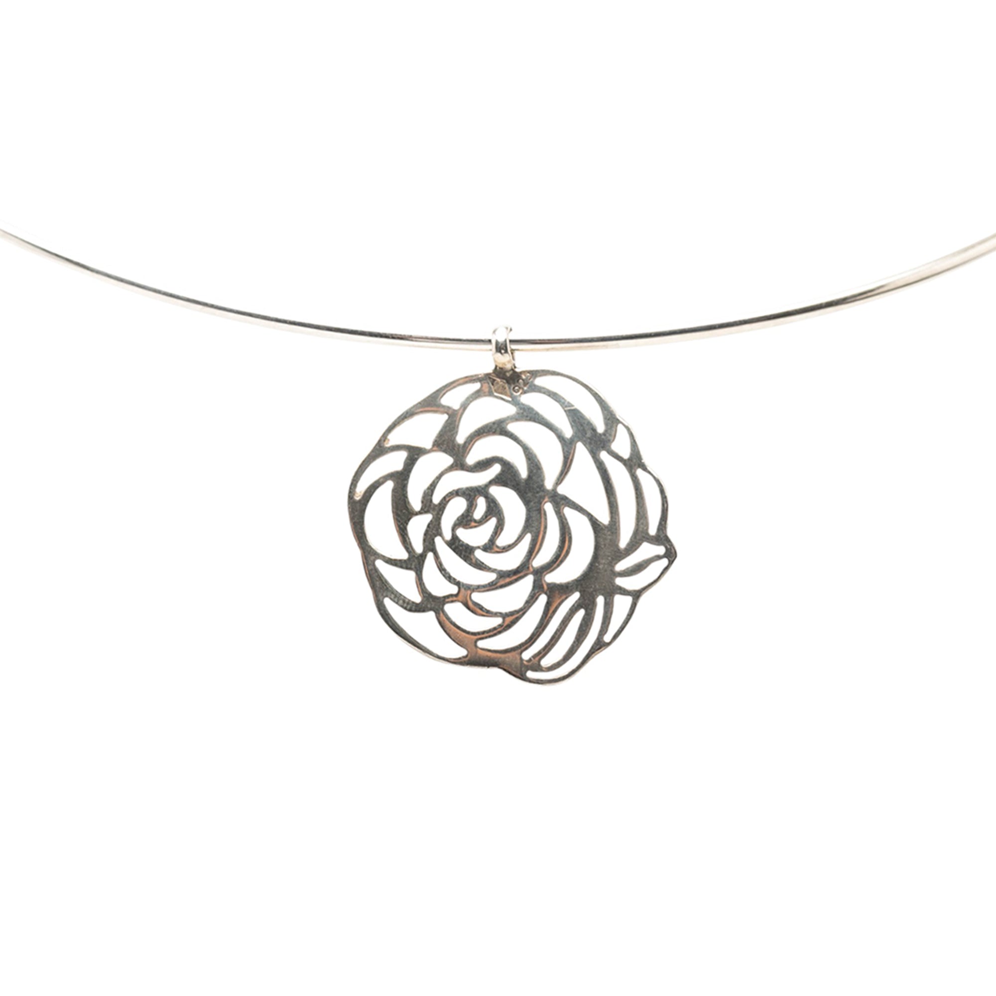 Silver Chanel Sterling Silver Camellia Cutout Pendant Choker Necklace