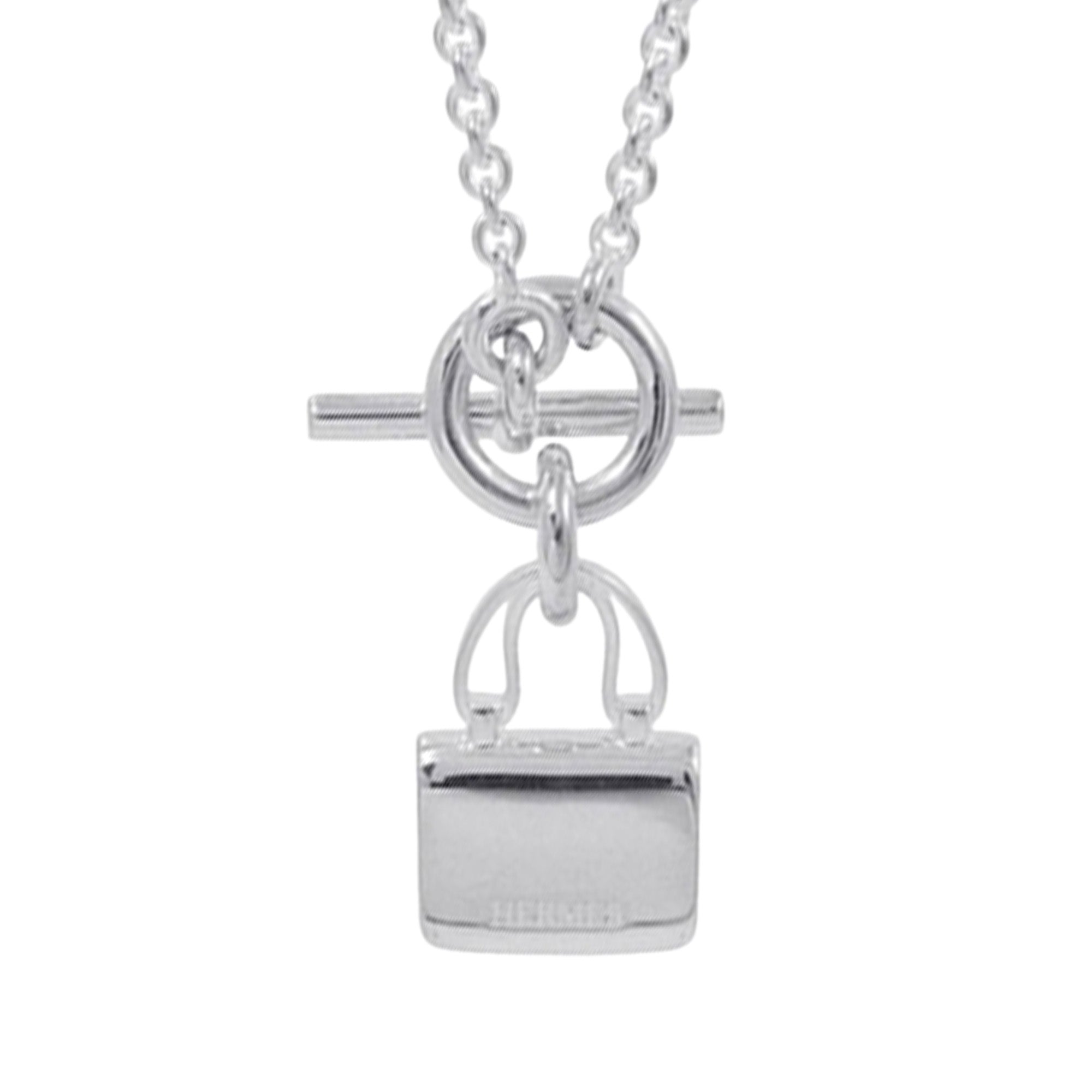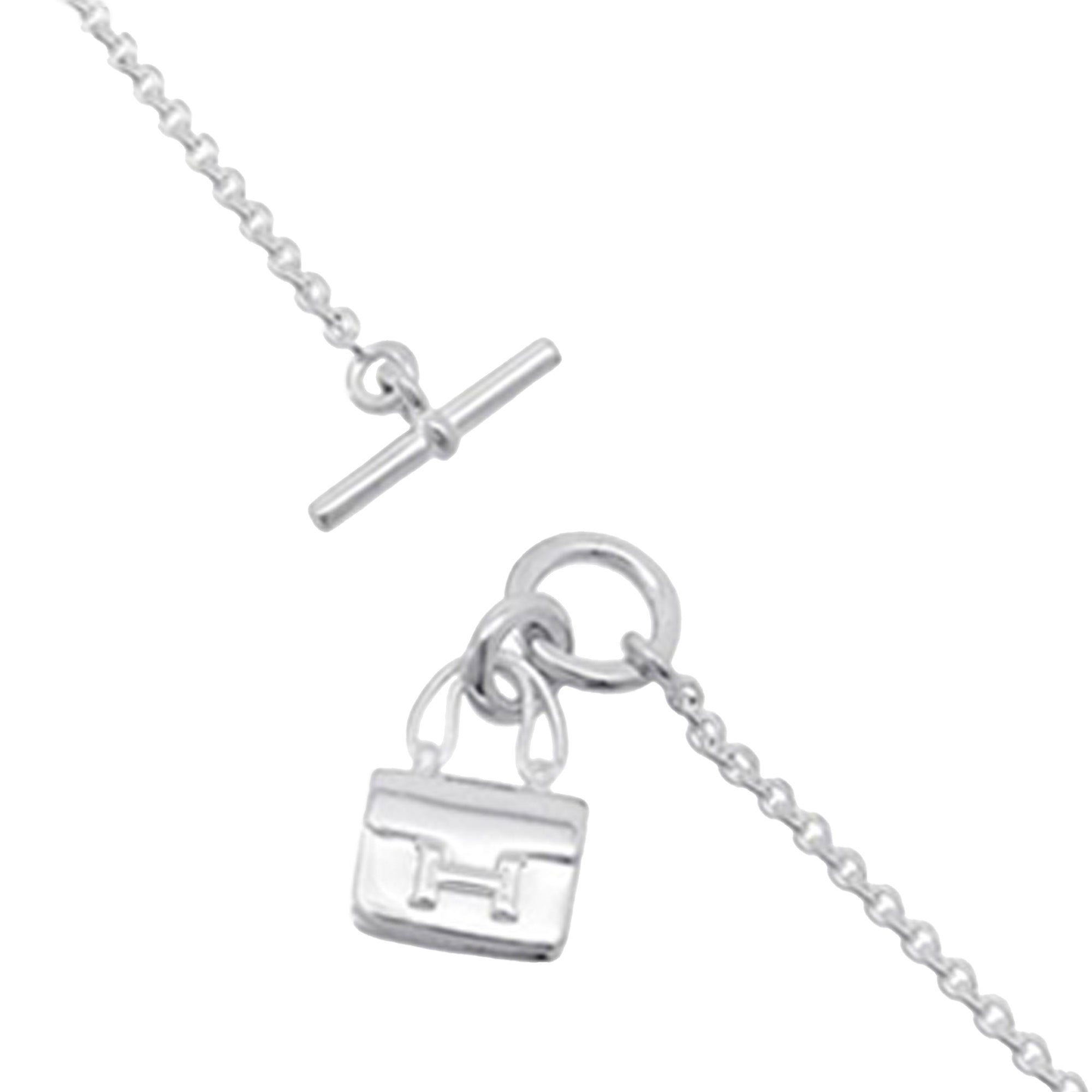 Product Details: Silver Hermès Sterling Silver Amulettes Constance Necklace. This necklace features a sterling silver body, a sterling silver charm, and a toggle closure. Motif Measurements: W1.23cm x H2.50cm. 15.7" L x 0.5" W x 0" D.