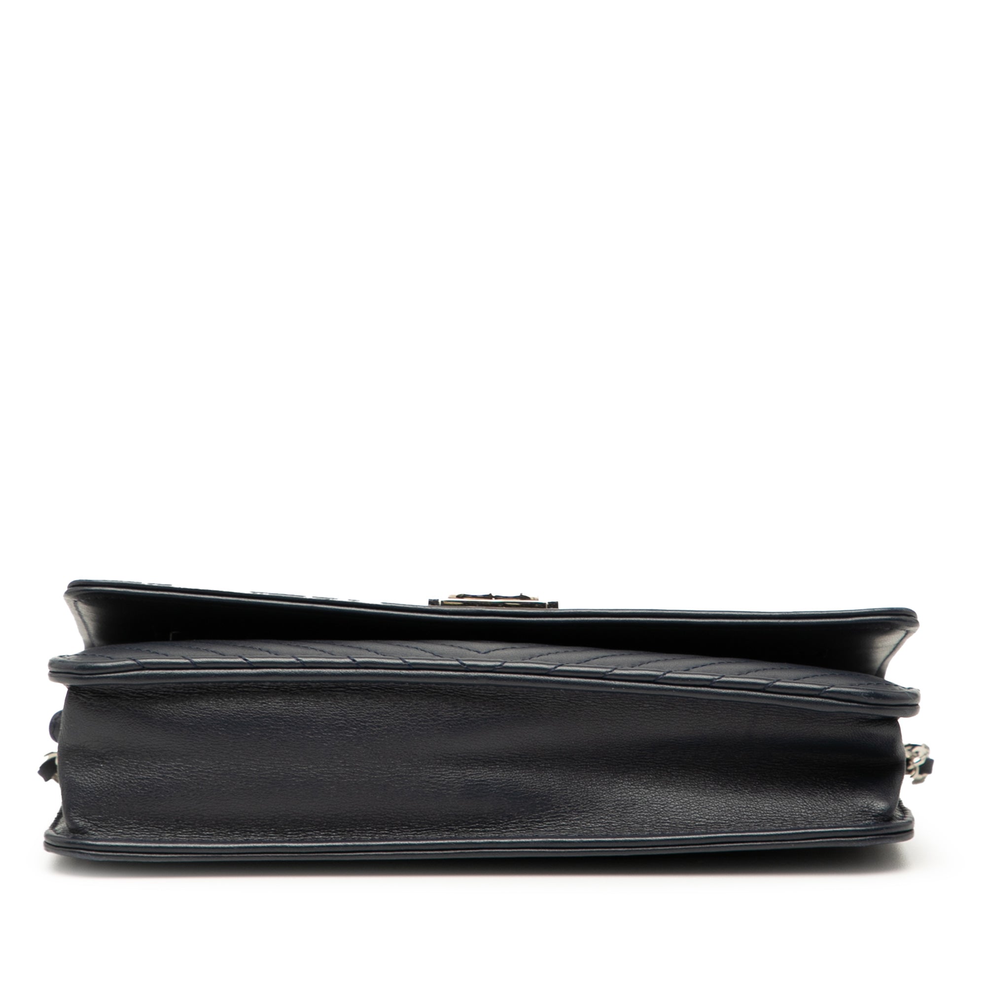 Blue Chanel Chevron Lambskin Boy Wallet on Chain Crossbody Bag