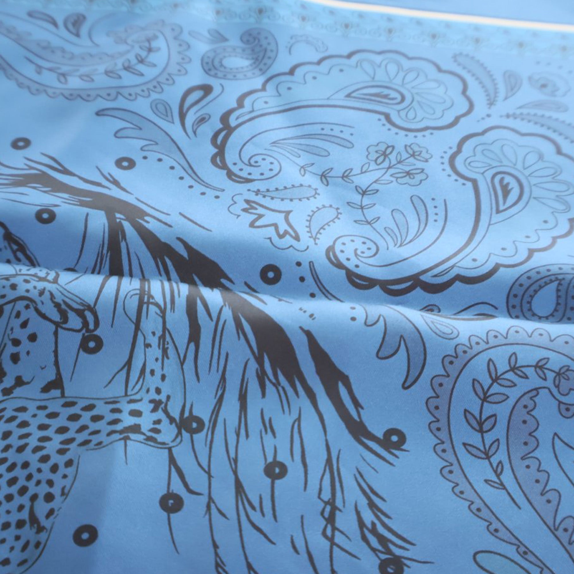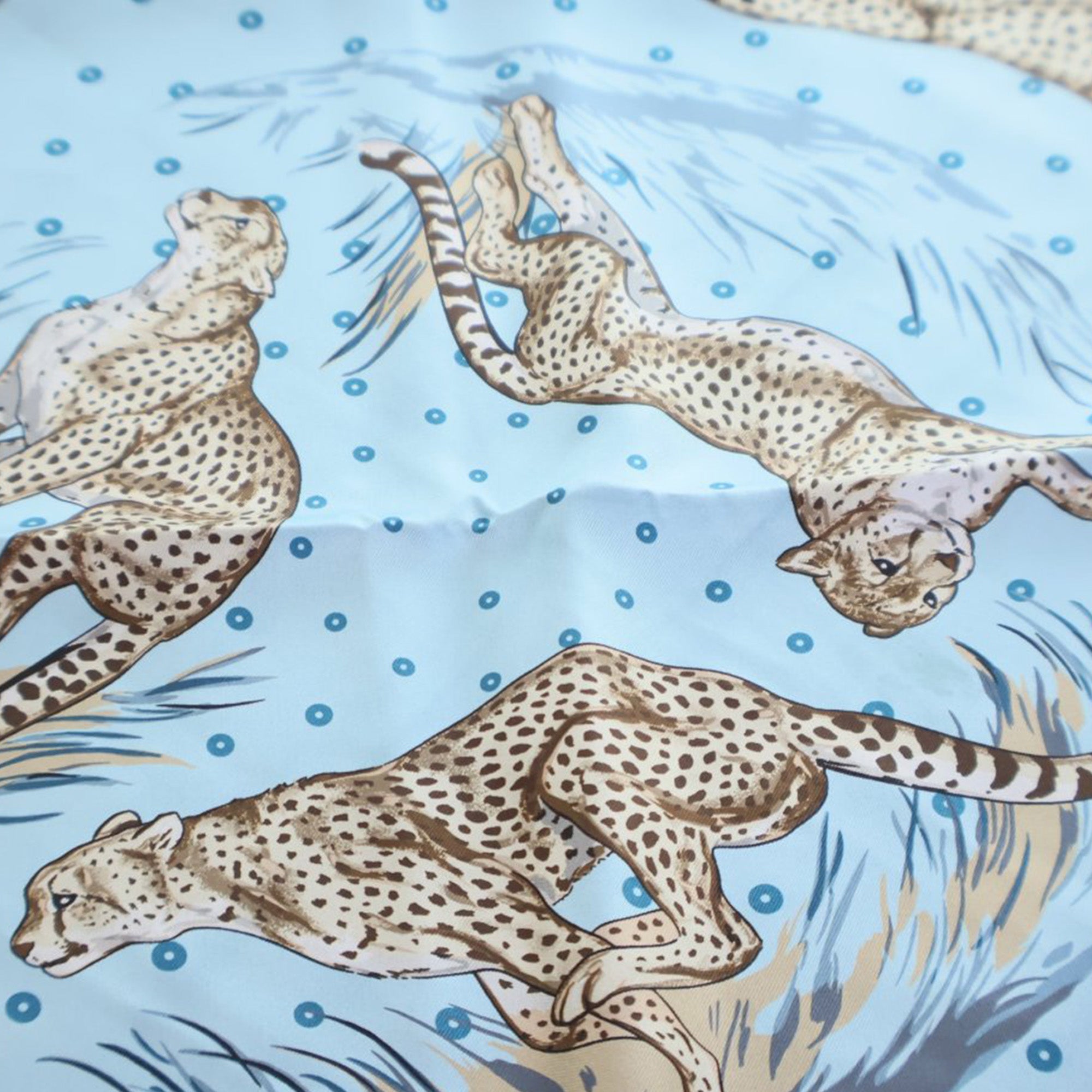 Blue Hermès Guepards Bandana Double Face Silk Scarf Scarves