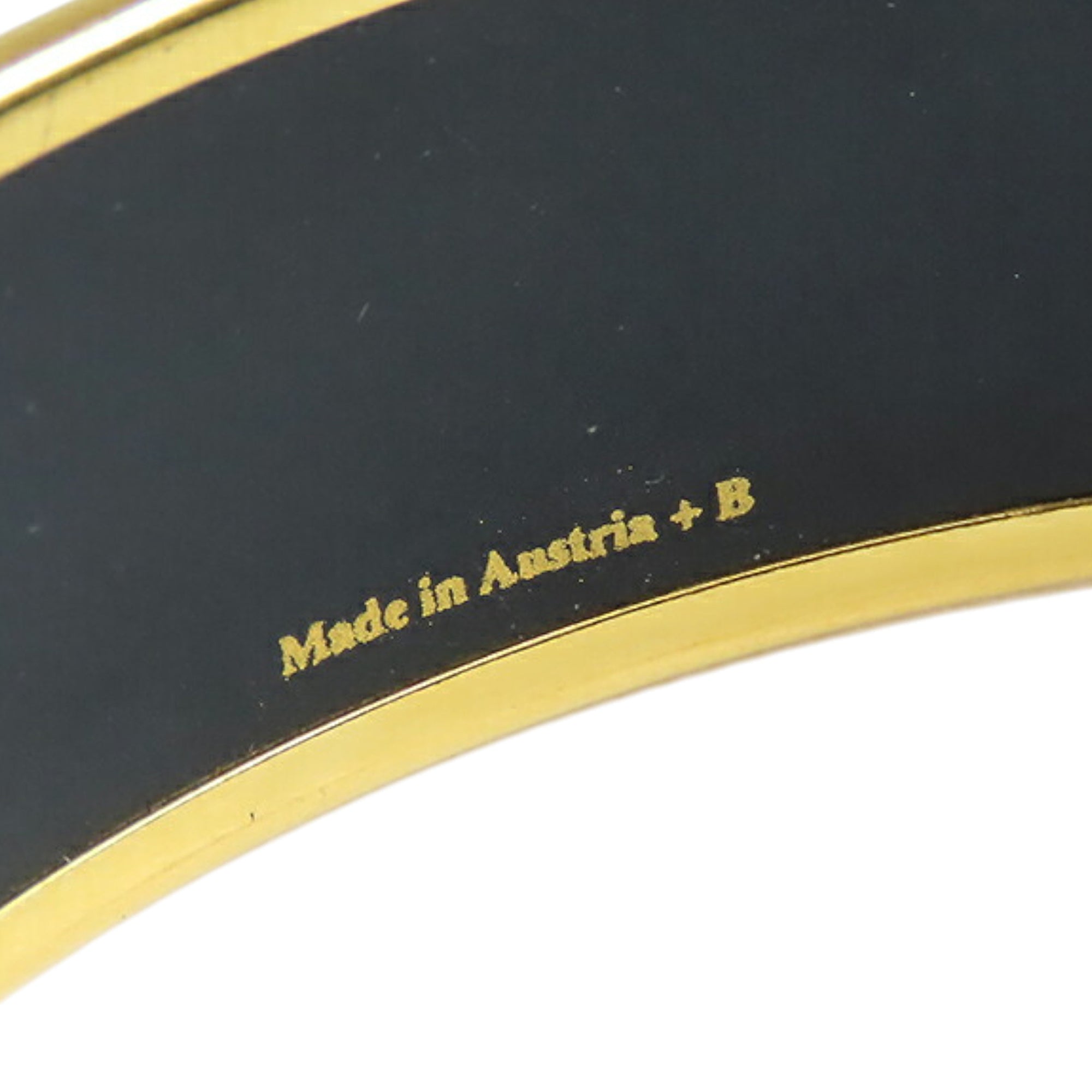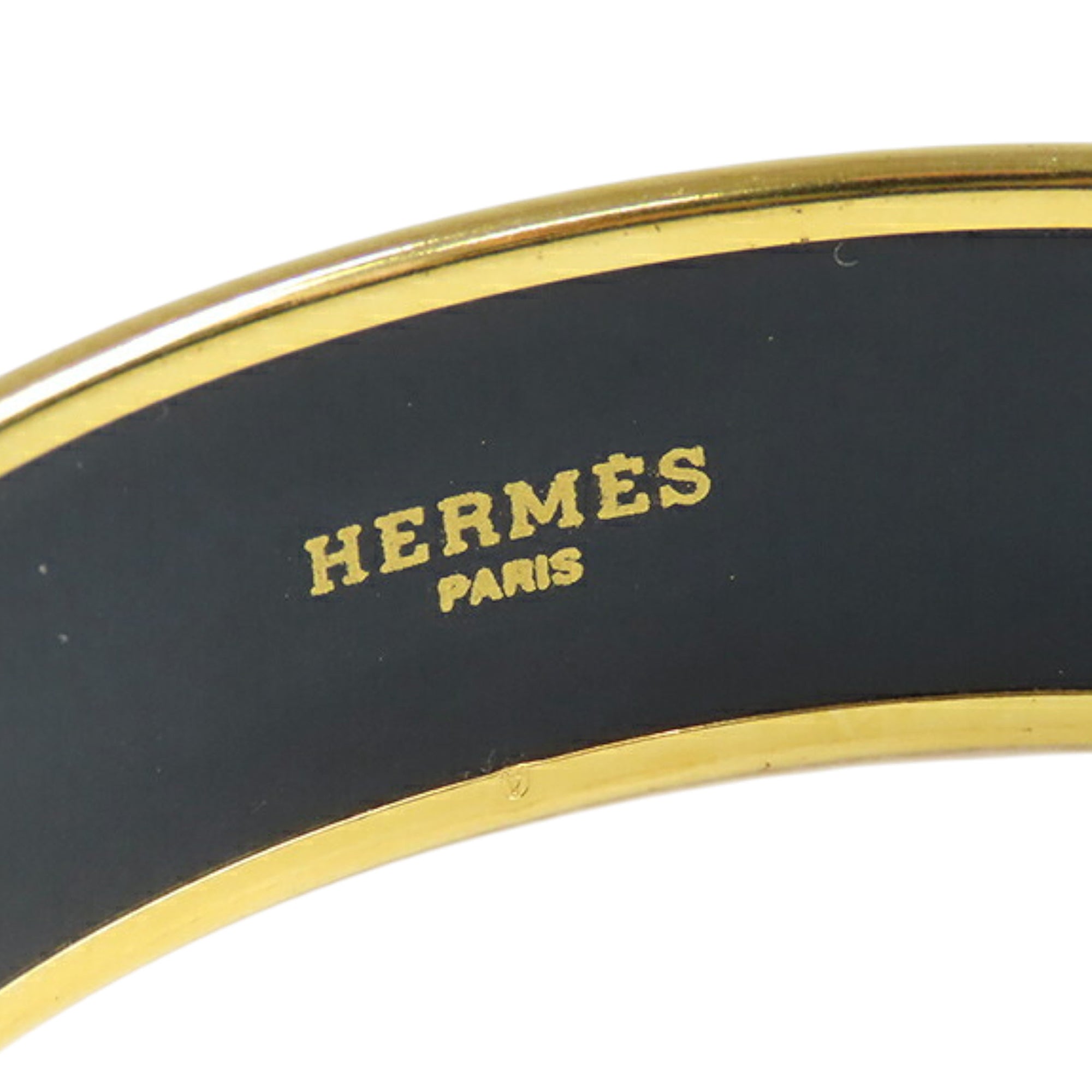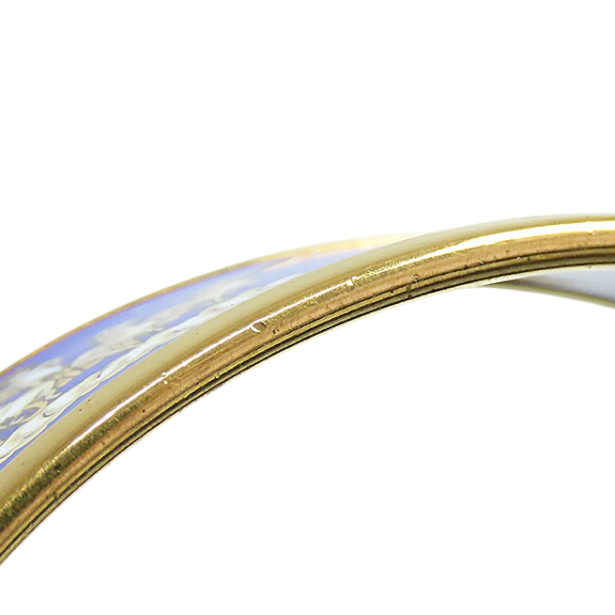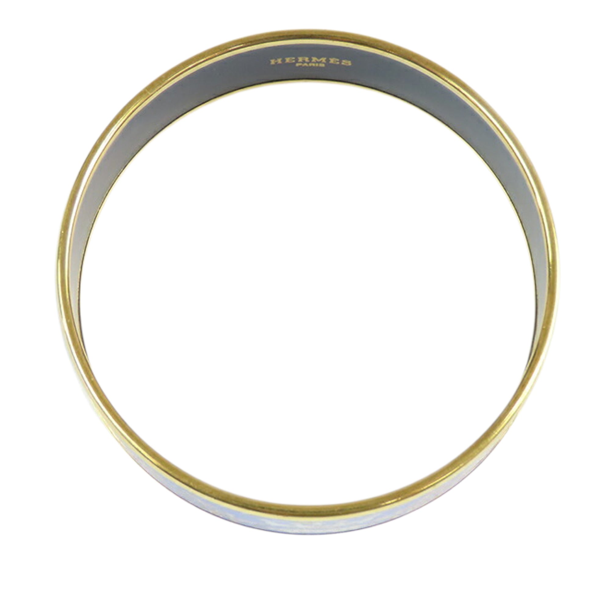 Product Details: Blue Hermès Wide Enamel Cloisonne Bangle 65 Costume Bracelet. This bracelet features a print on enamel and gold plated body. 8.1" L x 2.6" W x 0" D.