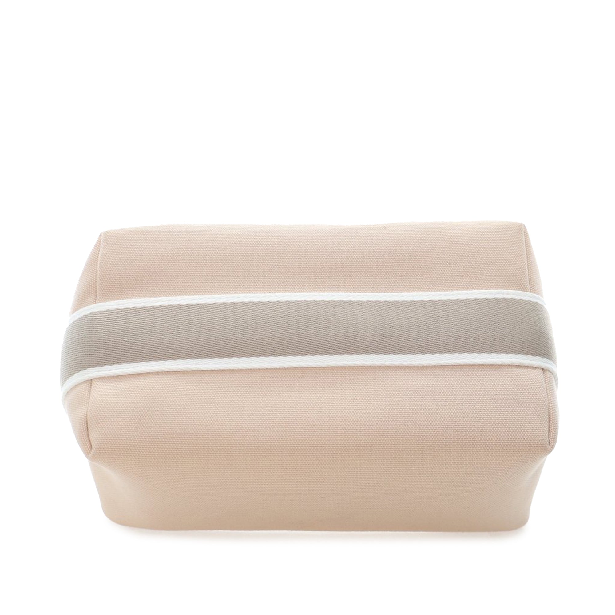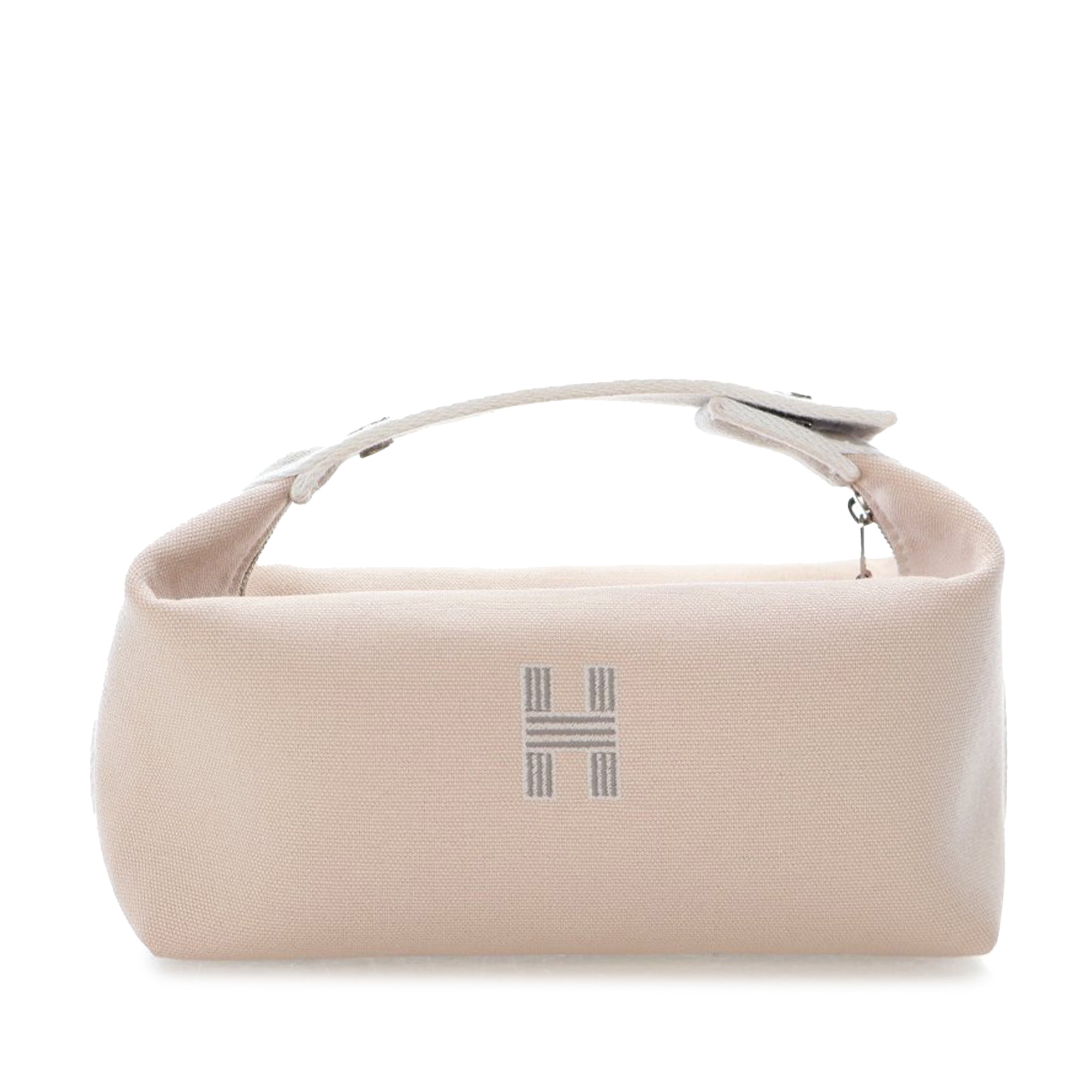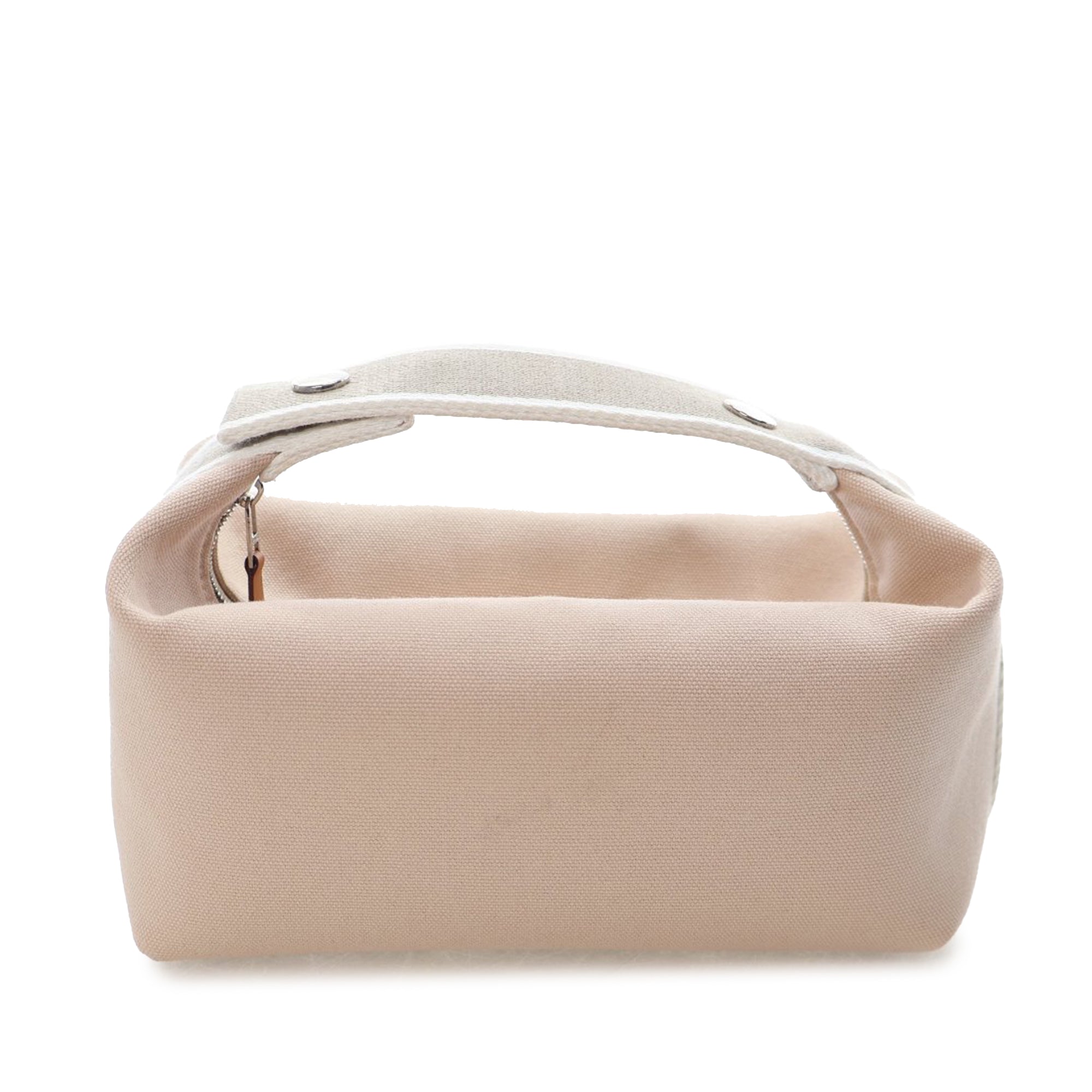 Product Details: Brown Hermès Small Toile Bride A Brac Case. The Bride-A-Brac features a canvas body, a flat handle, a top zip closure, and interior slip pockets. 3.9" L x 8.3" W x 4.7" D, 2.4" drop.