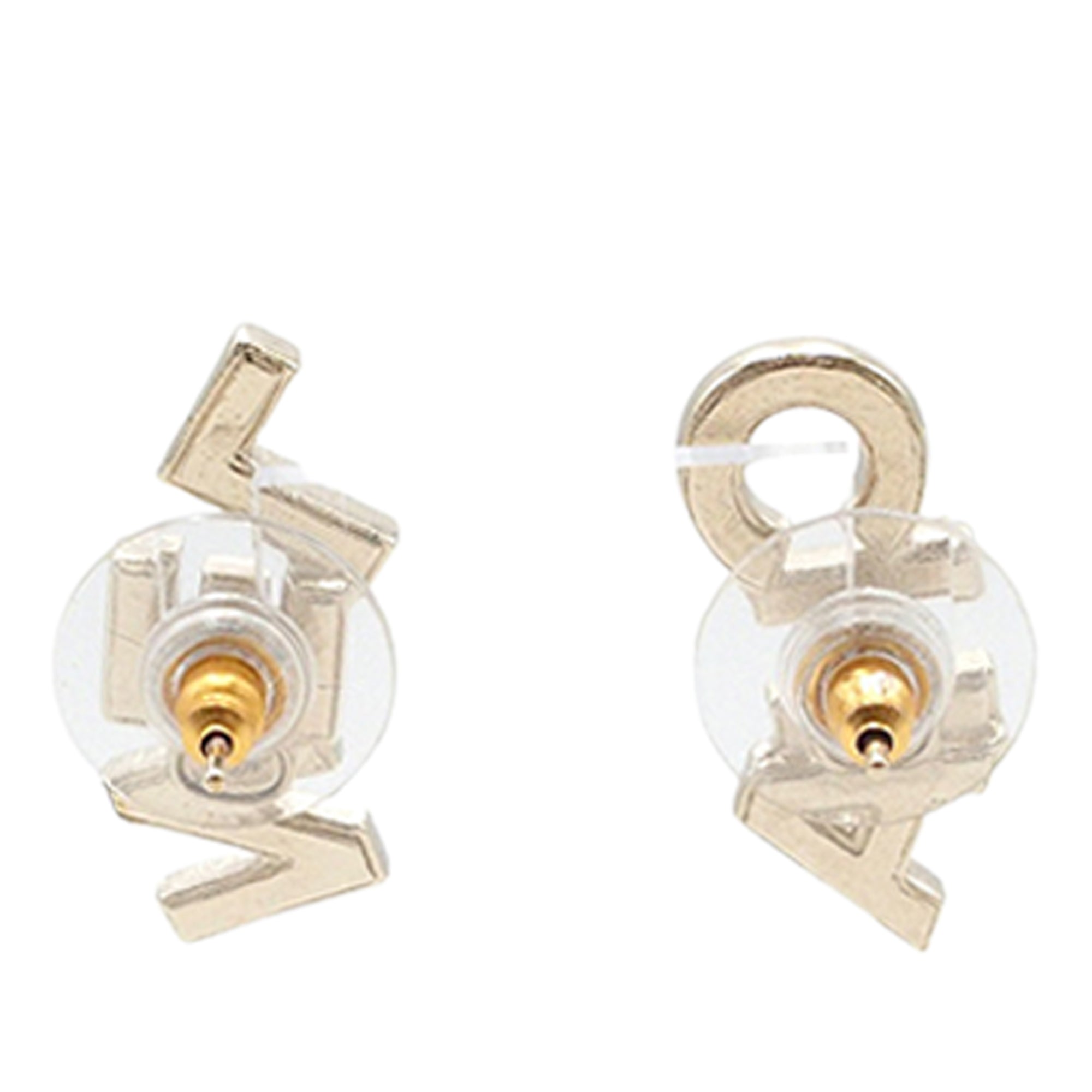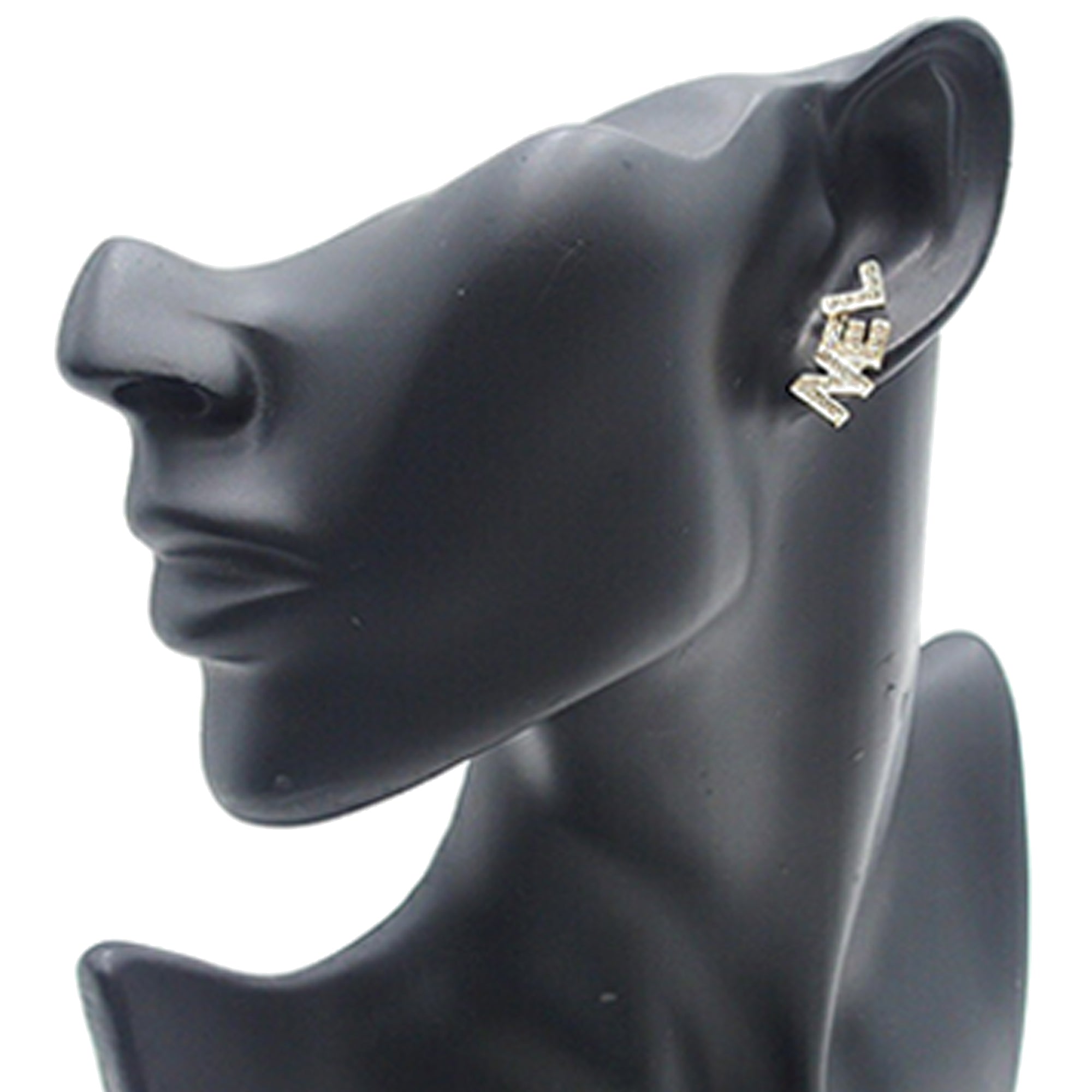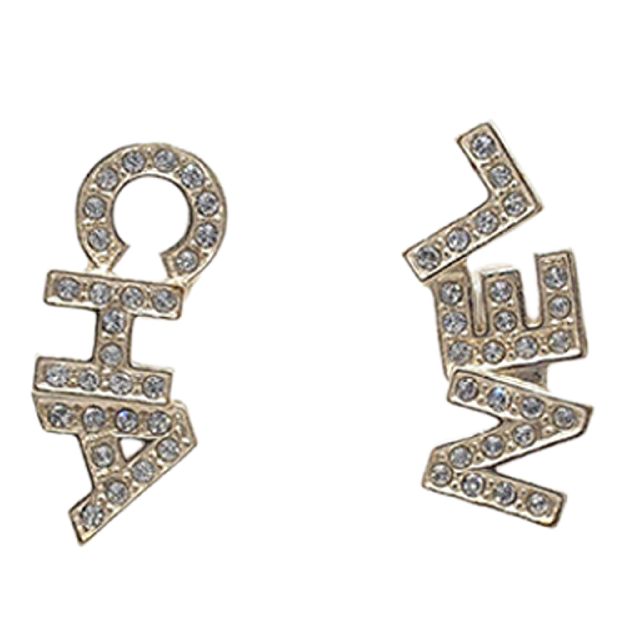 Gold Chanel CC Gold Plated Crystals Logo Push Back Earrings