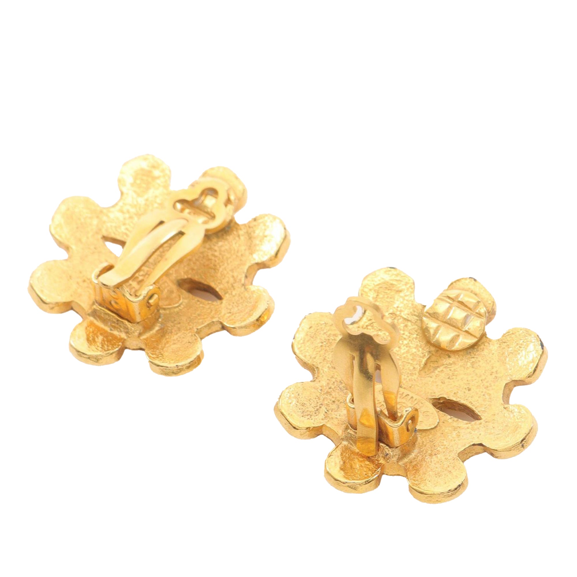 Gold Chanel Gold Plated CC Floral Clip On Earrings