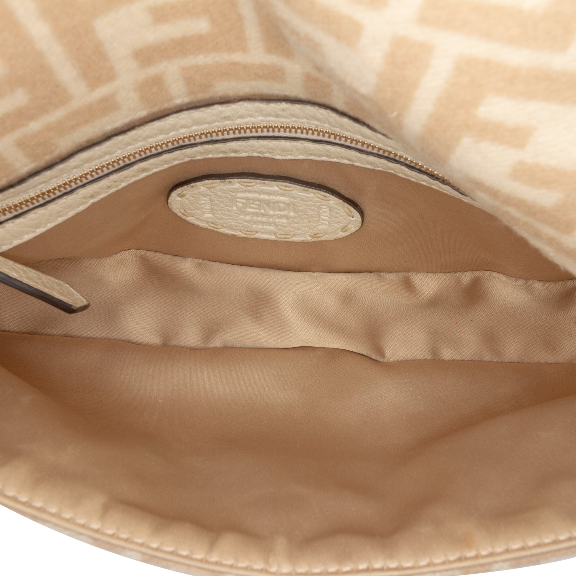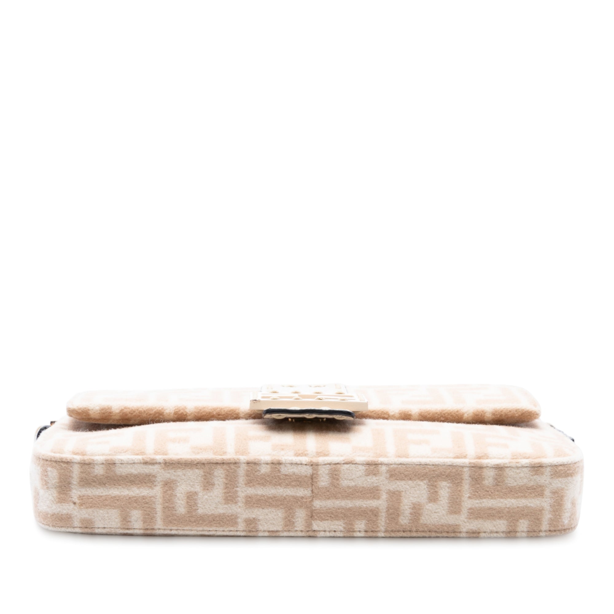 Tan Fendi Zucca Wool Selleria Baguette Shoulder Bag