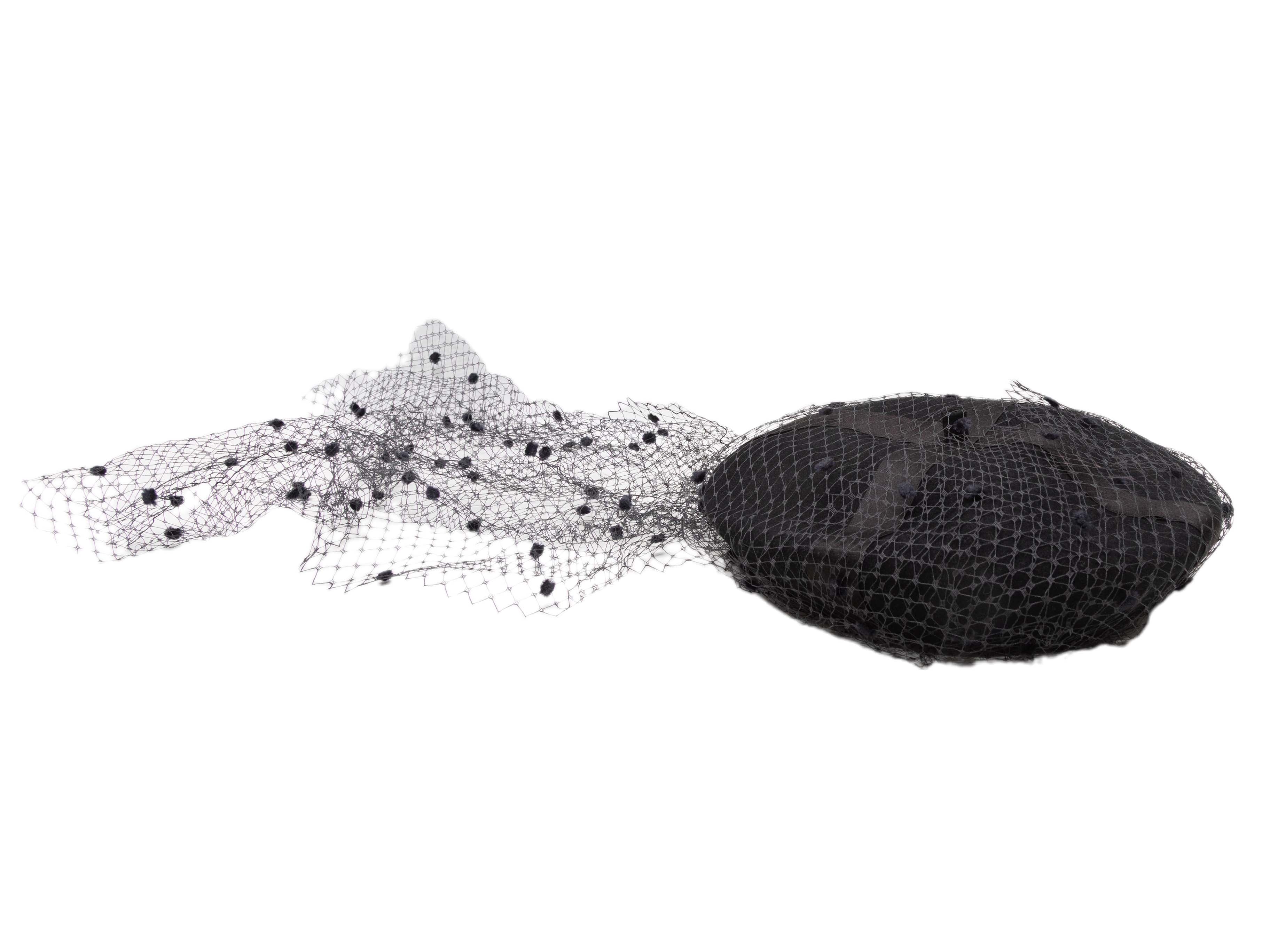 Product Details: Vintage black felt netted tulle-accented beret by Chanel. Circa 1980s. 9" width.