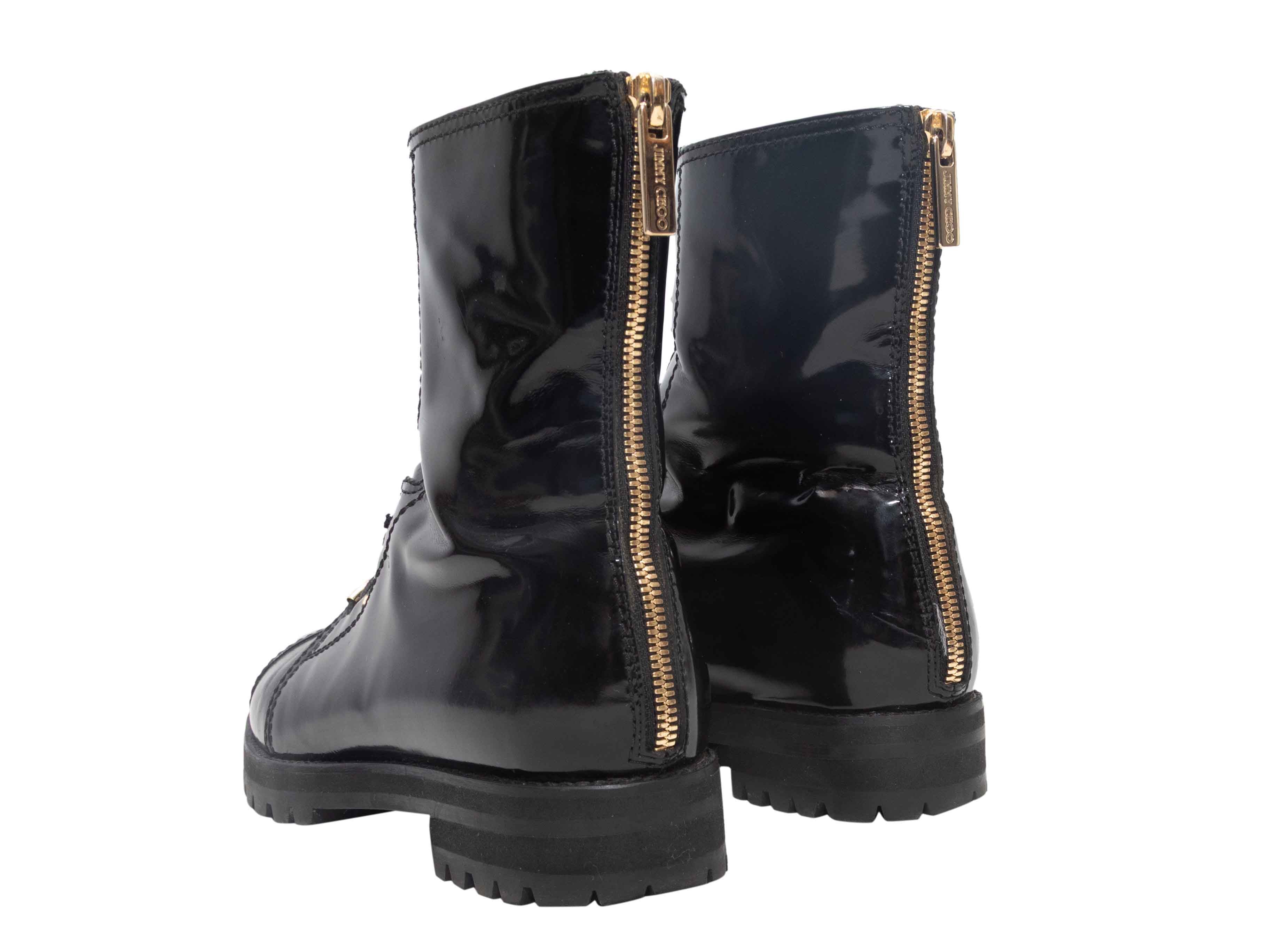Black Jimmy Choo Patent Leather Combat Boots Size 39