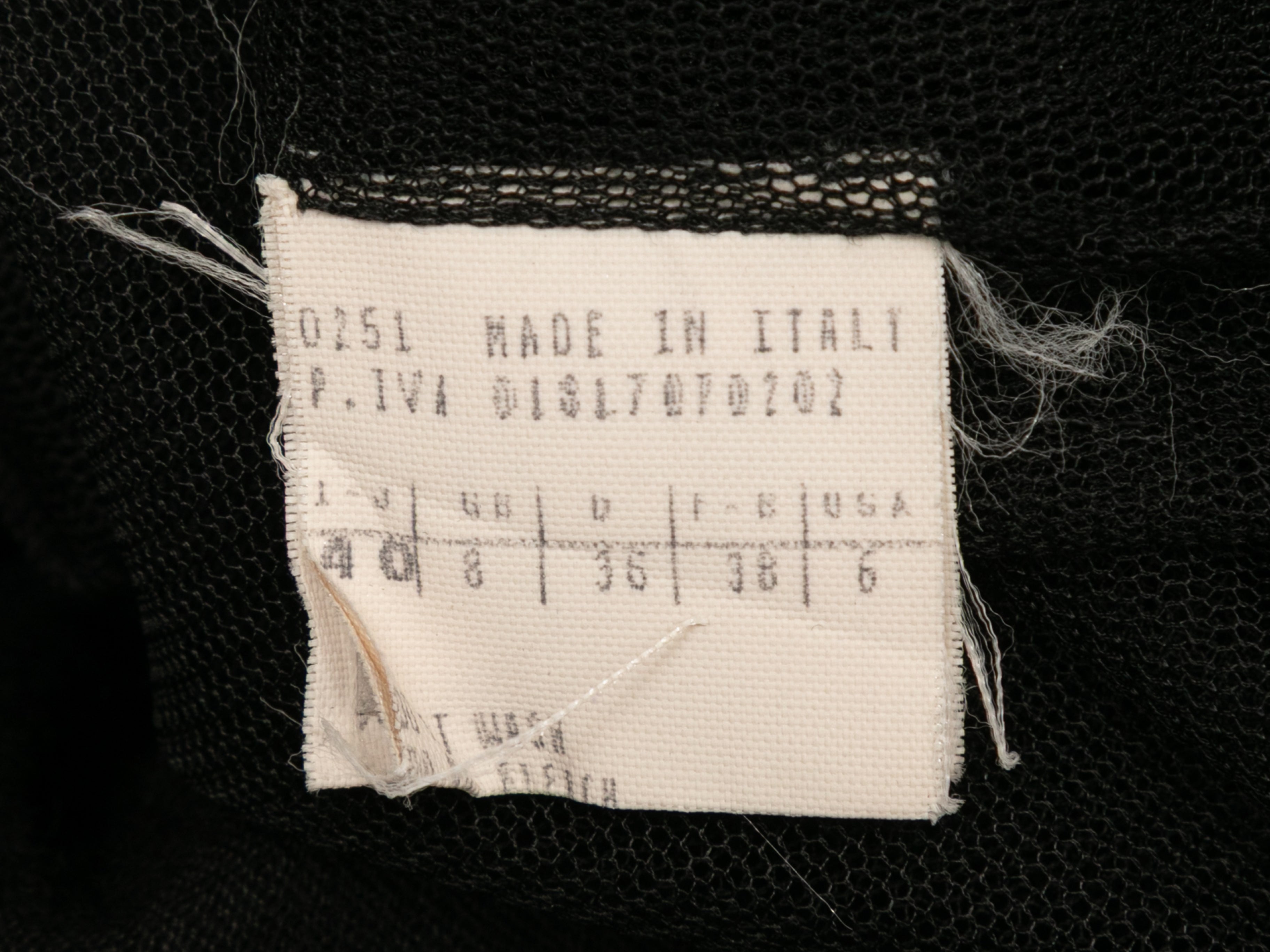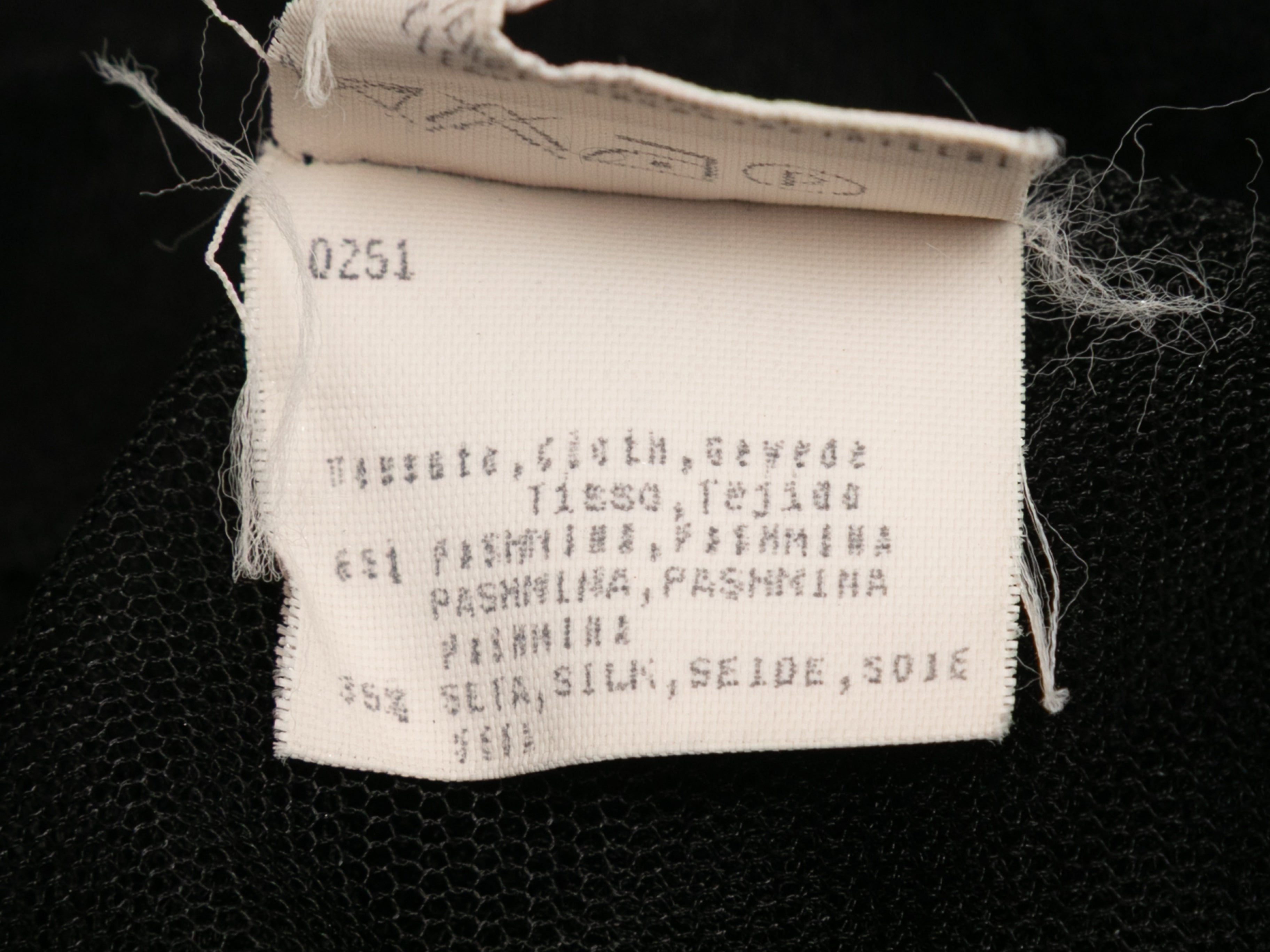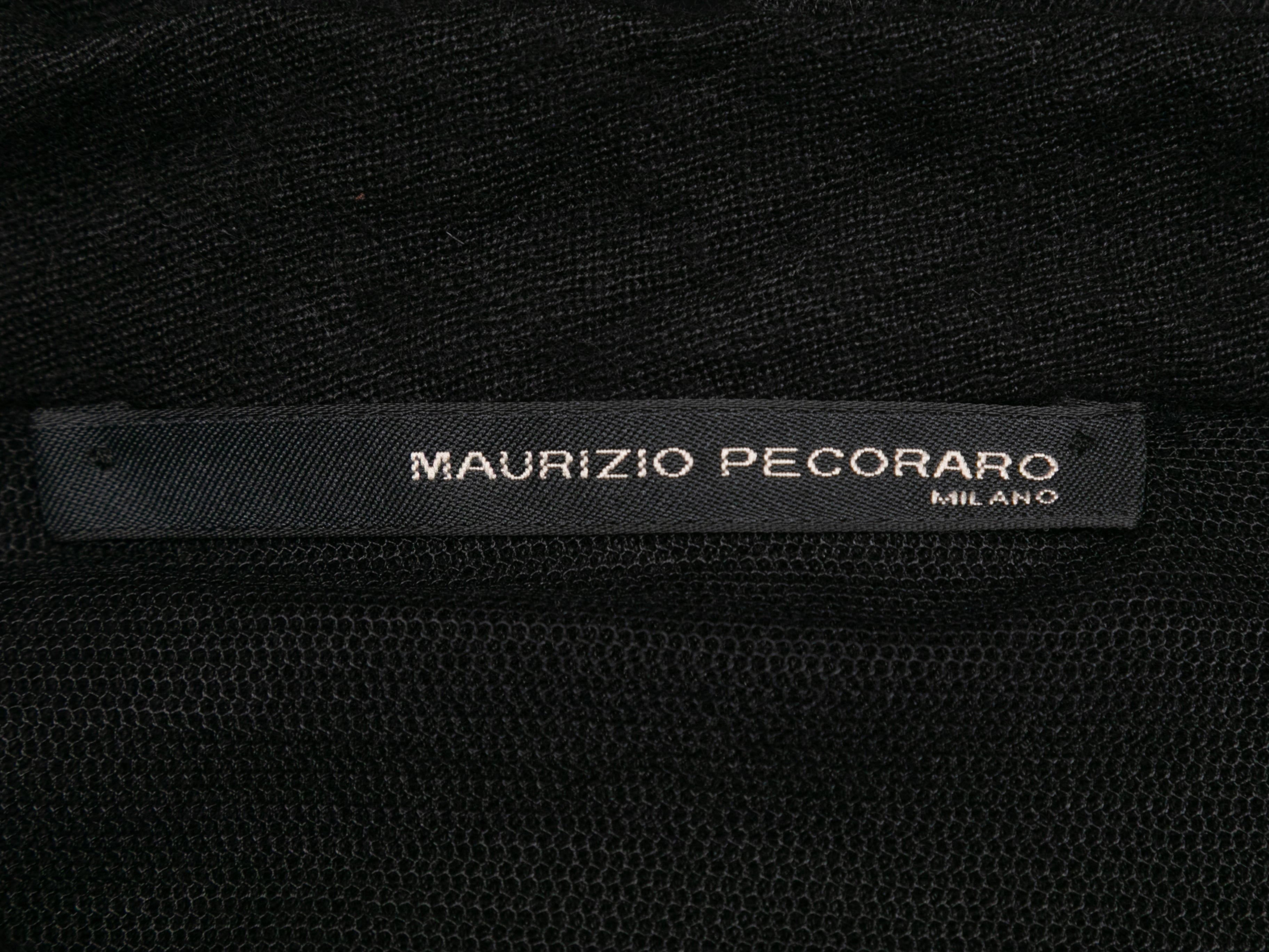 Product Details: Black cashmere and silk-blend sleeveless dress by Maurizio Pecoraro. Crew neck featuring bow accent. 31" bust, 32" waist, 36" length, 11.5" shoulder width.
