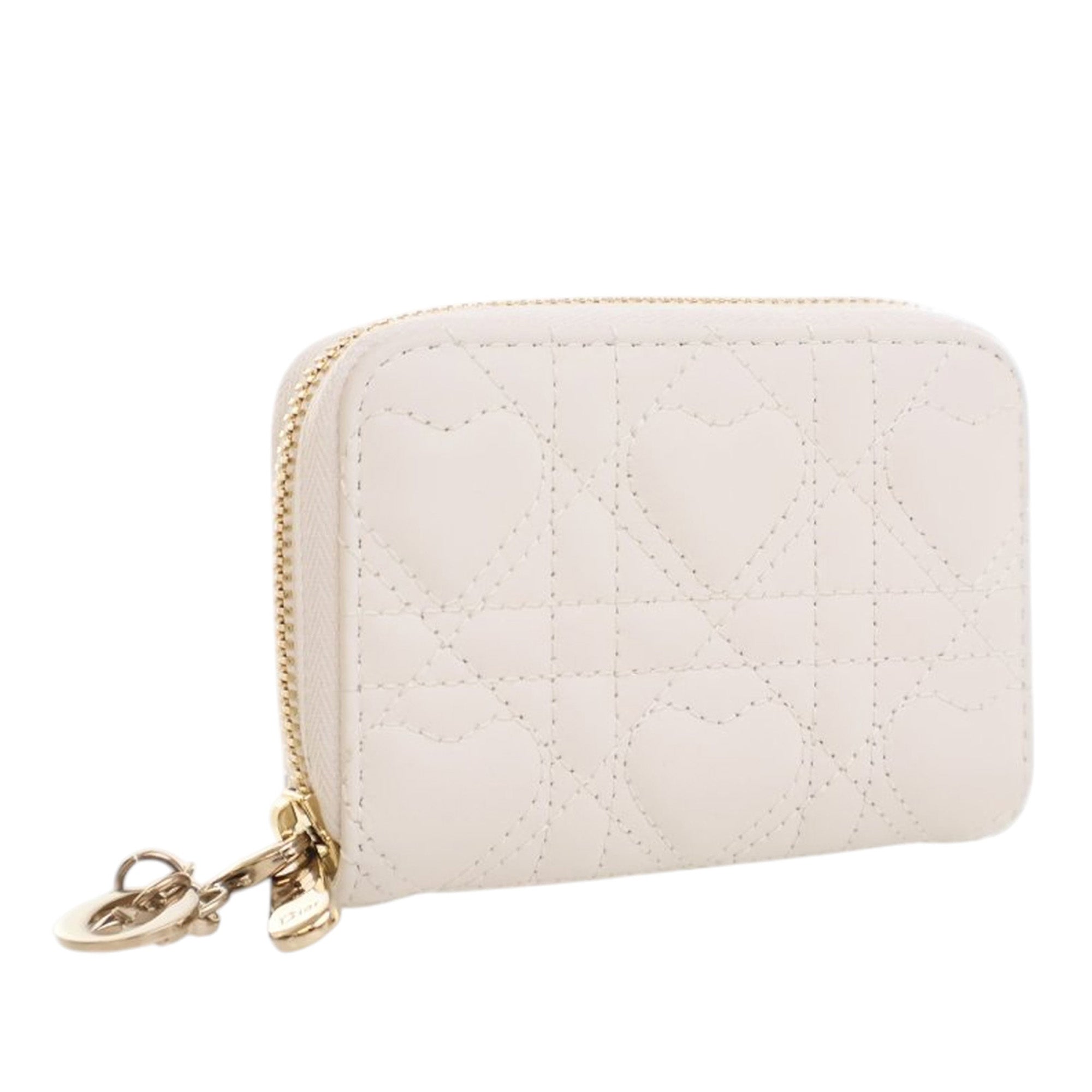White Dior Small Lambskin Heart Motif Lady Dior Voyageur Coin Pouch