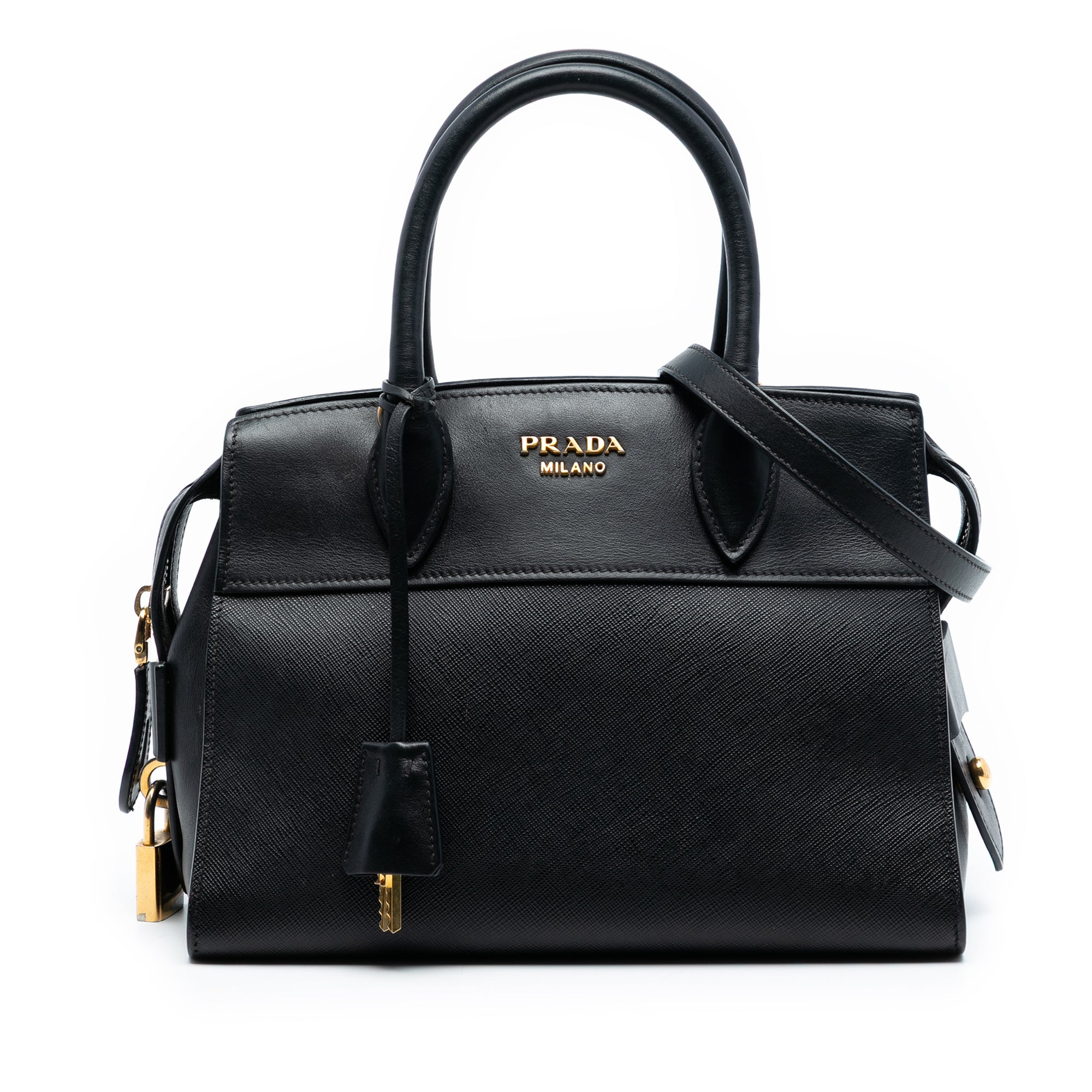Black Prada Small Saffiano and City Calf Esplanade Satchel