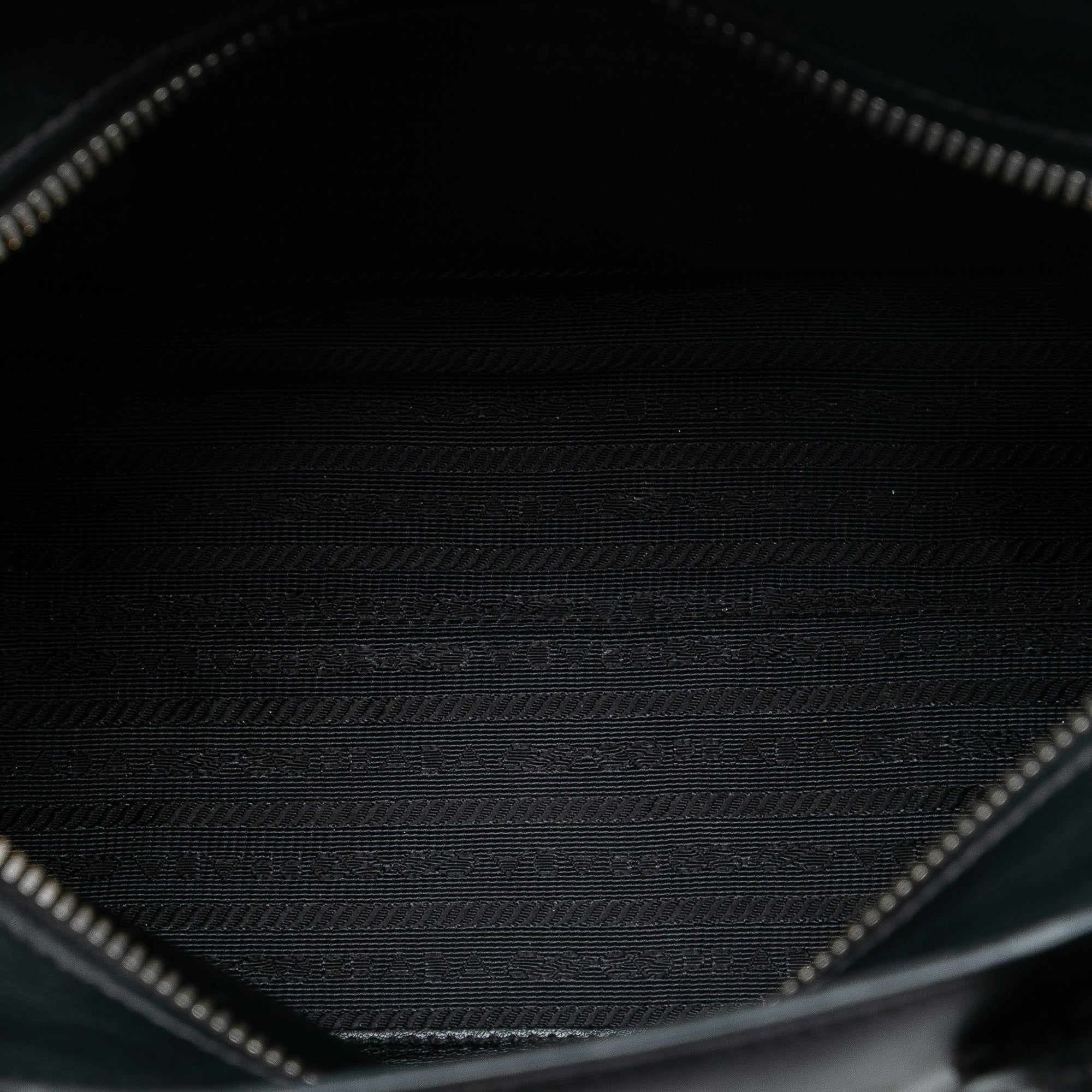 Please note this is a pre-owned item that may display signs of wear consistent with the condition listed above and shown in photos. Designer Revival guarantees this is an authentic Black Prada Small Saffiano and City Calf Esplanade Satchel or 100% of your money back. Learn more about our authentication process.