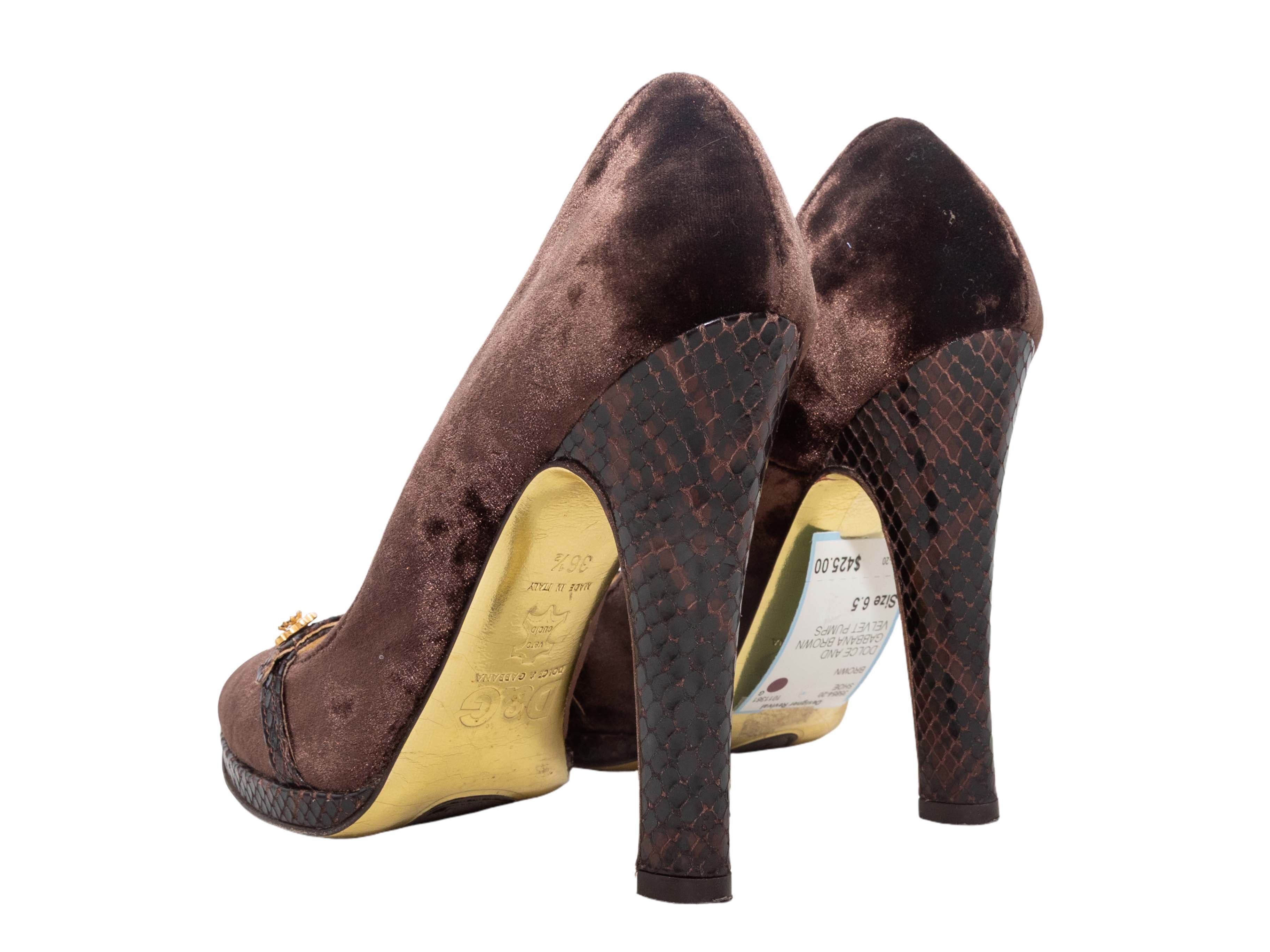 Brown Dolce & Gabbana Velvet & Snakeskin Mary Kane Pumps Size 36.5