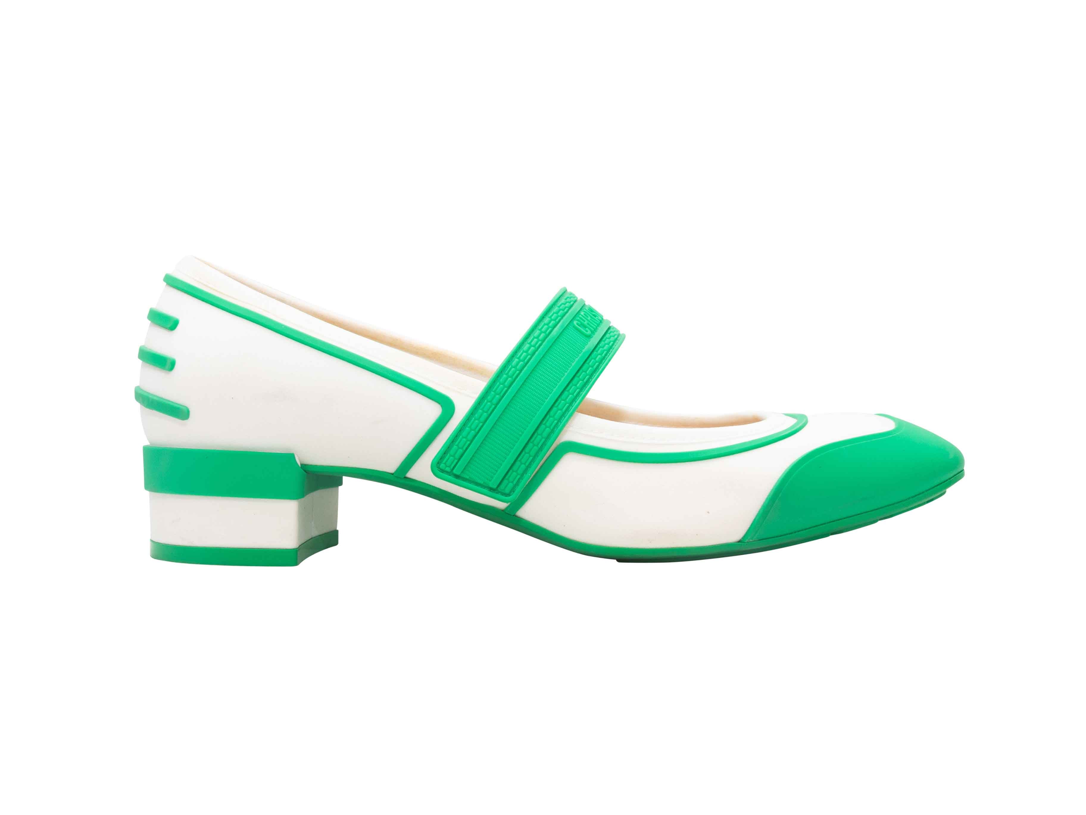 White & Green Christian Dior Rubber Mary Jane Pumps Size 37.5