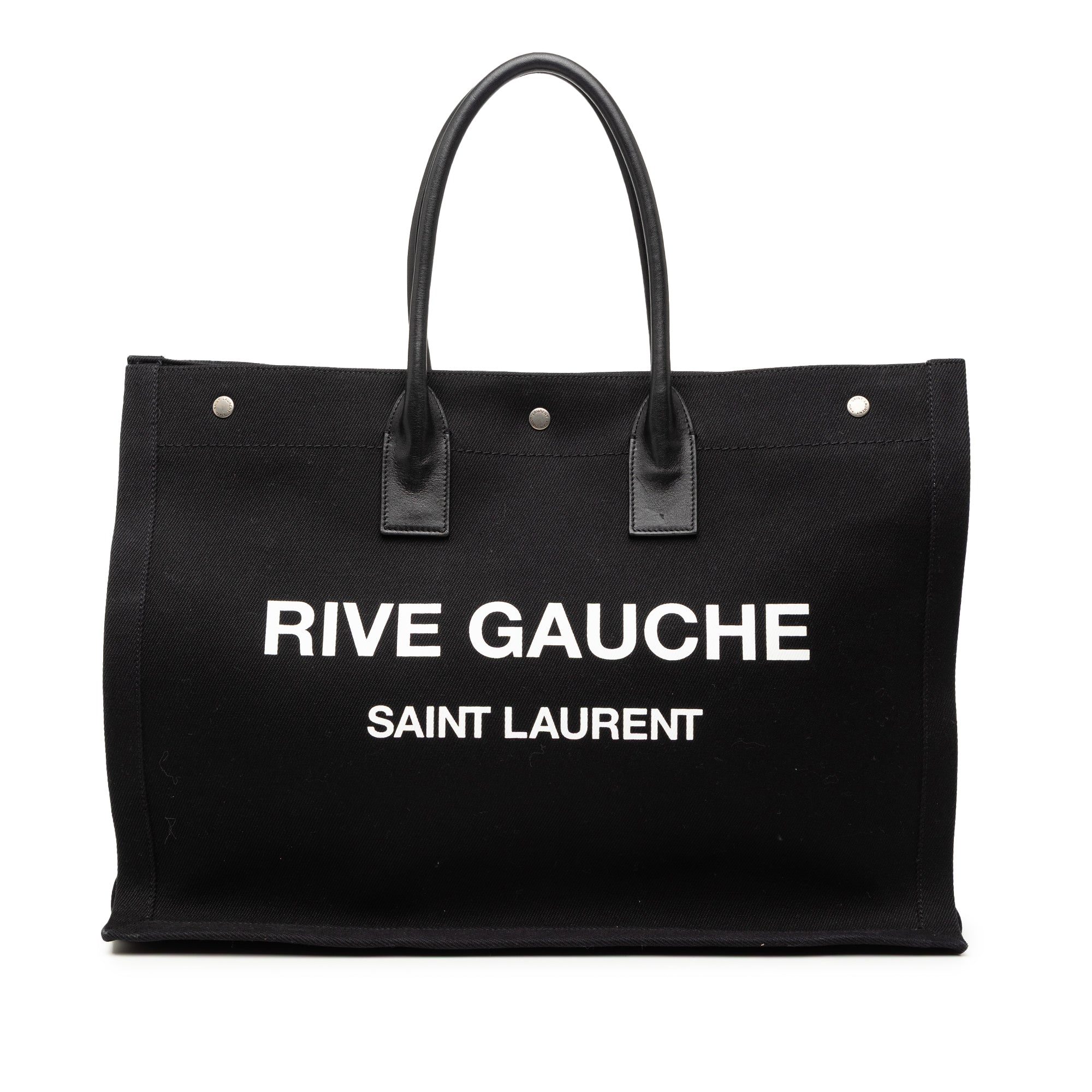 Please note this is a pre-owned item that may display signs of wear consistent with the condition listed above and shown in photos. Designer Revival guarantees this is an authentic Black Saint Laurent Canvas Rive Gauche Tote or 100% of your money back. Learn more about our authentication process.