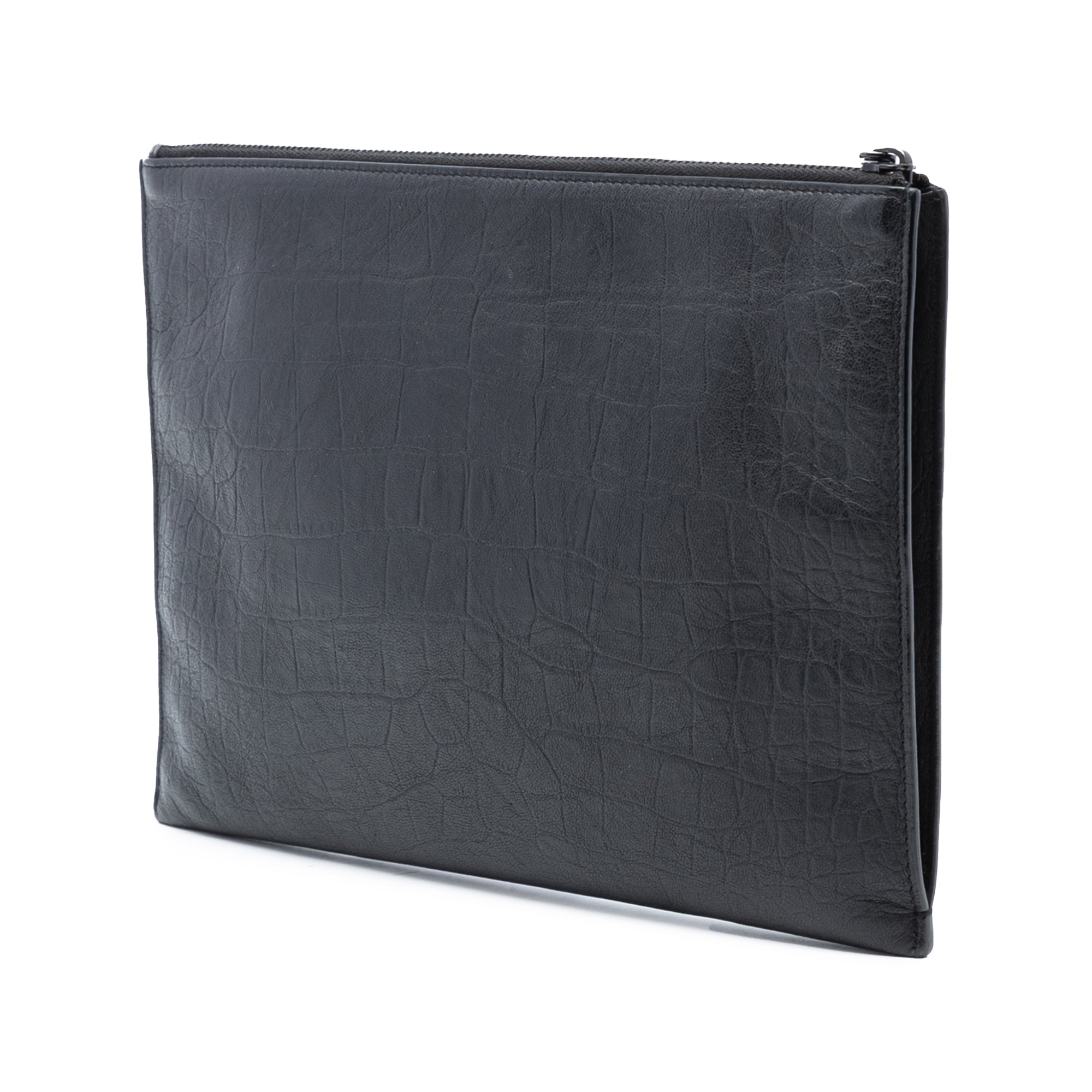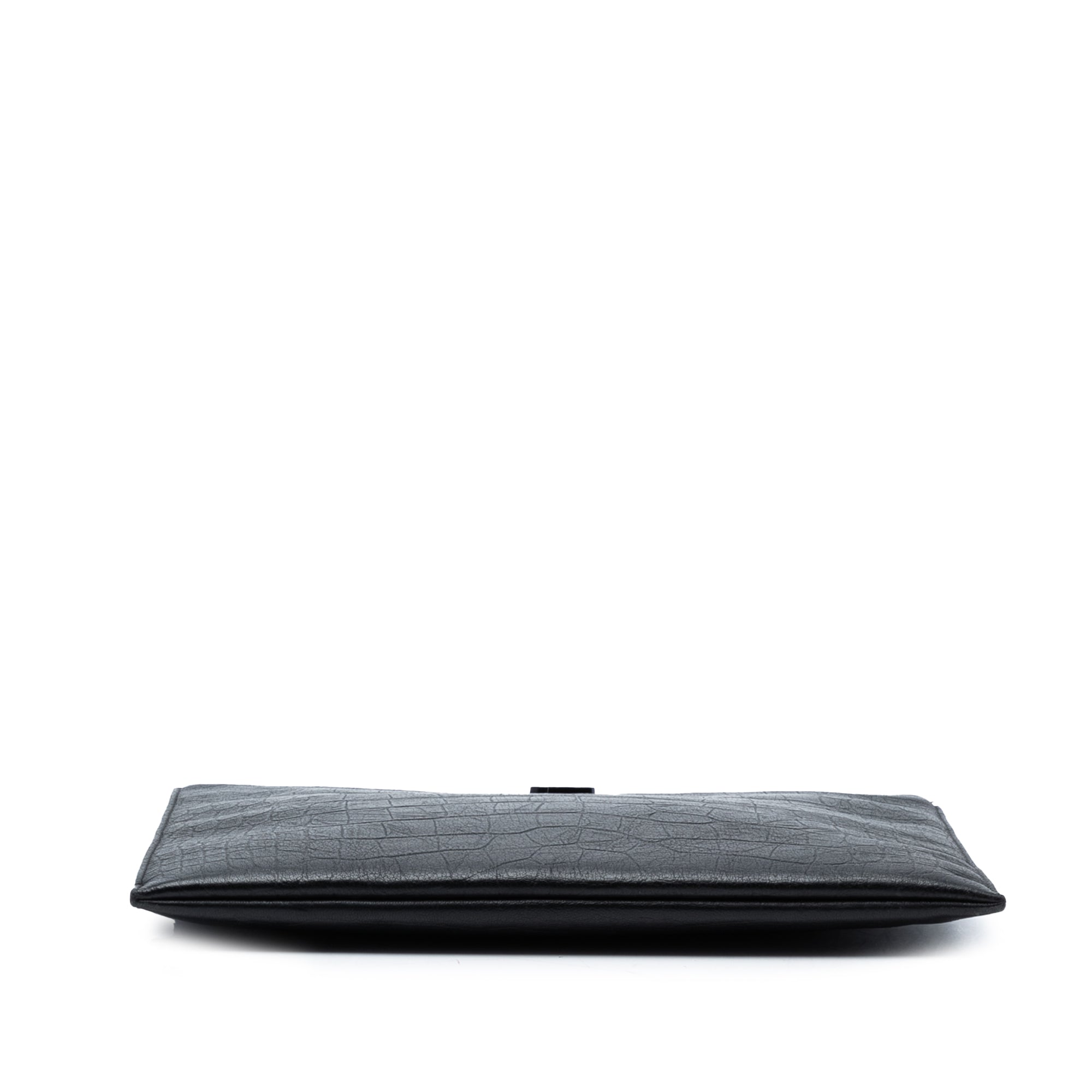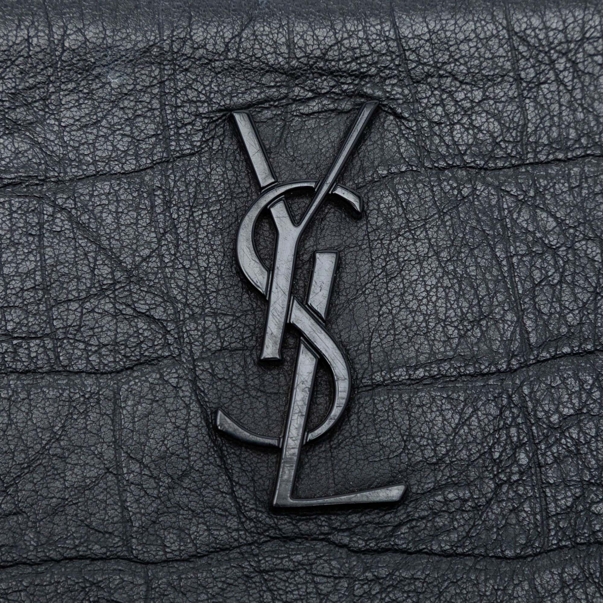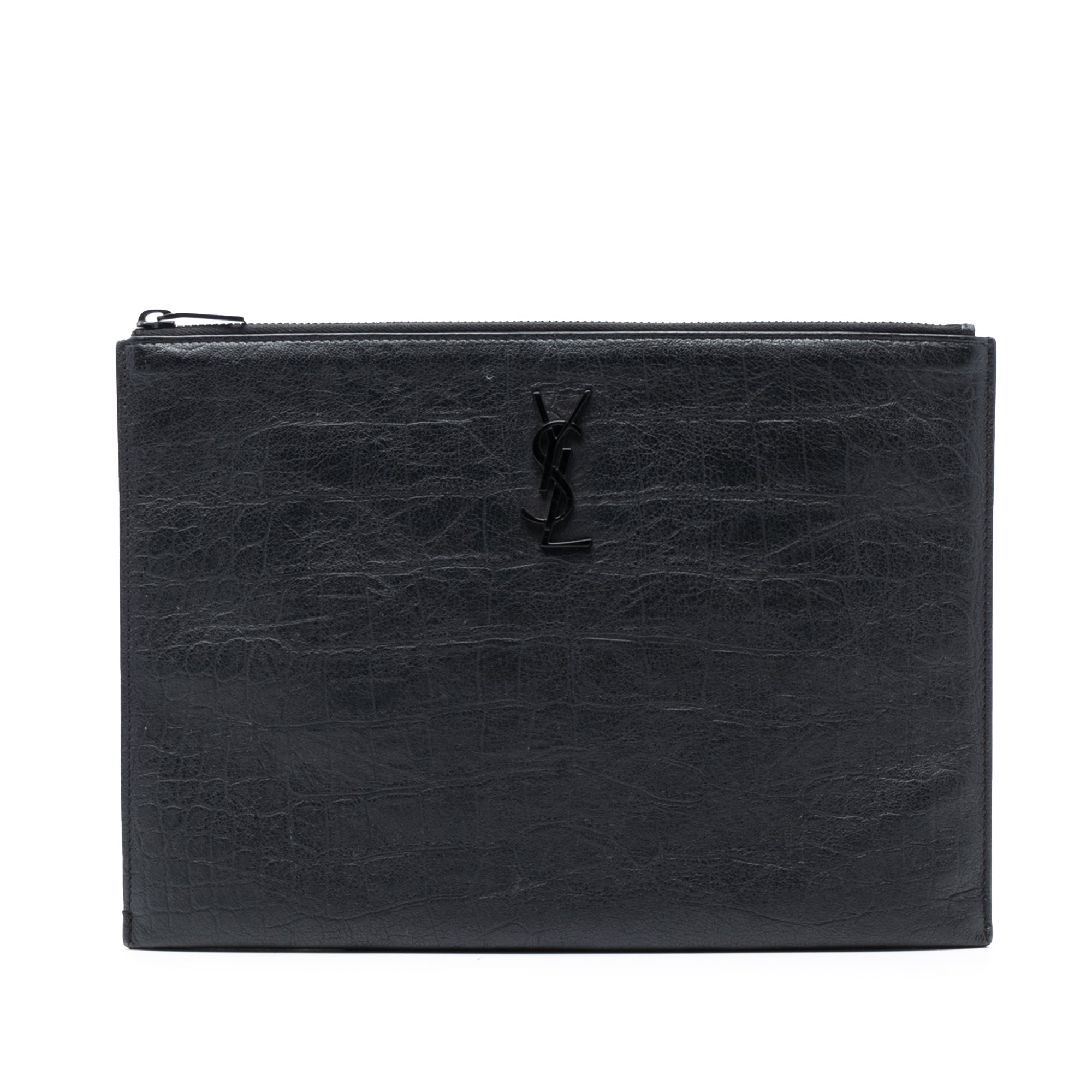 Black Saint Laurent Croc Embossed Leather Monogram Clutch
