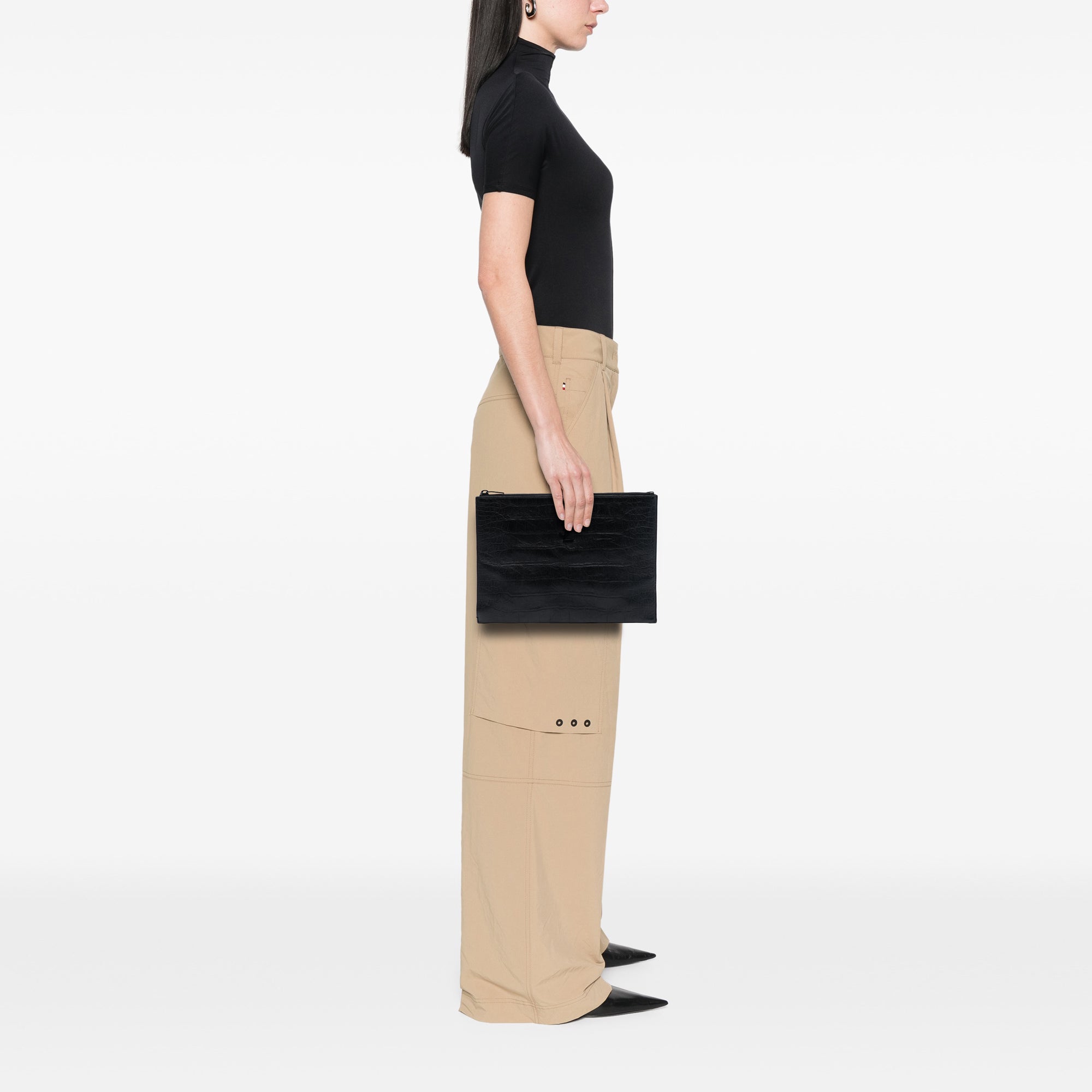 Black Saint Laurent Croc Embossed Leather Monogram Document Holder Clutch Bag