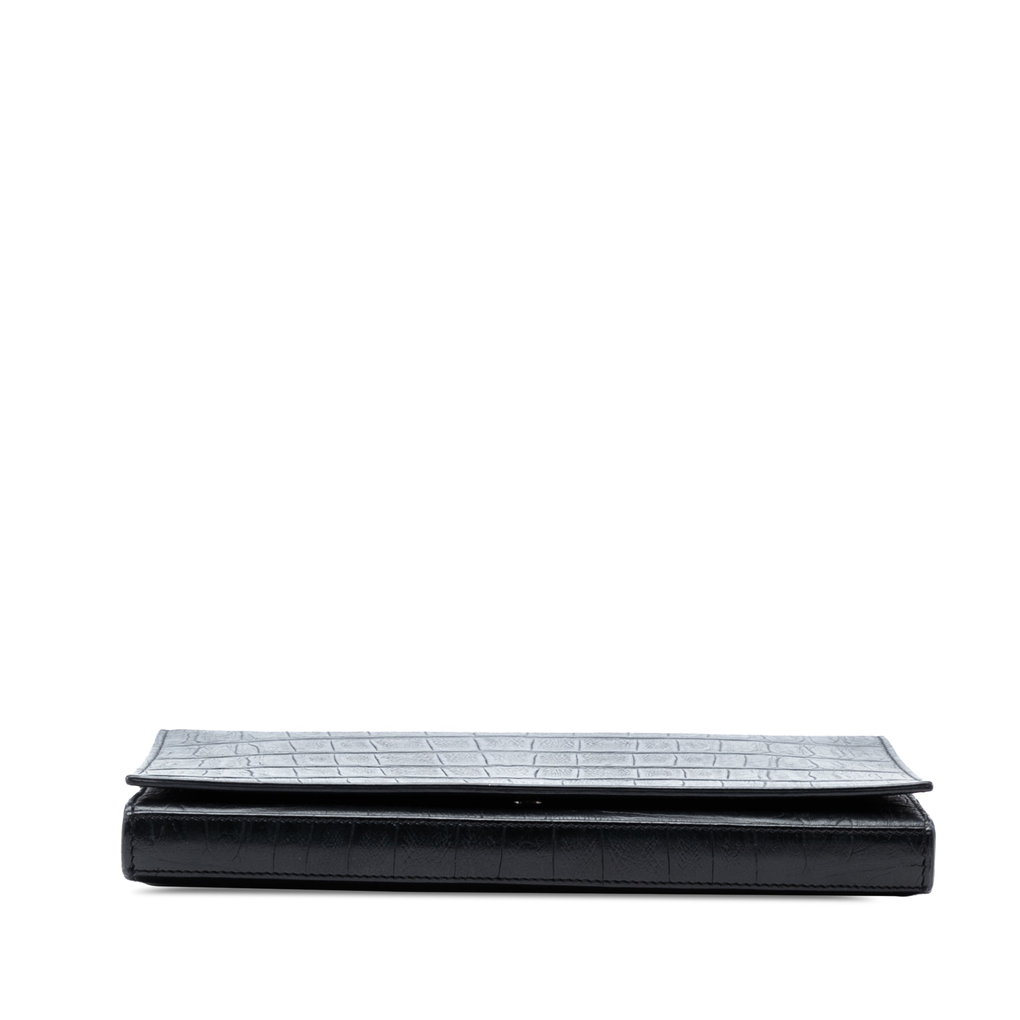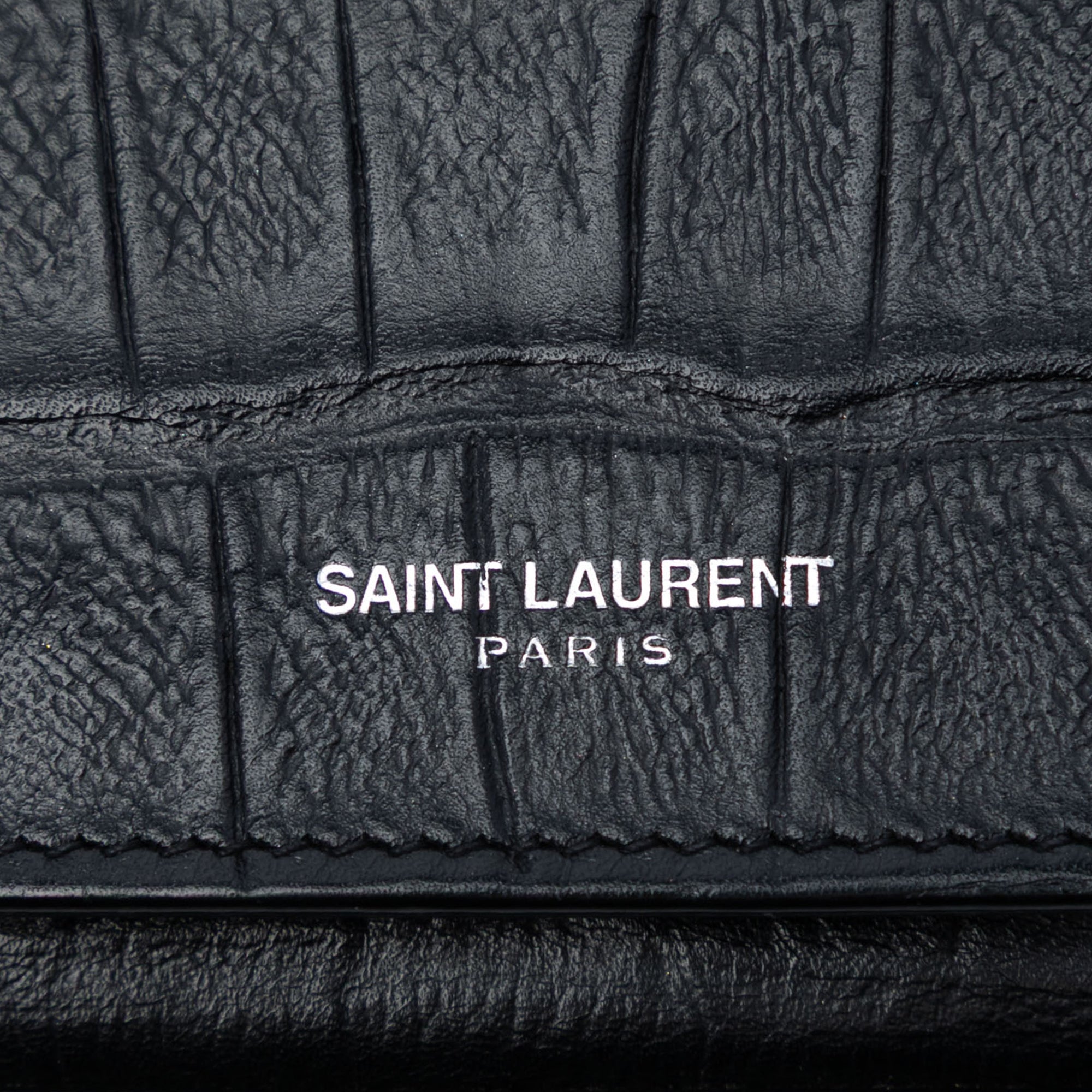 Black Saint Laurent Croc Embossed Leather Wallet On Chain Crossbody Bag