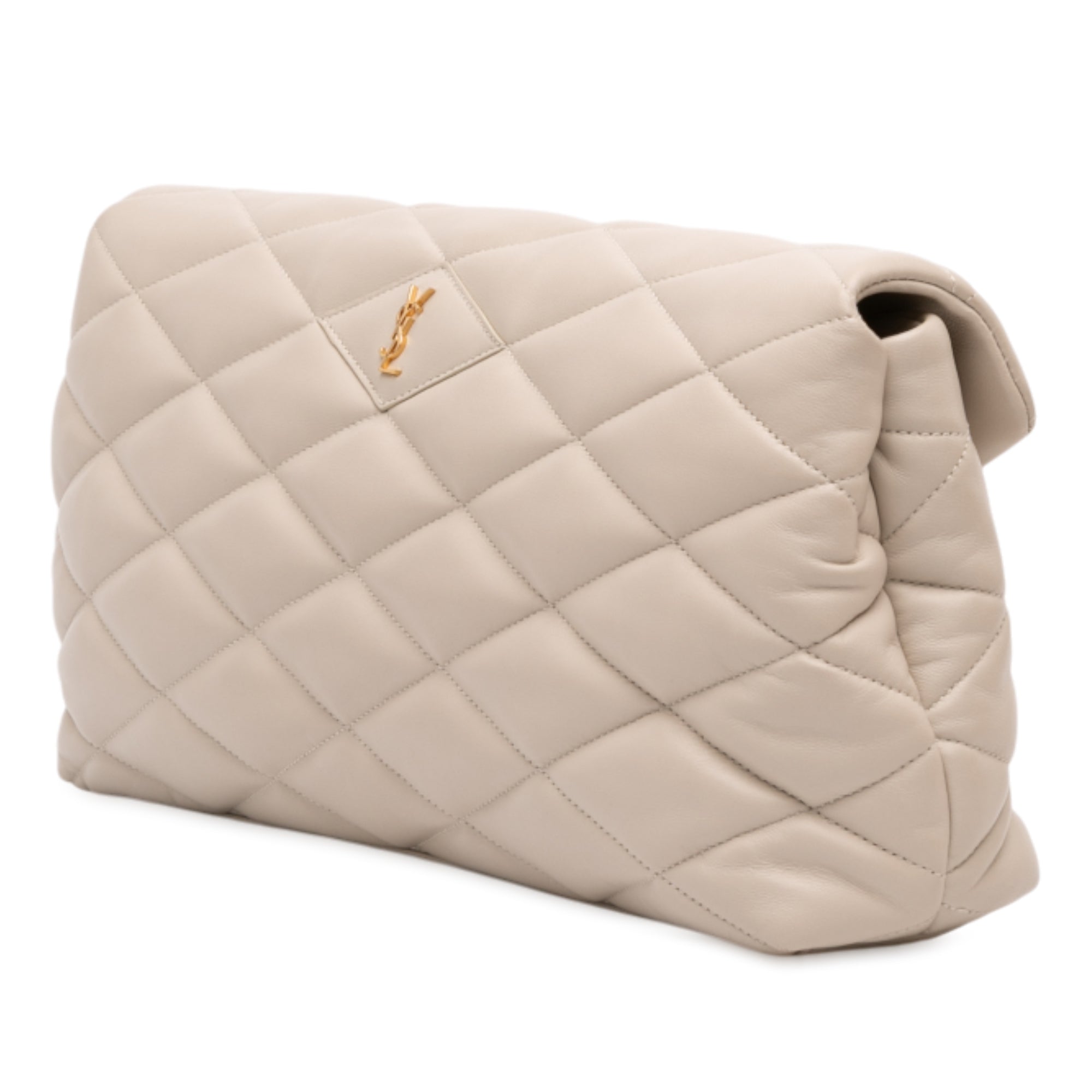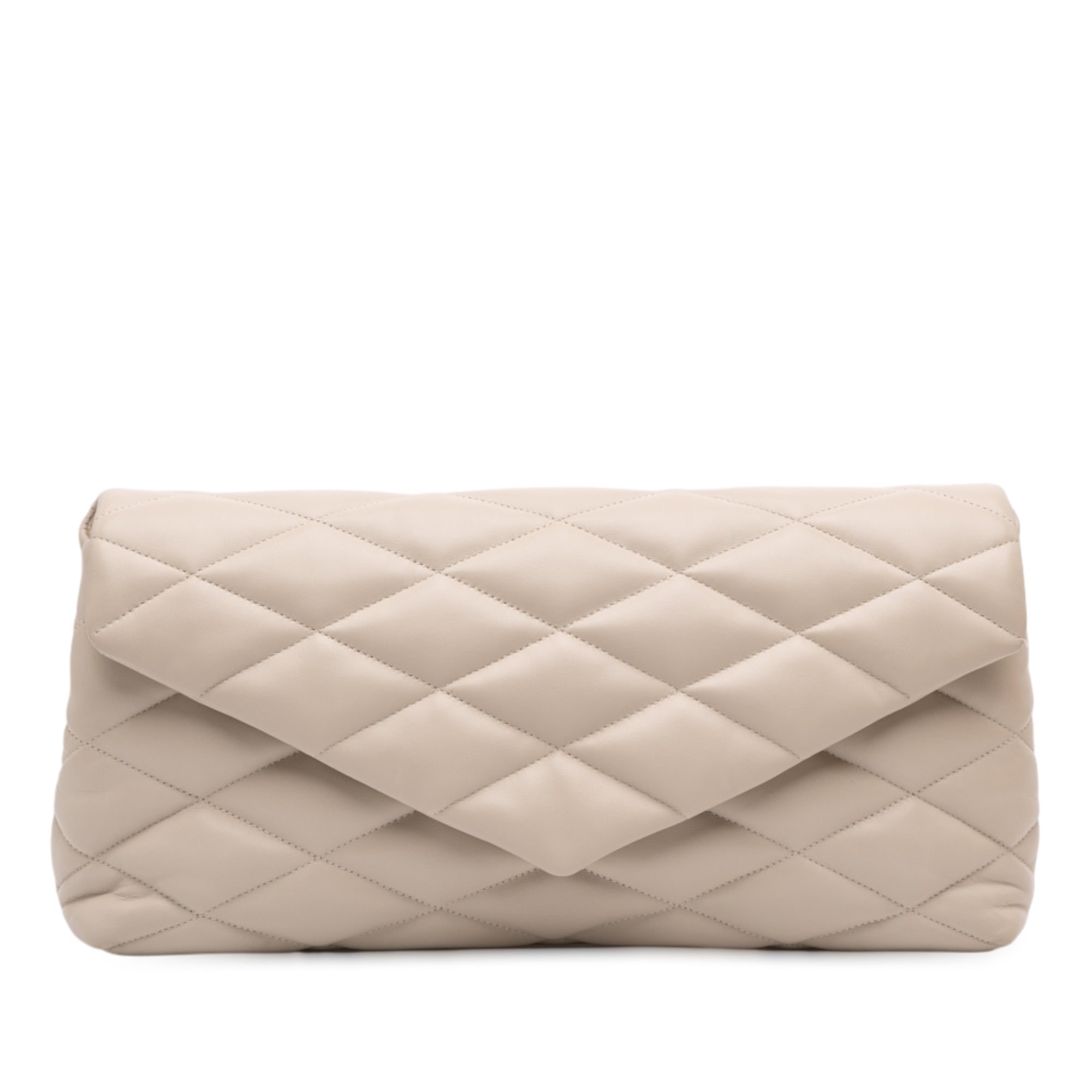 Beige Saint Laurent Large Quilted Lambskin Sade Clutch