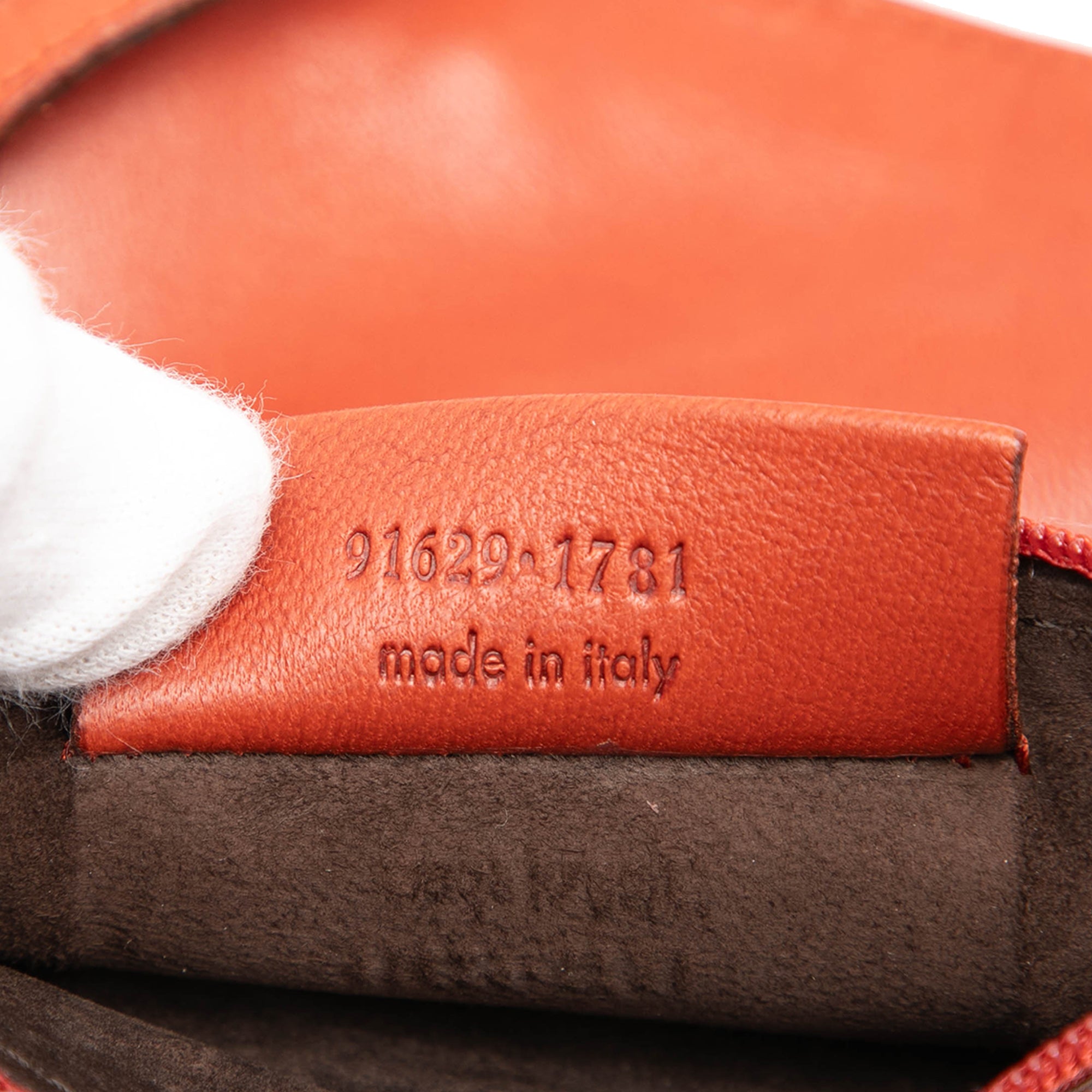 Product Details: Orange Saint Laurent Suede Braided Hobo. This hobo bag features a suede leather body, multiple knotted straps, an open top, and an interior pouch. 13" L x 11.8" W x 1.6" D. Serial number 91629 1781.