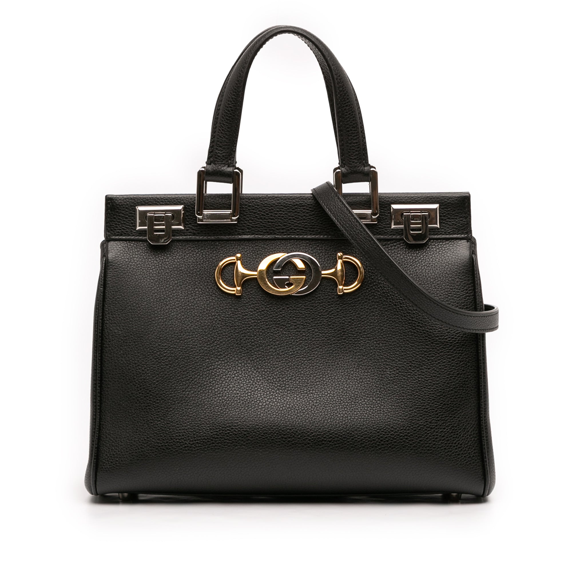 Black Gucci Small Grained Calfskin Zumi Top Handle Bag Satchel