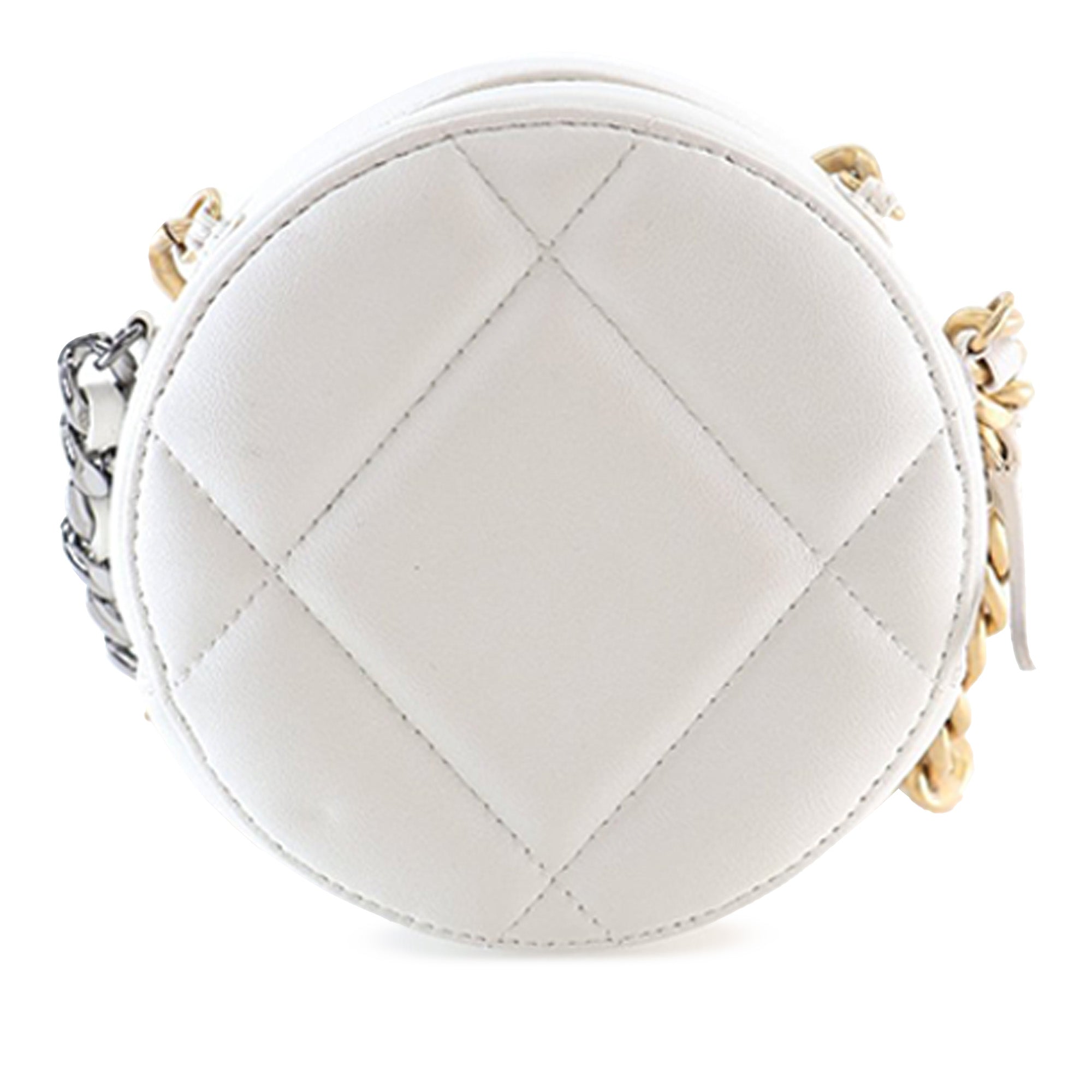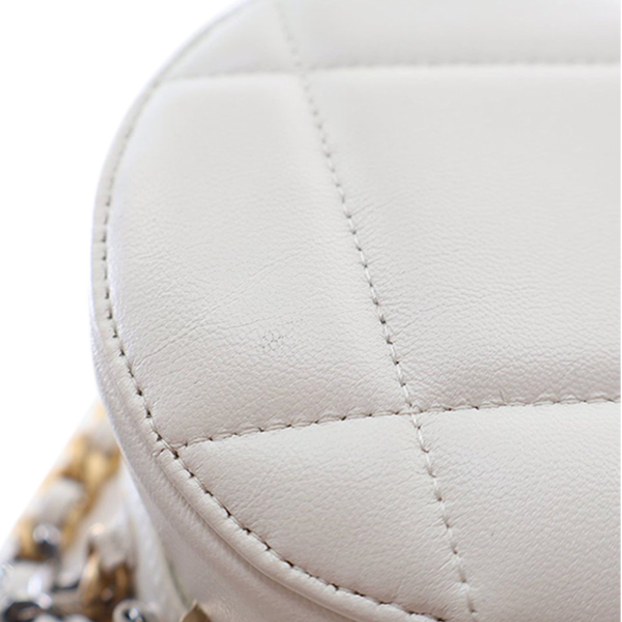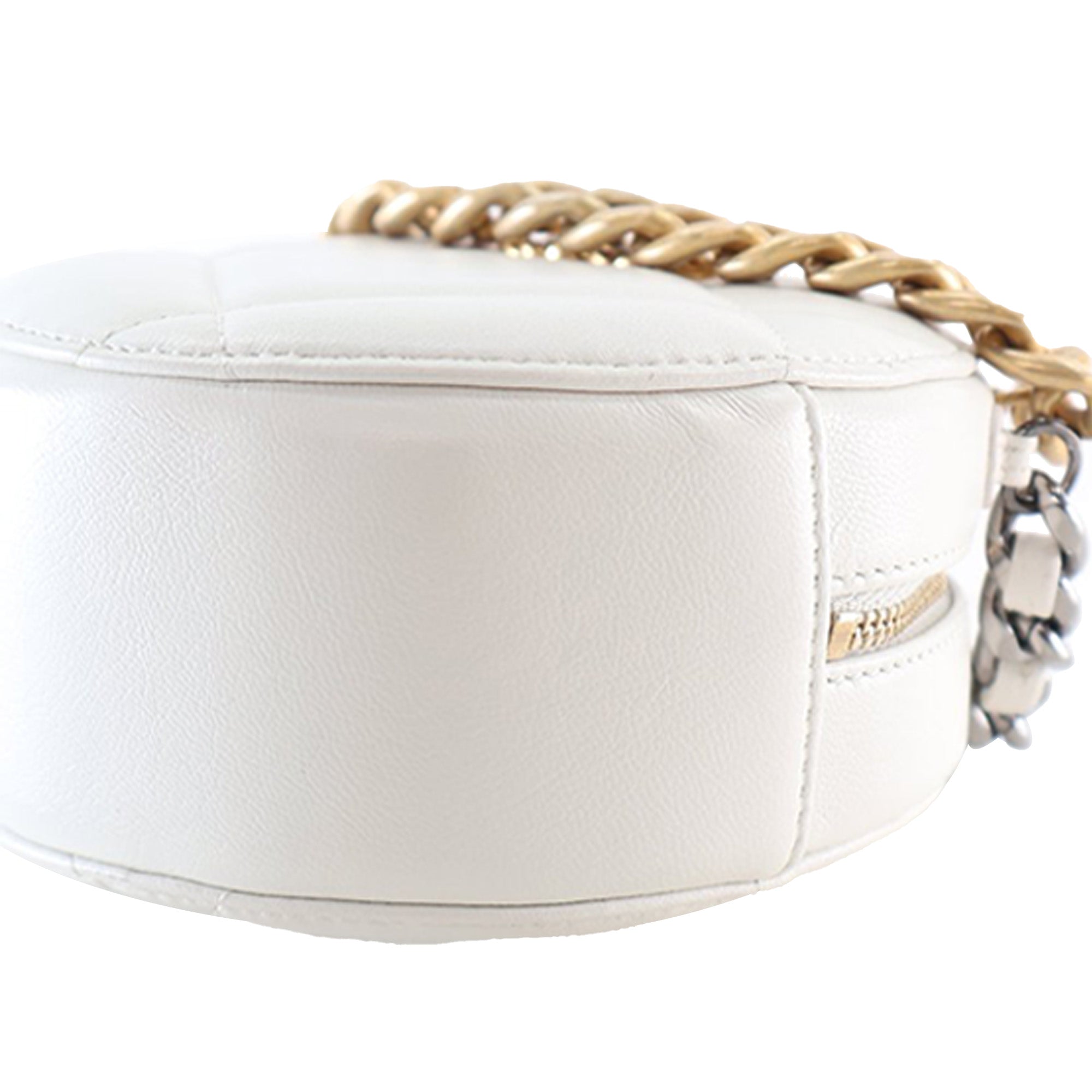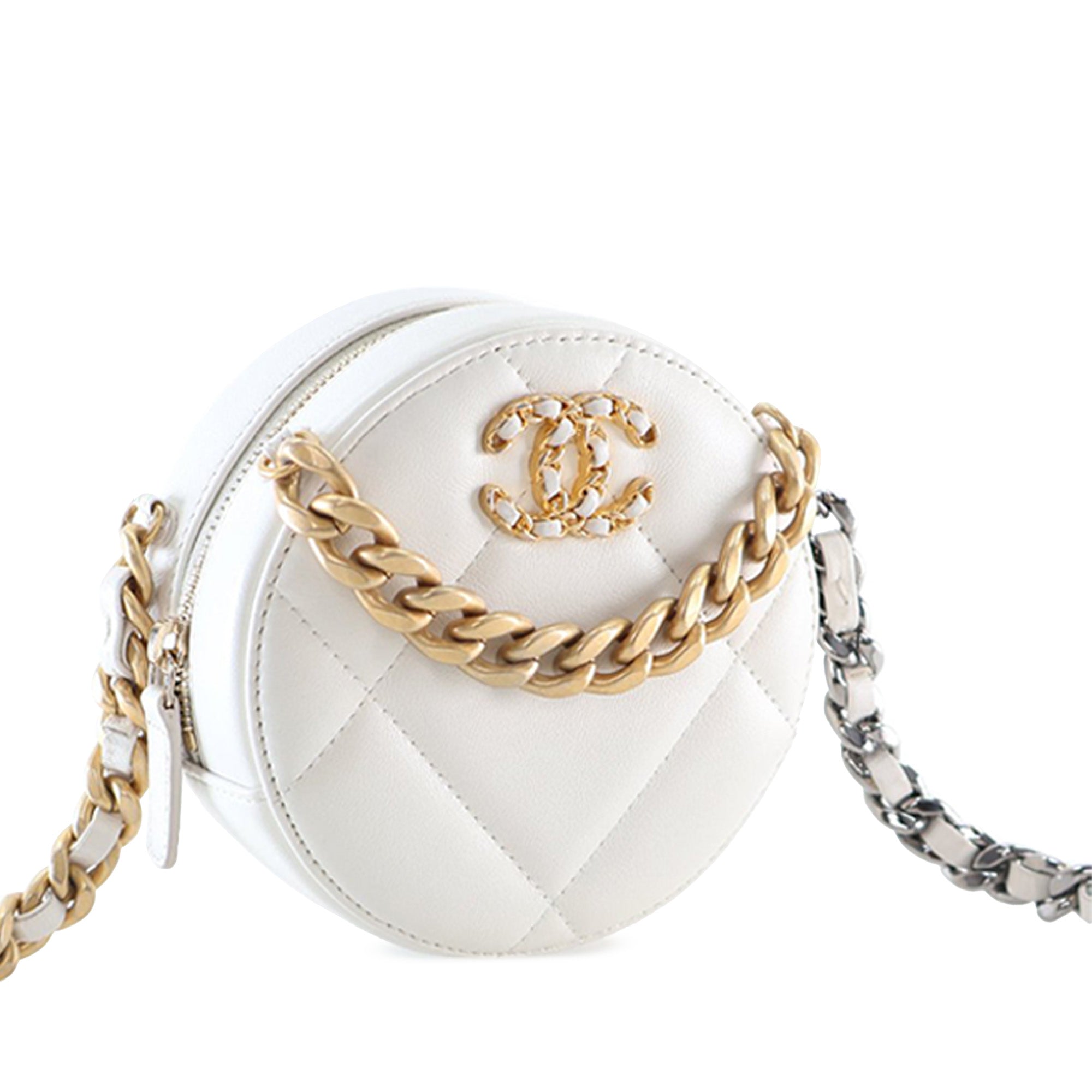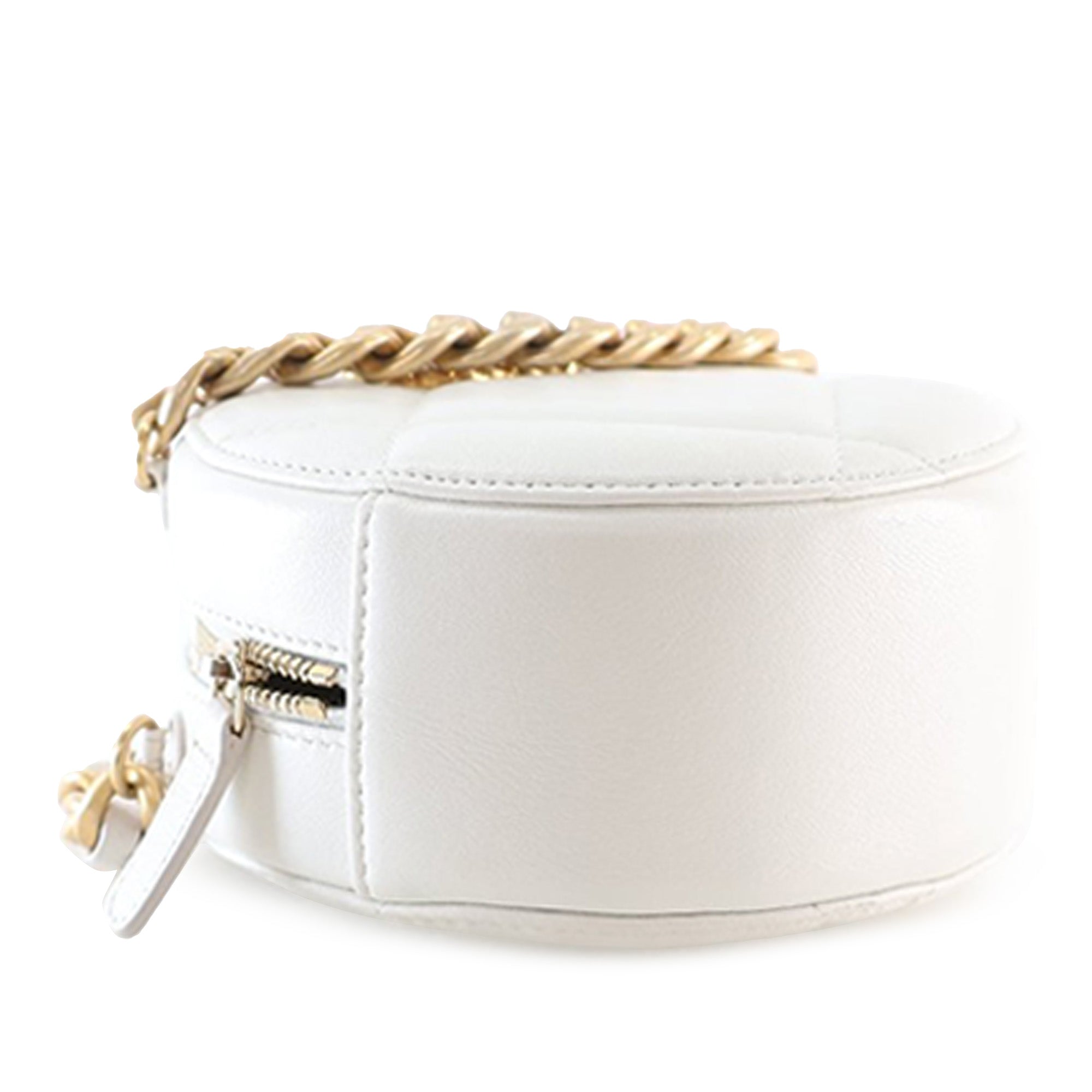 White Chanel Lambskin 19 Round Clutch with Chain Satchel
