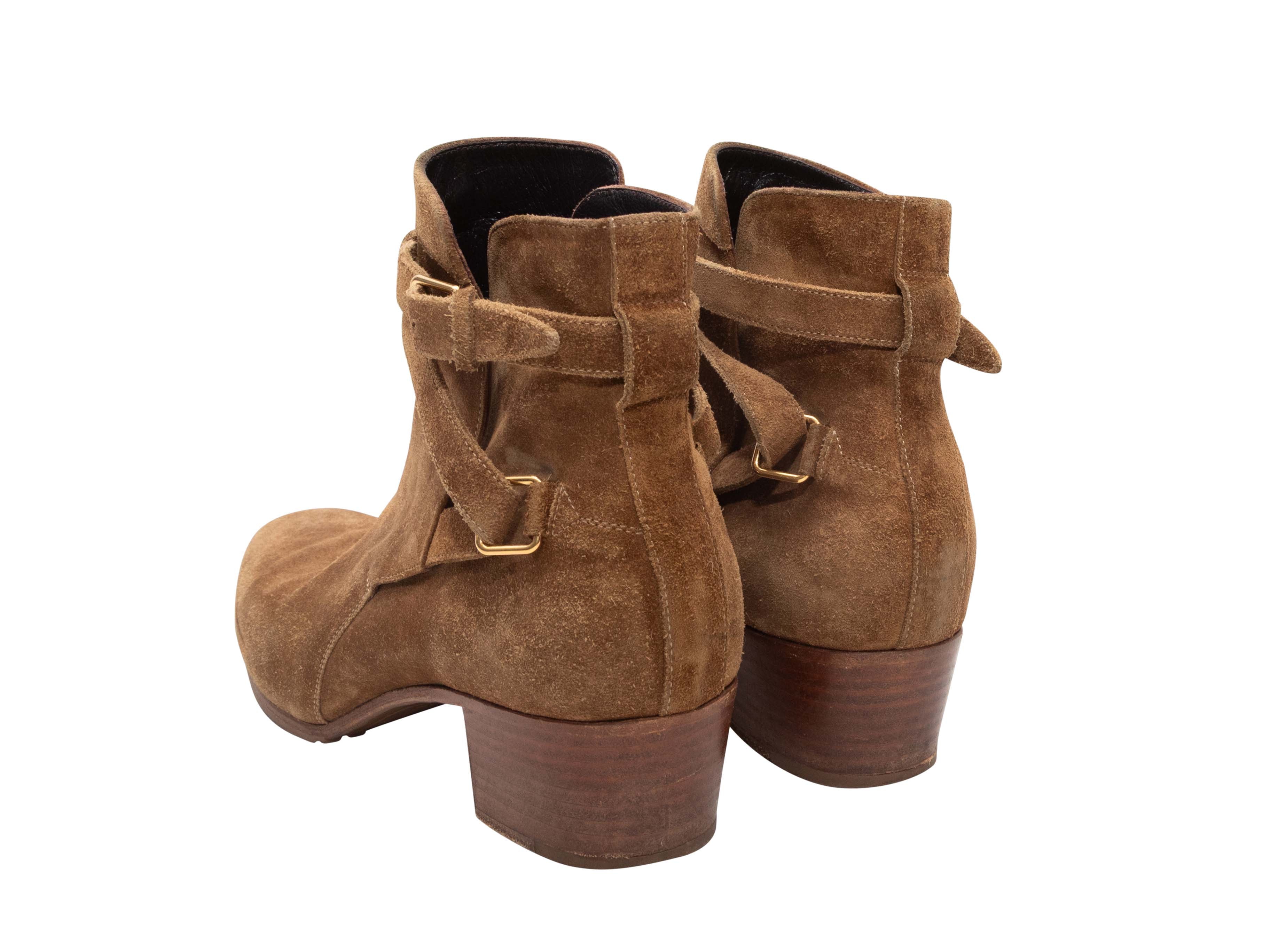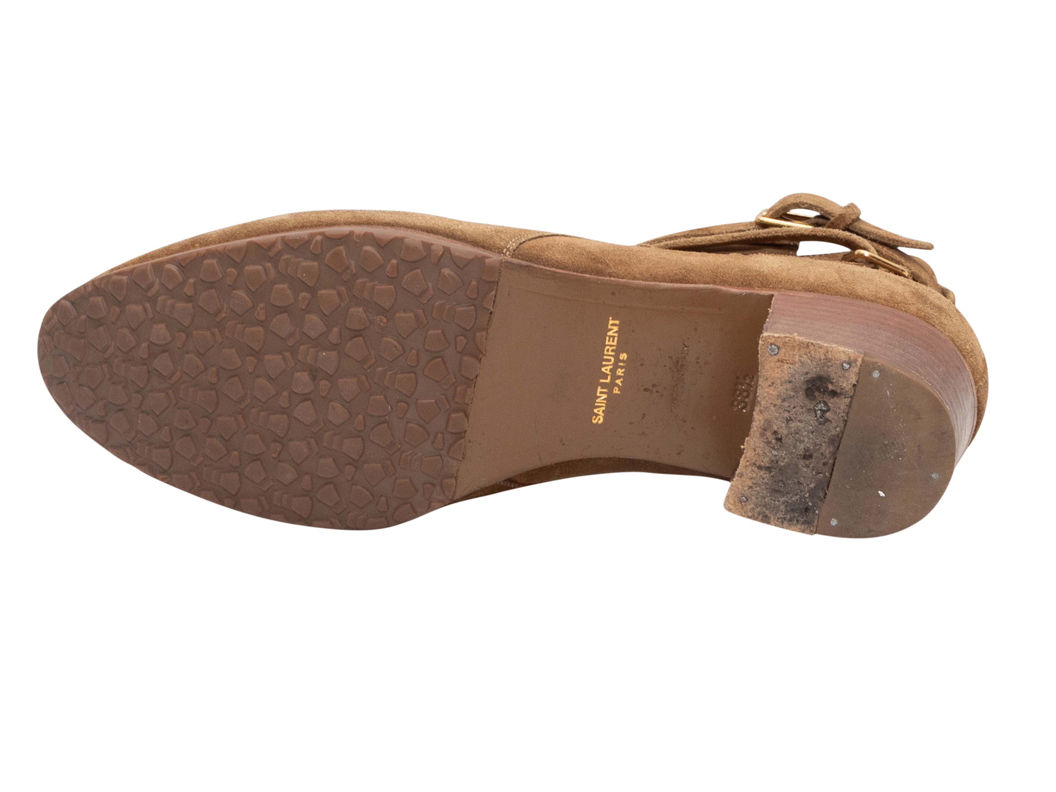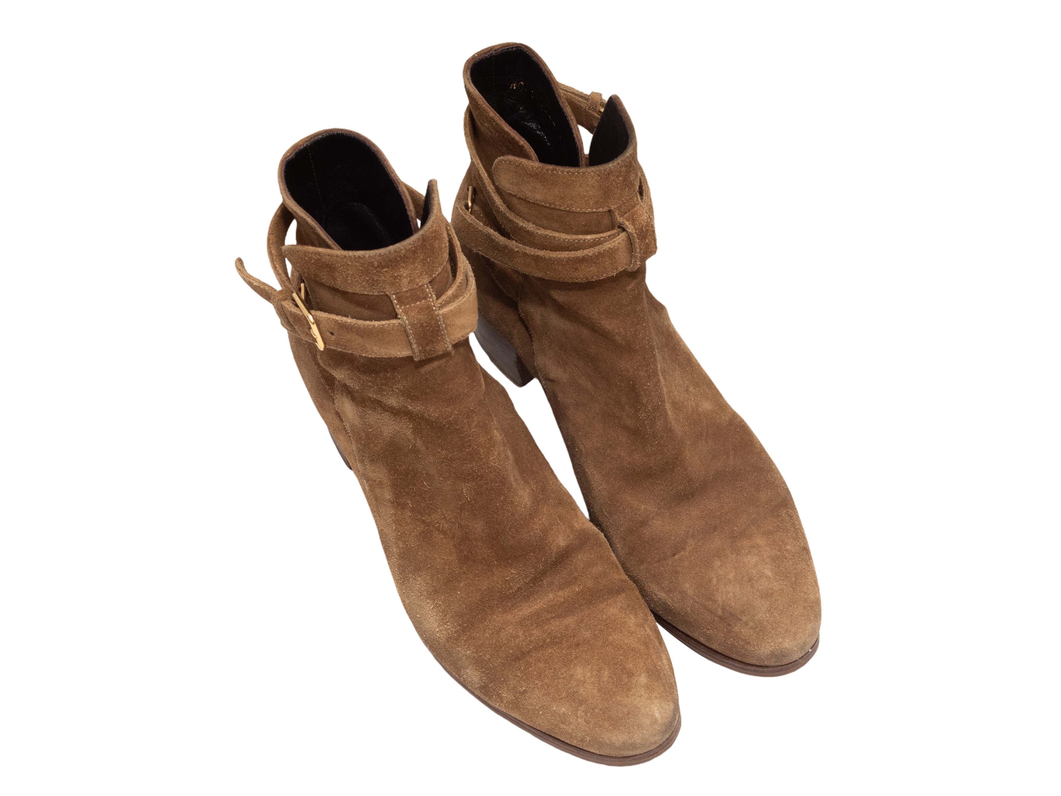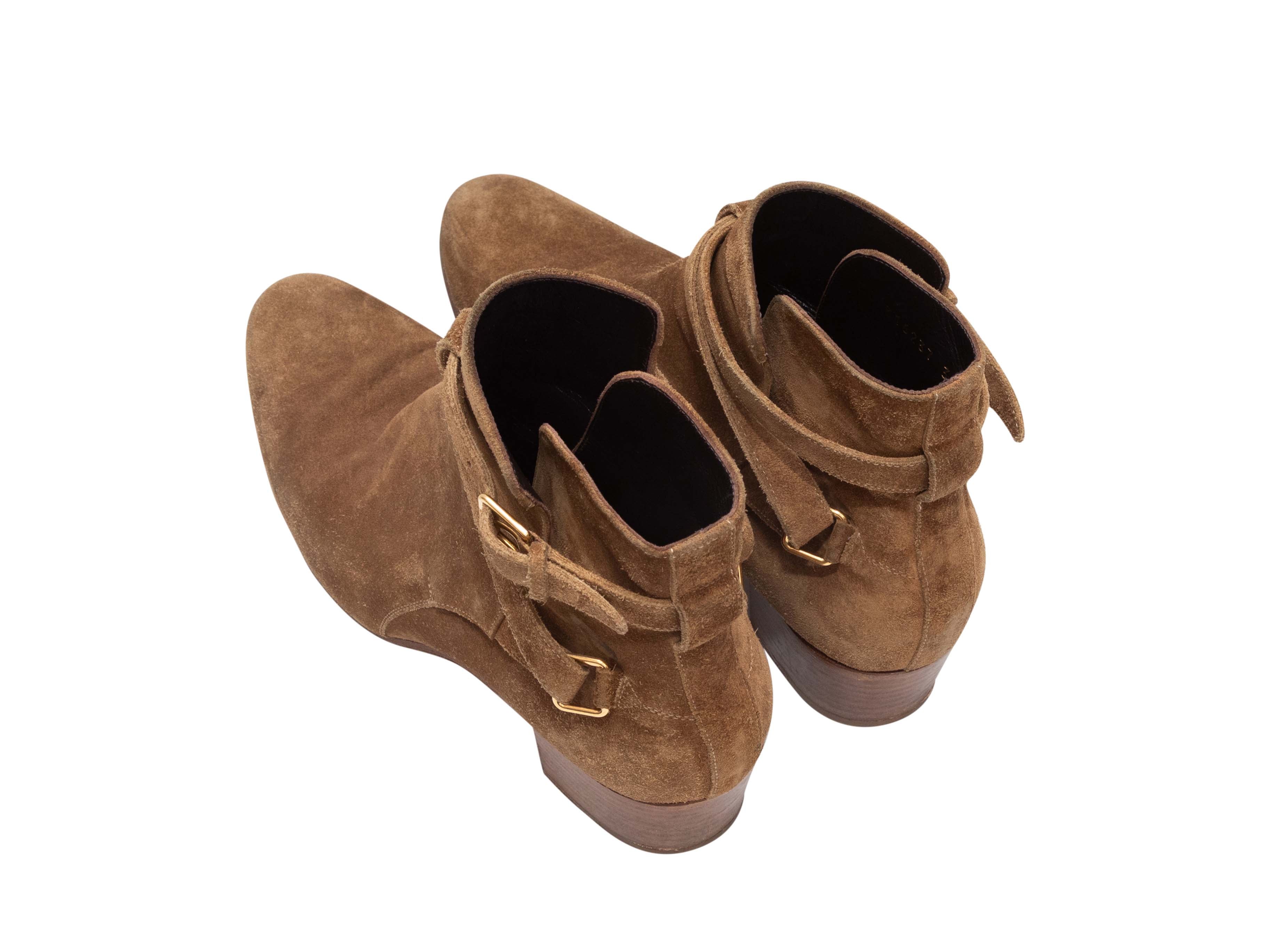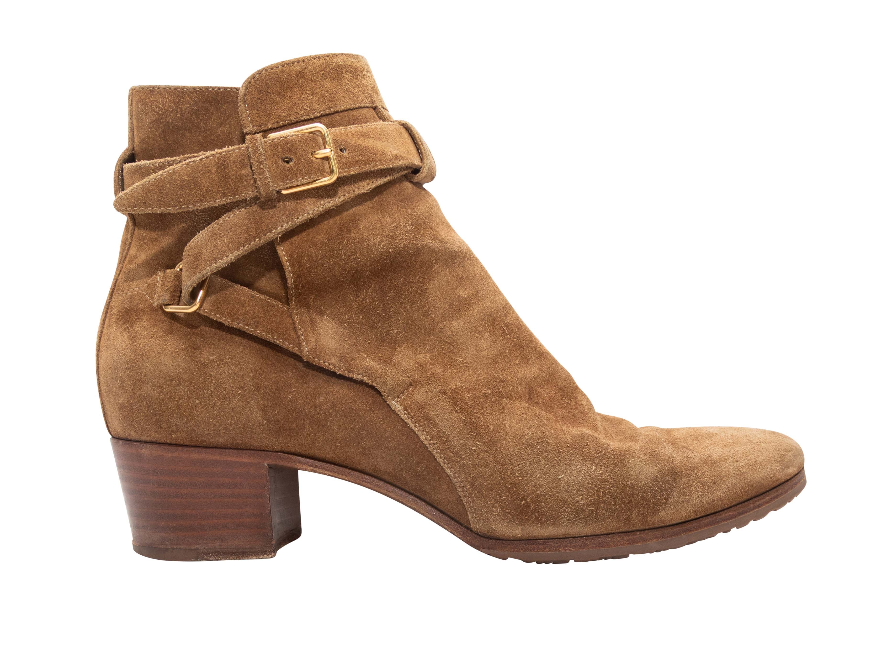Tan Saint Laurent Suede Buckle Strap Ankle Boots Size 38.5