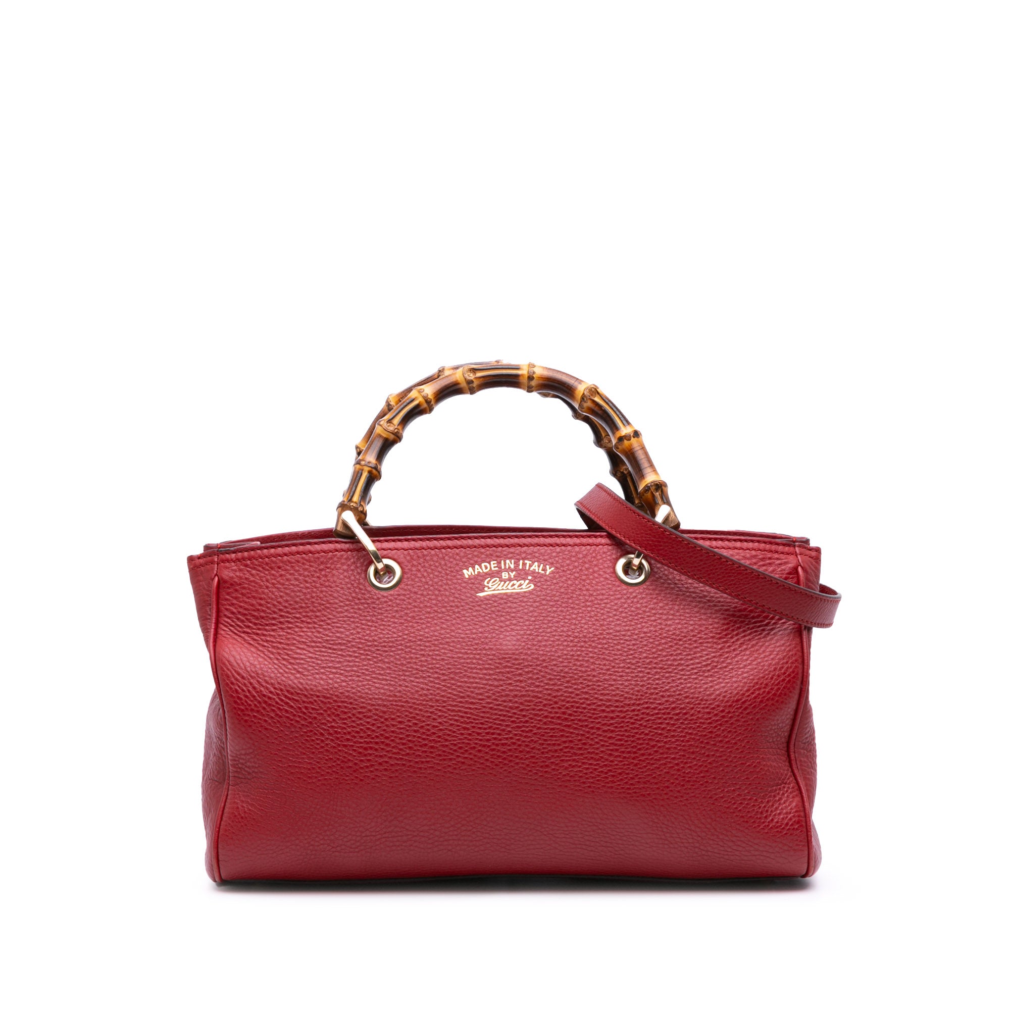 Please note this is a pre-owned item that may display signs of wear consistent with the condition listed above and shown in photos. Designer Revival guarantees this is an authentic Red Gucci Medium Calfskin Bamboo Shopper Satchel or 100% of your money back. Learn more about our authentication process.