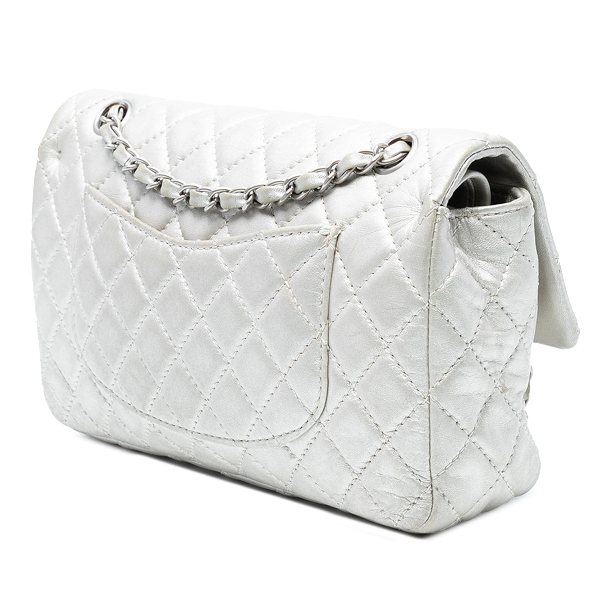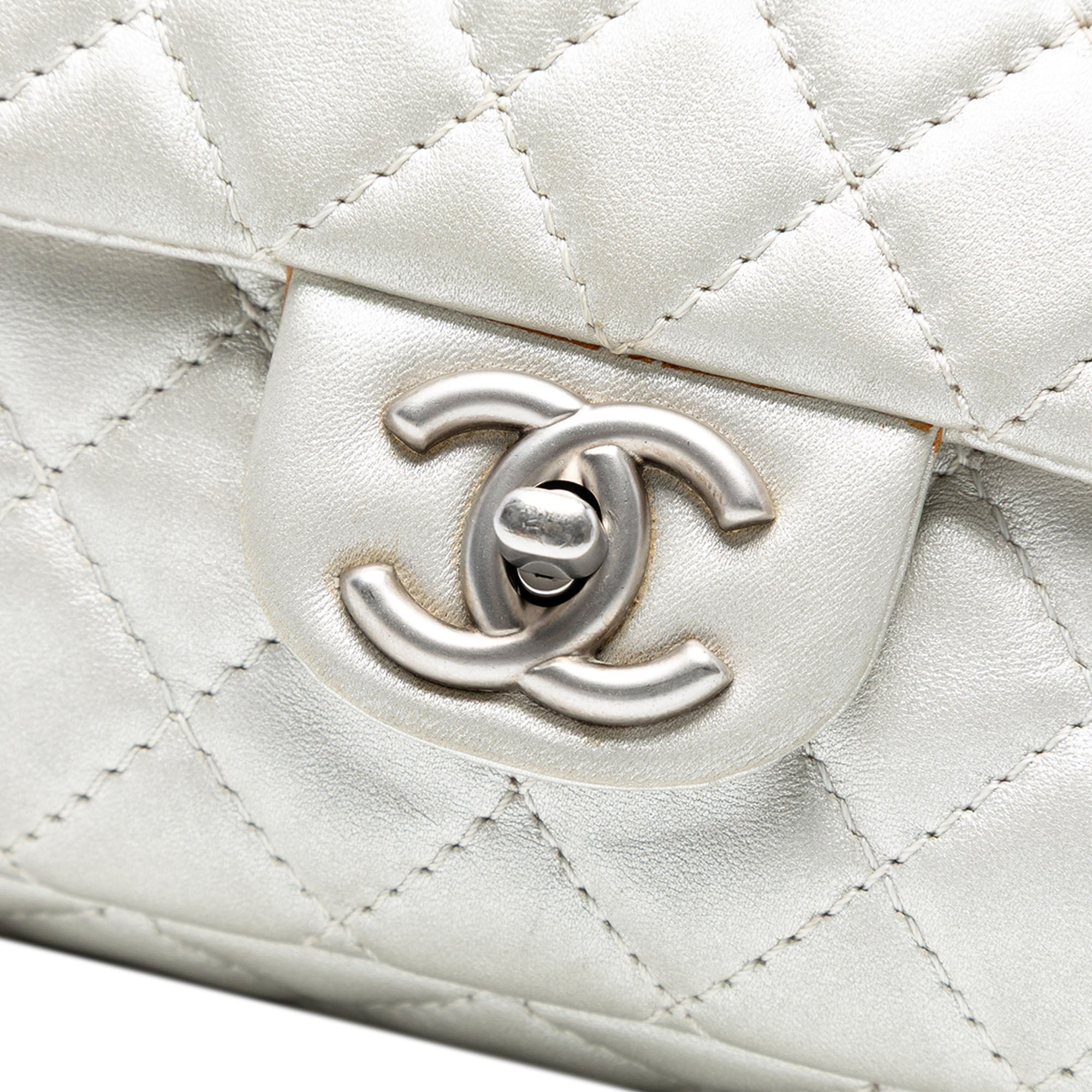 Please note this is a pre-owned item that may display signs of wear consistent with the condition listed above and shown in photos. Designer Revival guarantees this is an authentic Silver Chanel Medium Classic Lambskin Double Flap Shoulder Bag or 100% of your money back. Learn more about our authentication process.