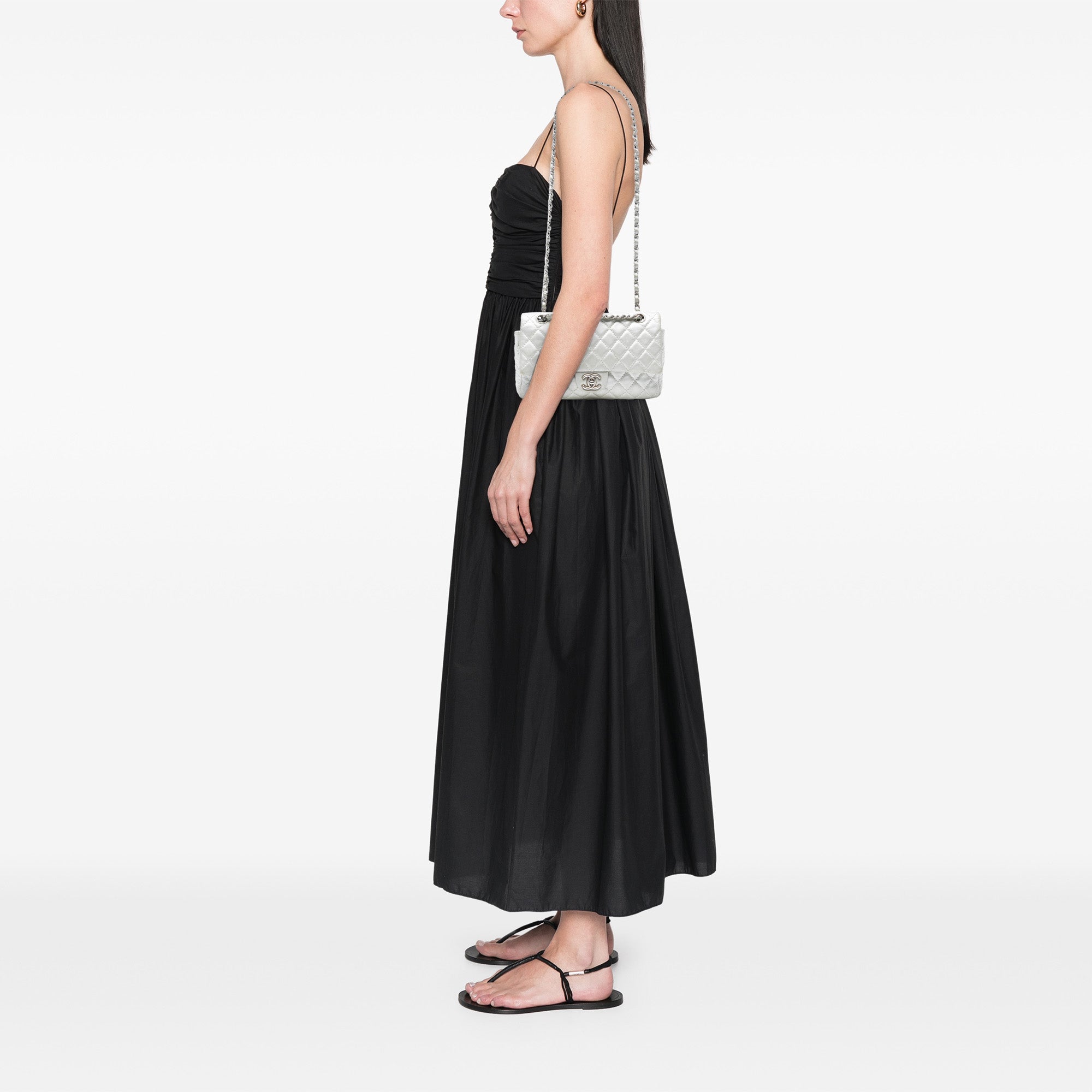 Silver Chanel Medium Classic Lambskin Double Flap Shoulder Bag