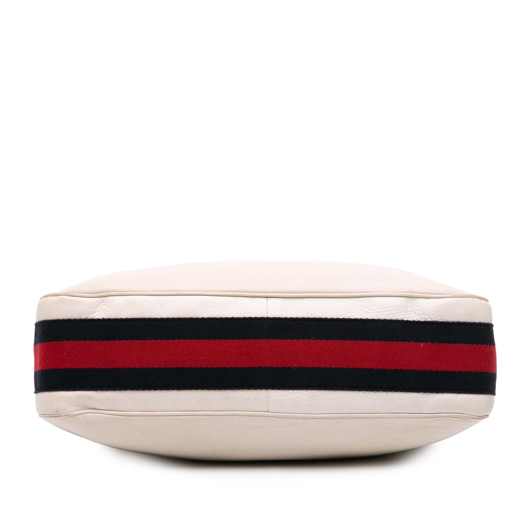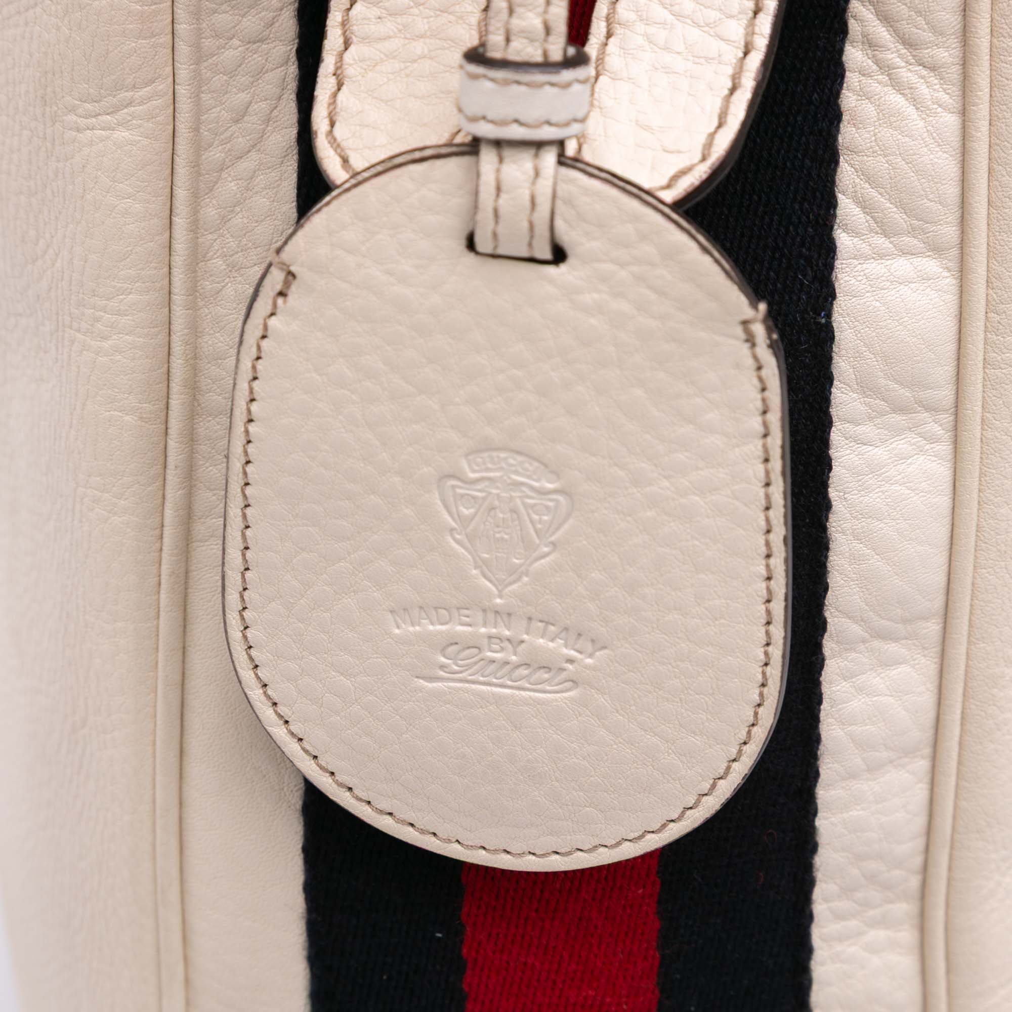 White Gucci Medium Pebbled Calfskin Web Heritage Shoulder Bag