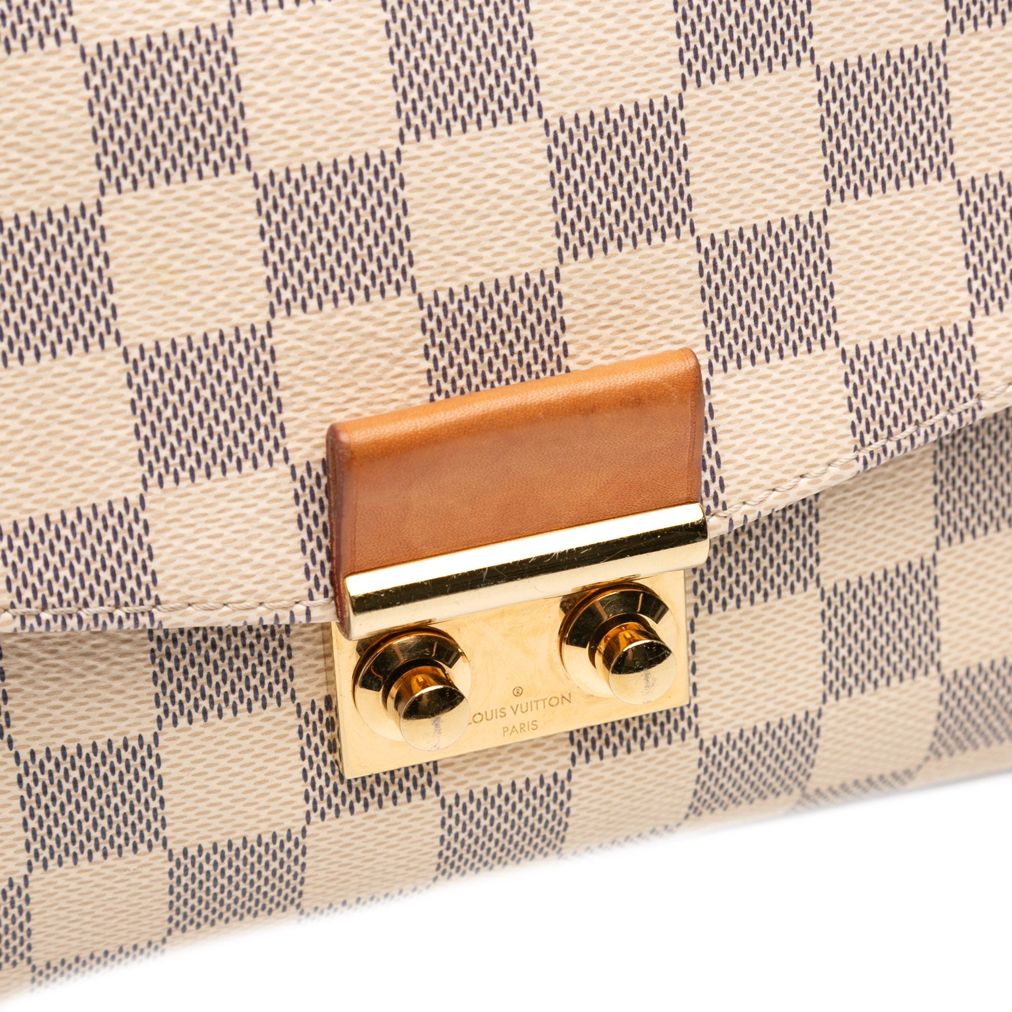 Please note this is a pre-owned item that may display signs of wear consistent with the condition listed above and shown in photos. Designer Revival guarantees this is an authentic White Louis Vuitton Damier Azur Croisette Satchel or 100% of your money back. Learn more about our authentication process.