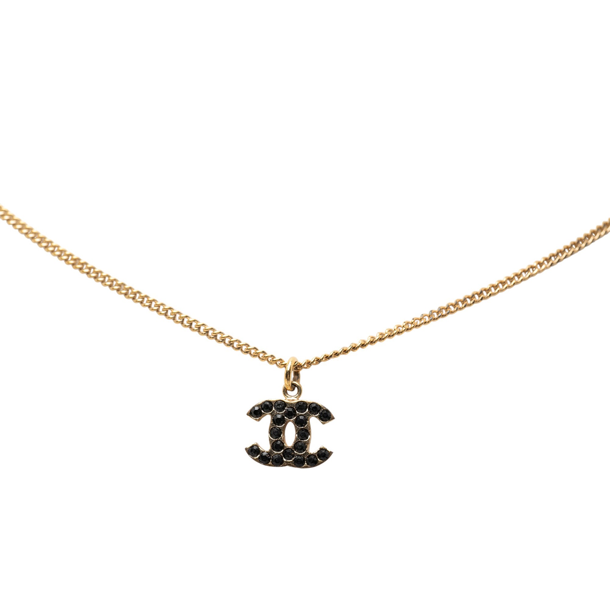 Gold Chanel Gold Plated CC Crystals Pendant Necklace
