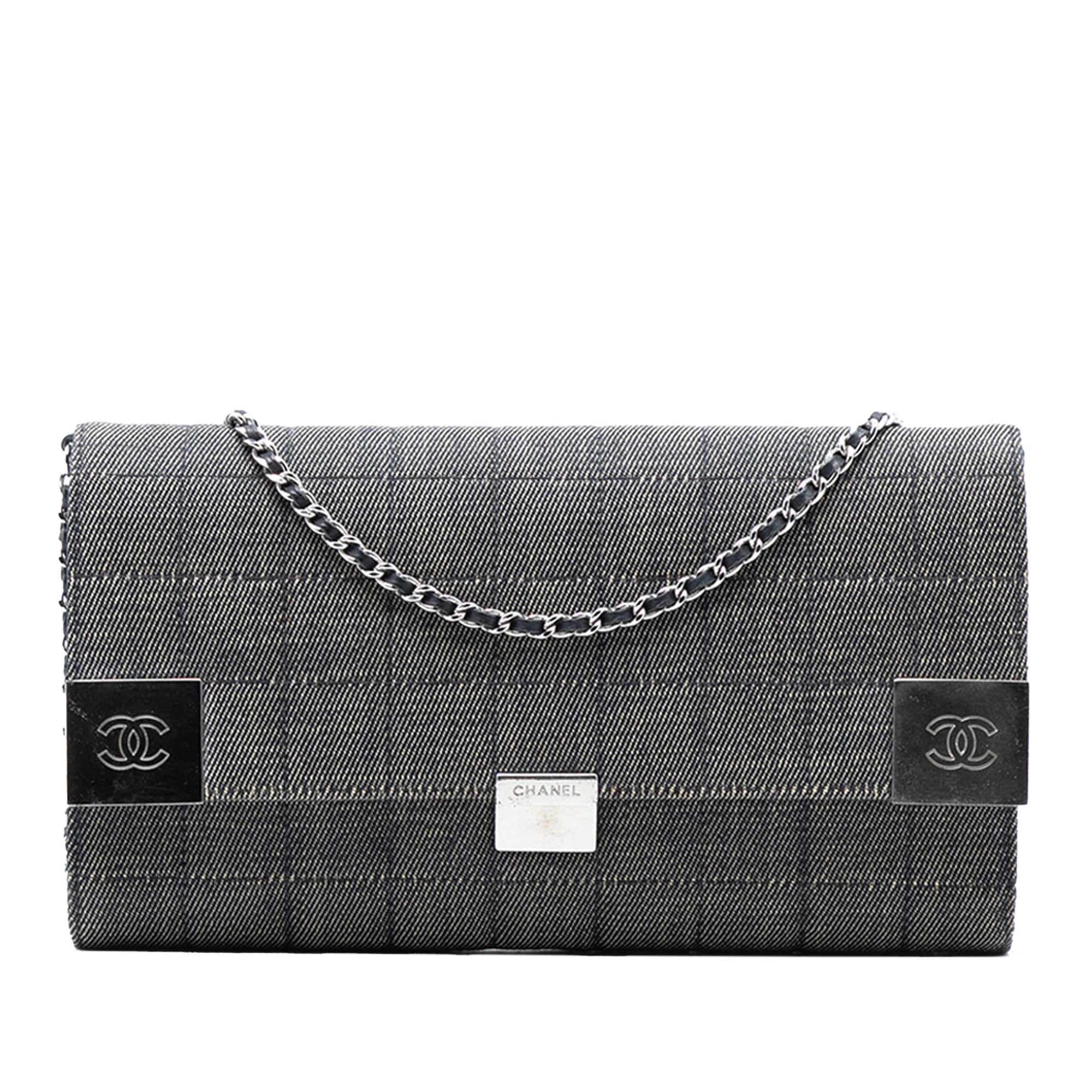 Gray Chanel CC Choco Bar Denim Chain Flap Shoulder Bag