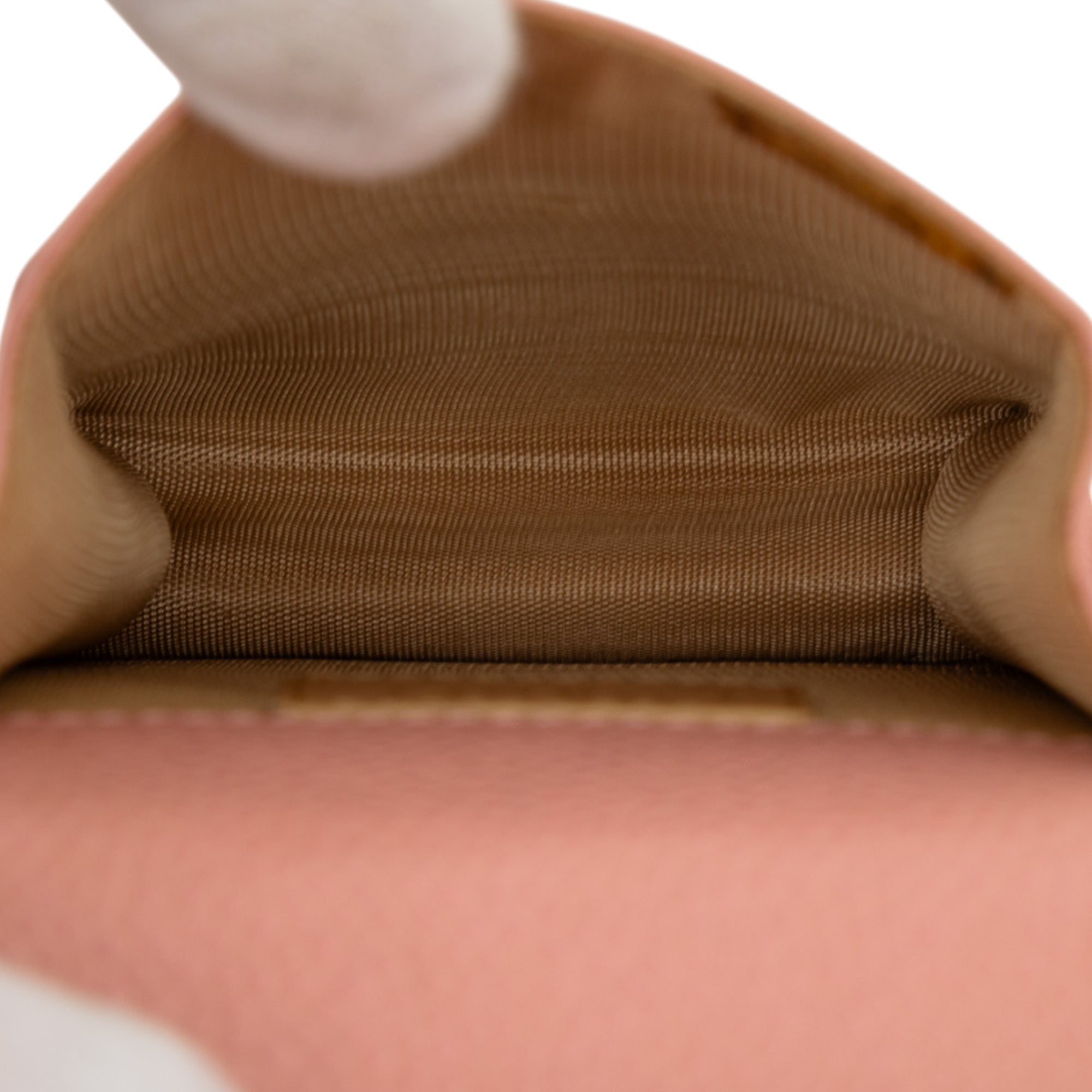 Product Details: Pink Chanel CC Caviar Cigarette Case. This cigarette case features a caviar leather body and a front flap with snap button closure. 4.5" L x 3.1" W x 0.8" D. Serial number 9813533.