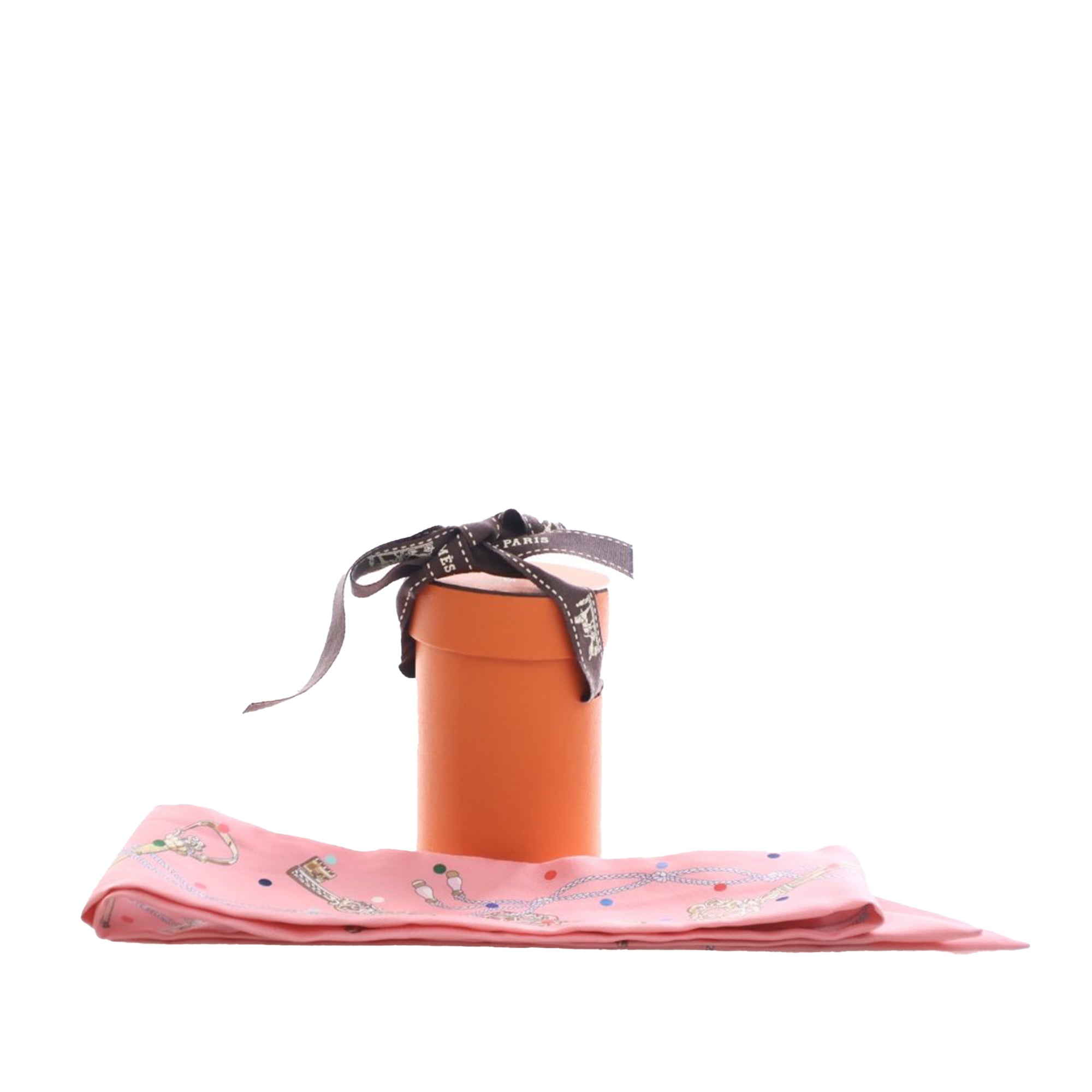 Pink Hermès Les Cles A Pois Silk Twilly Scarf